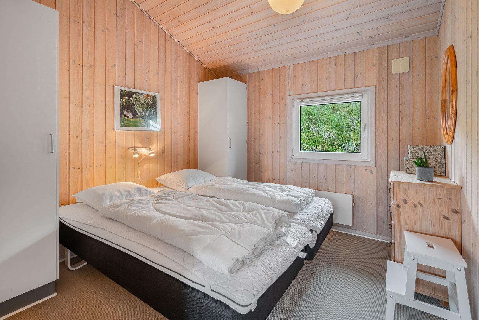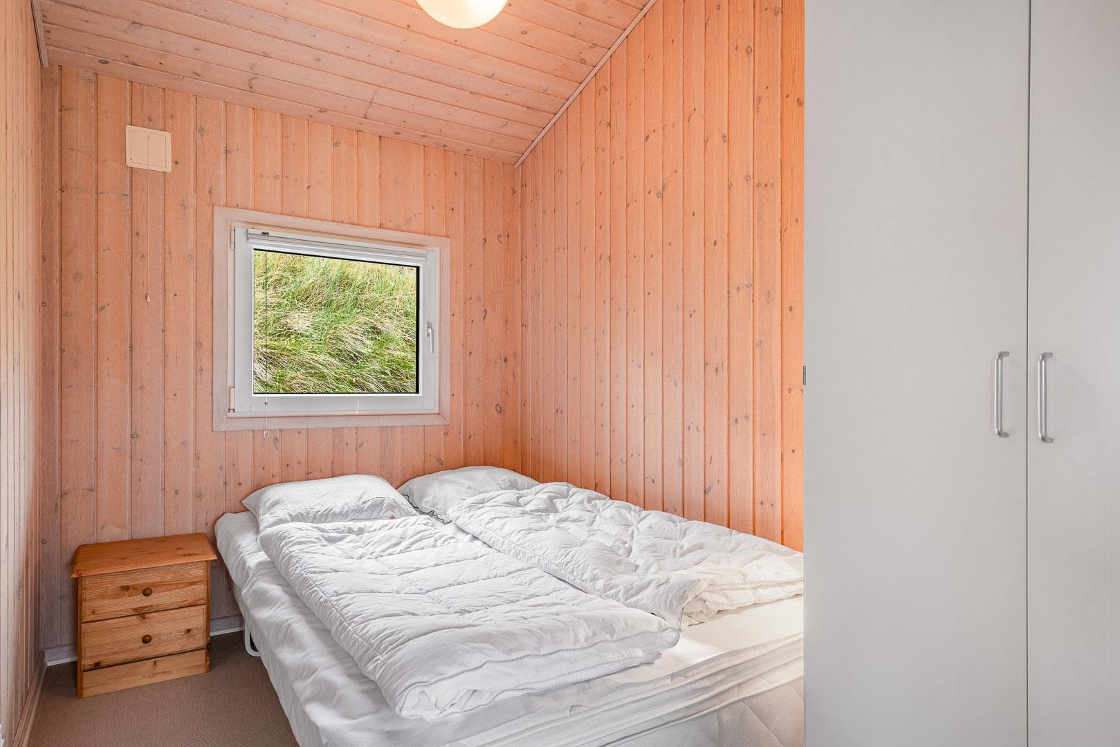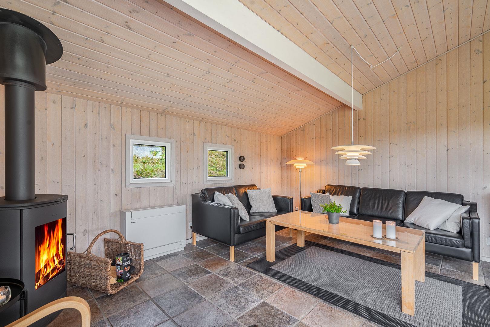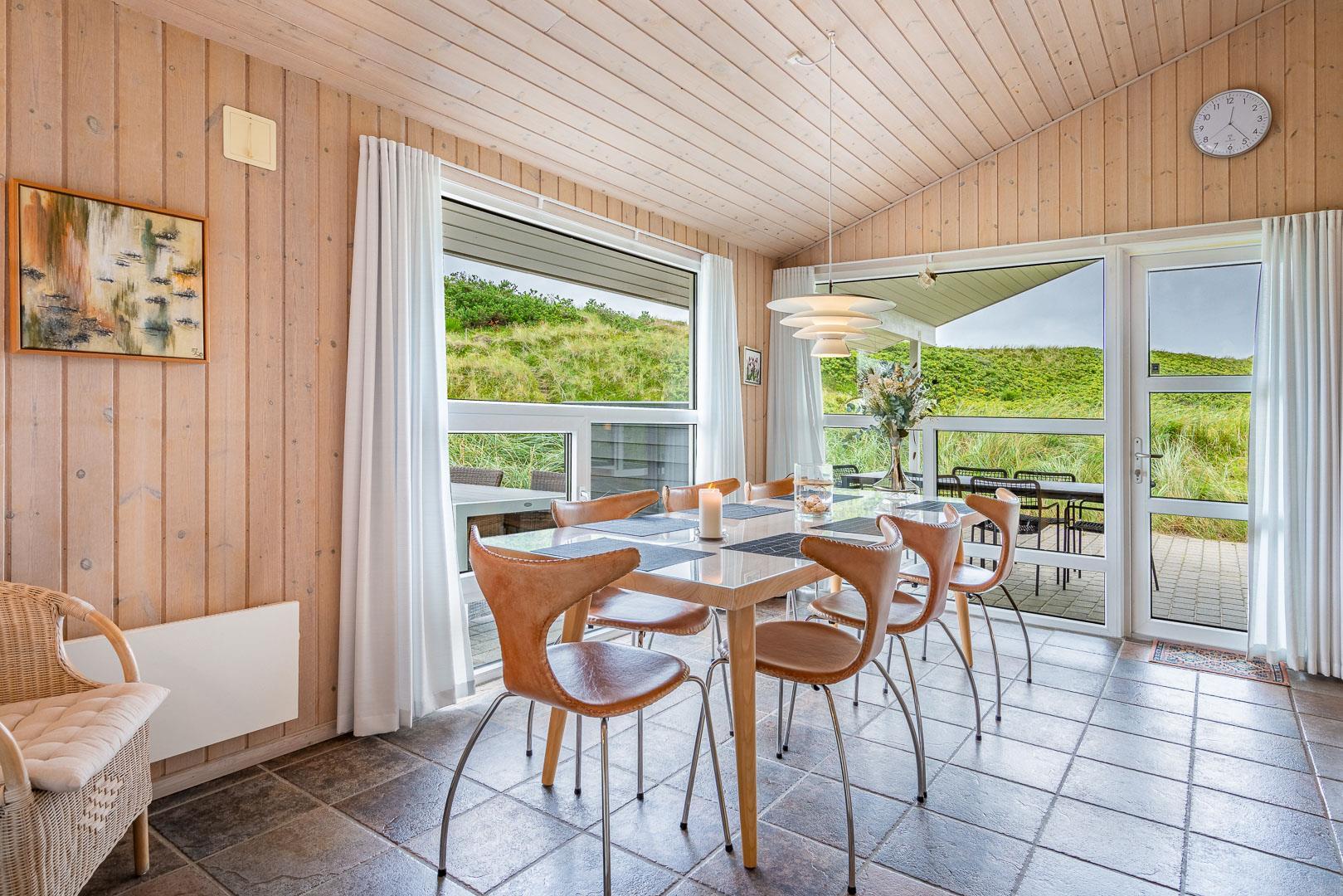 Når du kommer til feriehuset, bliver du mødt af marehalm, der vugger i vinden foran den hvide hoveddør. Huset, som er sortmalet i klassisk sommerhusstil, emmer af charme og varme. Indenfor er der kælet for detaljerne, og de store vinduer lader dagslyset strømme ind, mens de skaber en smuk forbindelse til den omkringliggende natur. Det åbne køkken-alrum danner husets hjerte, med en trinopdelt overgang til den hyggelige stue. Her kan du rigtig synke ned i sofaen og nyde synet af klitterne udenfor. En knitrende brændeovn sørger for ekstra hygge på kølige aftener, mens du nyder en god bog eller en film med resten af familien.