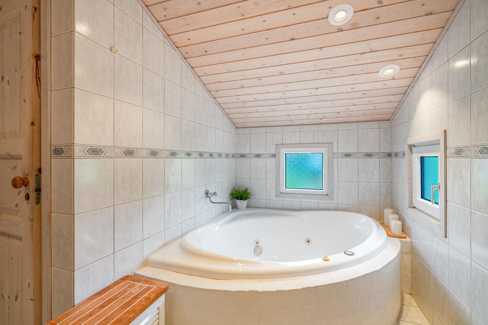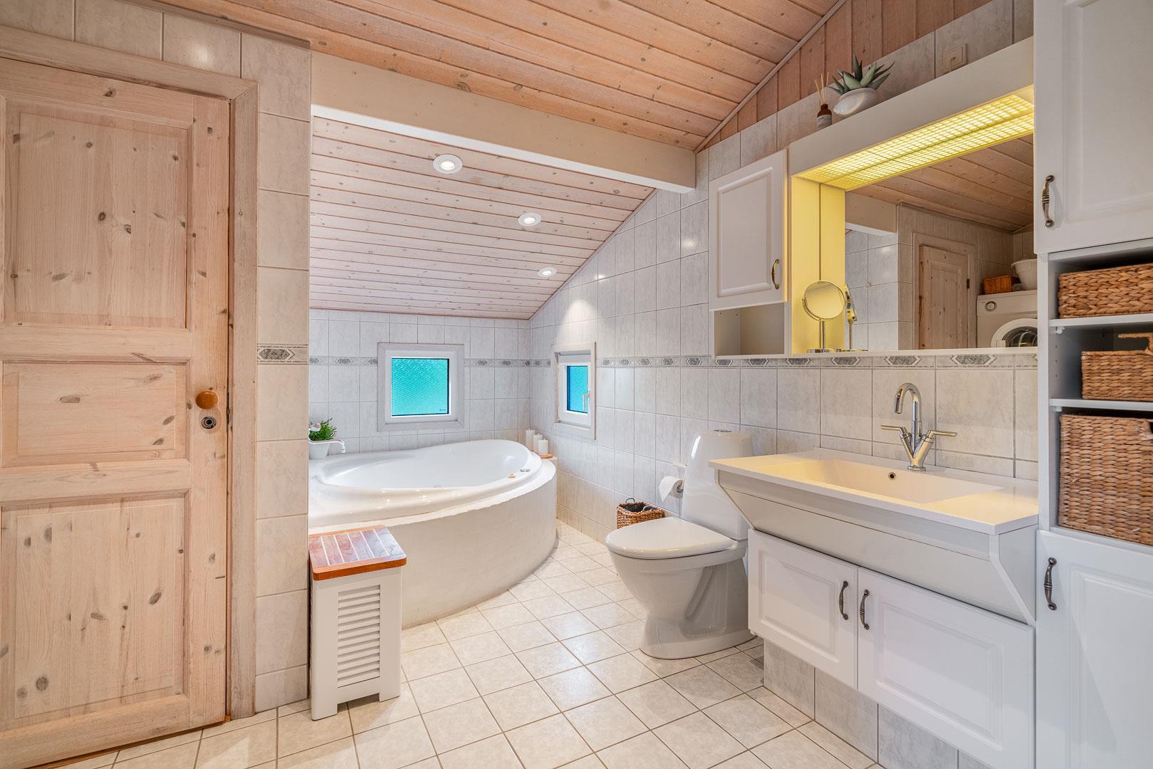 Badeværelset byder på ekstra luksus med både gulvvarme, spa og adgang til sauna.