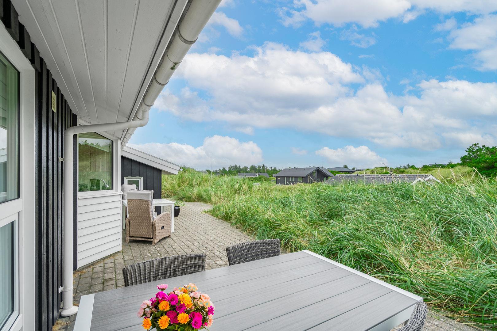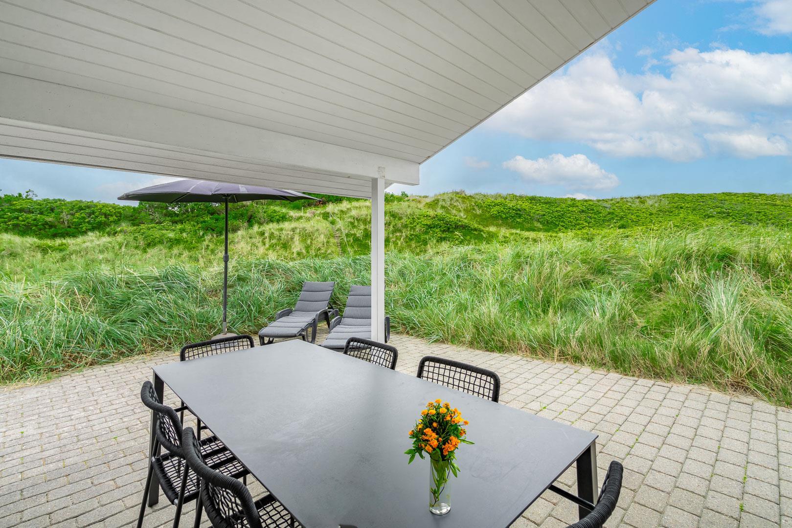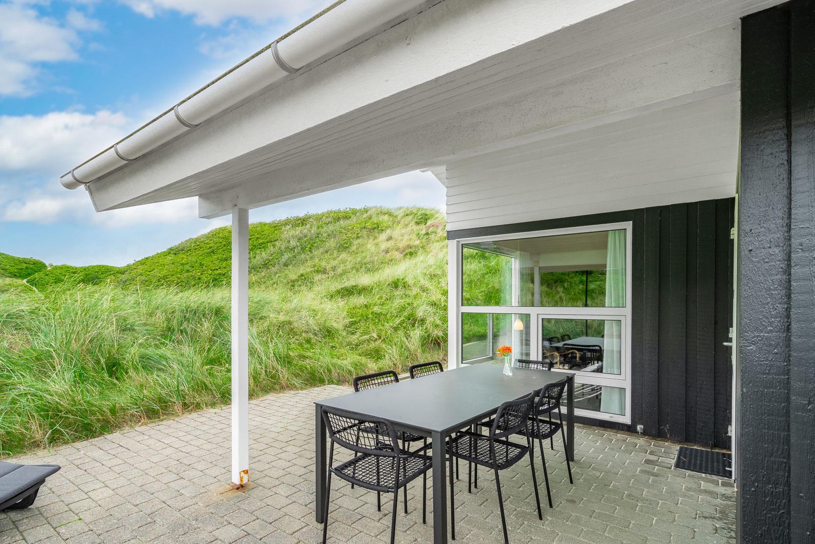 Sommerhuset ligger på en stor klitgrund på 1500 m2, let hævet, hvilket giver en fantastisk udsigt over det naturskønne område. På den delvist overdækkede terrasse kan du nyde morgenkaffen i dejlige havemøbler, mens du indånder den friske havluft og lytter til havets bølger. Det er et ideelt sted at slappe af, nyde solen og lade tankerne flyde frit.