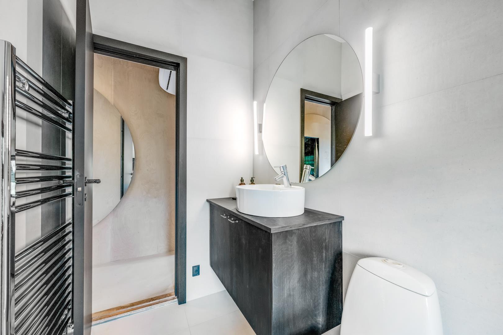 To moderne badeværelser, det ene med vaskemaskine og tørretumbler, fuldender indretningen.