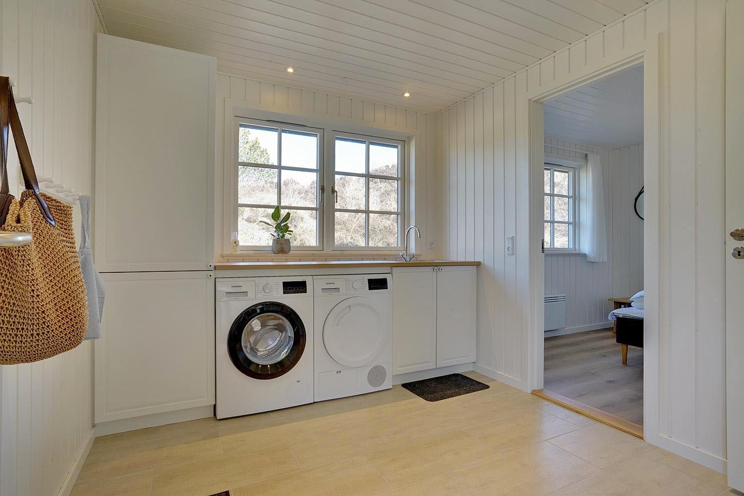 Der findes også både vaskemaskine og tørretumbler, så I nemt kan holde styr på ferievasken.