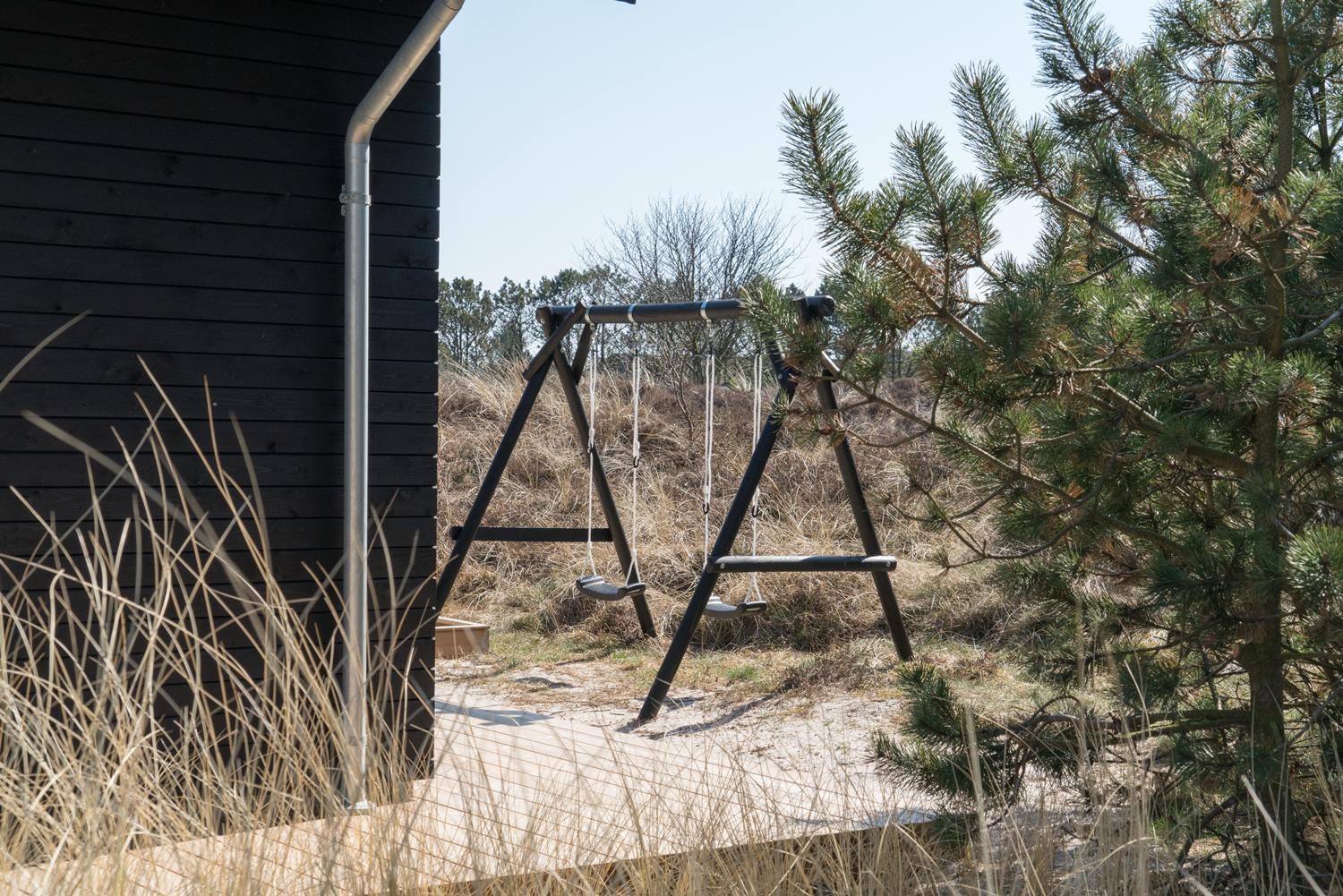 På den store grund er der både gynge og sandkasse – perfekt til familiens yngste. Den overdækkede terrasse giver mulighed for at nyde hyggelige aftener udendørs, uanset vejret.