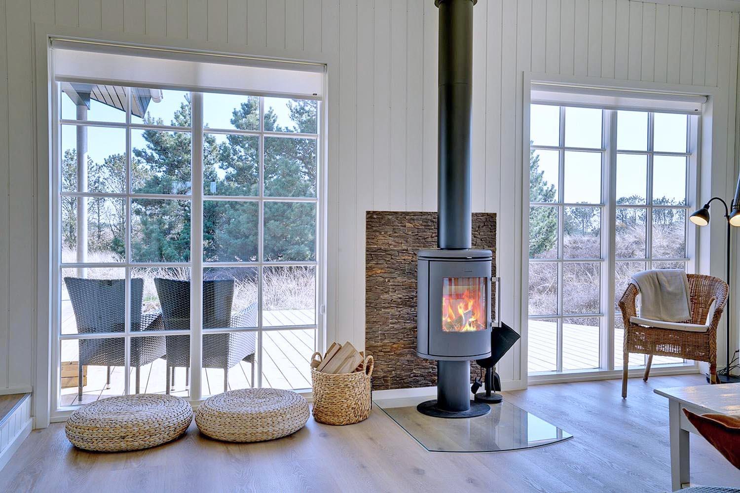 I det store opholdsrum kan I nyde hyggelige aftener foran brændeovnen, som skaber en varm og afslappet stemning. Det åbne køkken er moderne og fuldt udstyret – her er alt, hvad I behøver til fælles madlavning og hyggelige måltider.