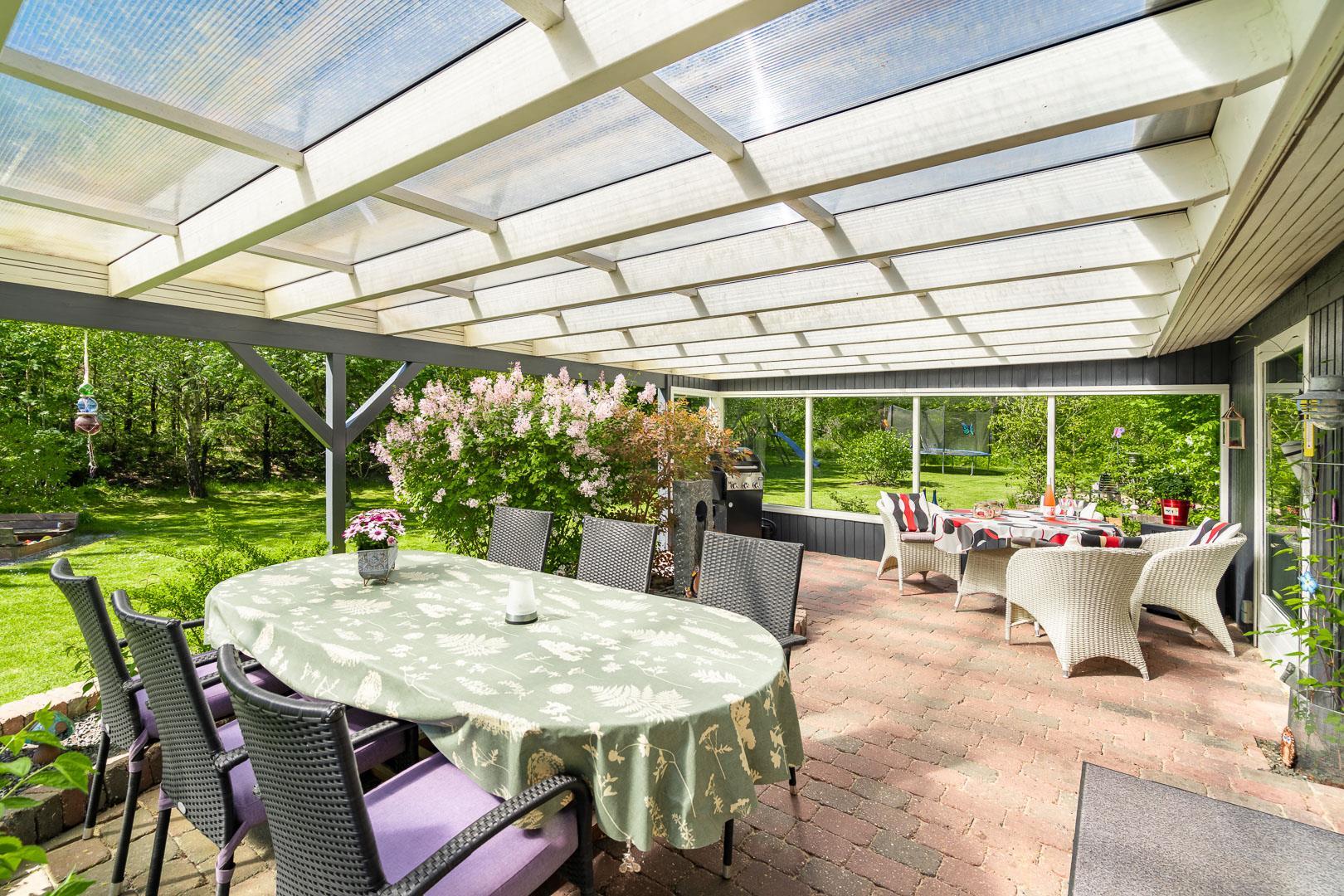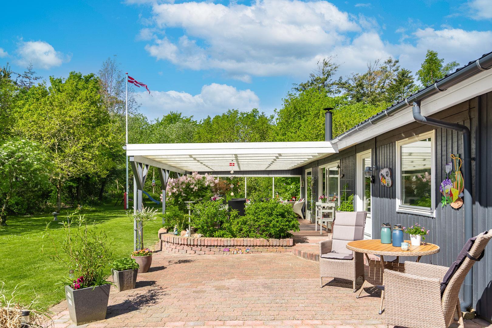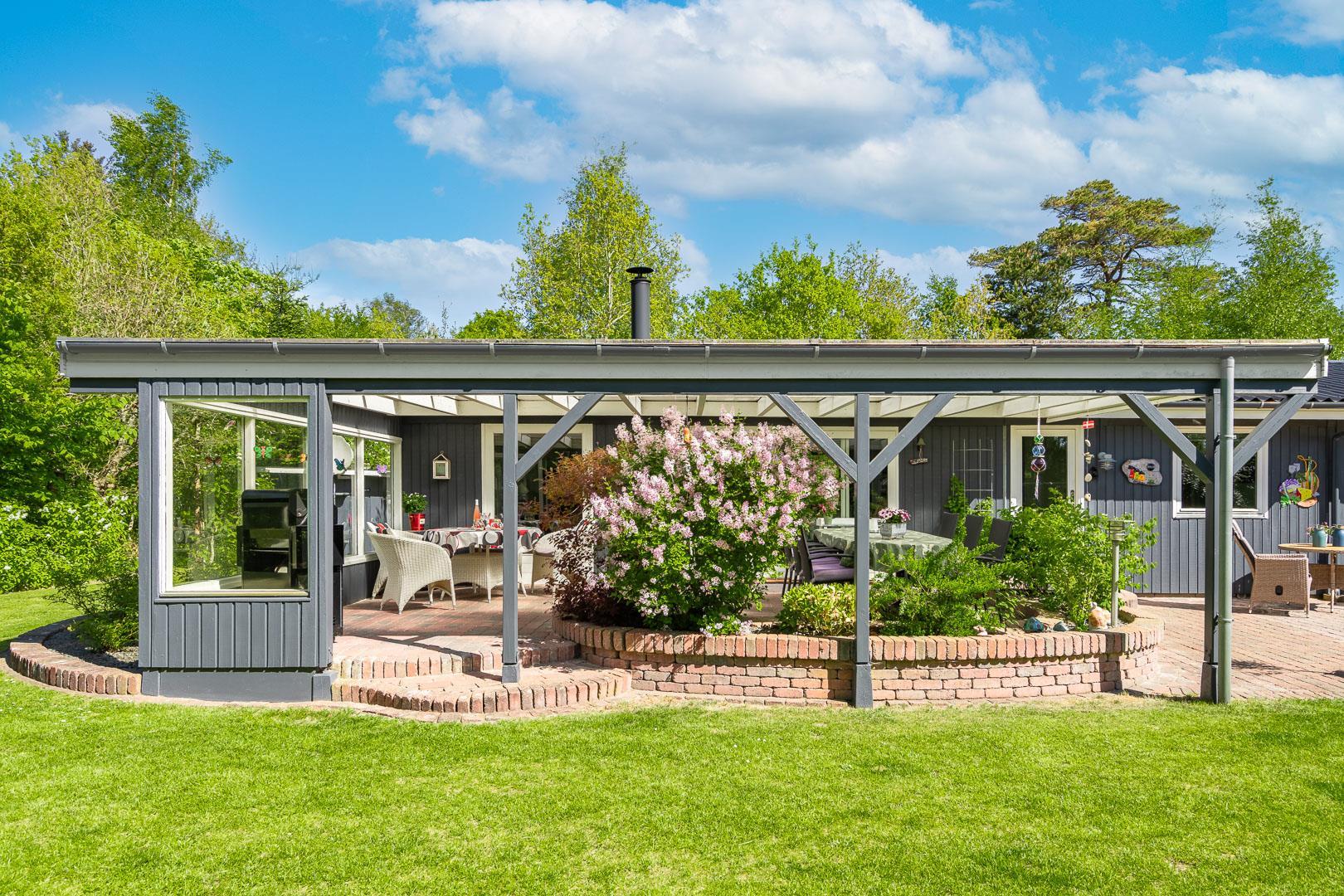 Træd ind i den rummelige og lyse stue, der smelter sammen med spisestuen og det veludstyrede køkken. Centralt placeret finder du en hyggelig brændeovn og en praktisk varmepumpe, der sikrer behagelige temperaturer uanset årstid. Fra stuen er der udgang til en særdeles skøn og overdækket terrasse, hvor du kan slappe af og nyde den betagende udsigt over den smukke naturgrund.
