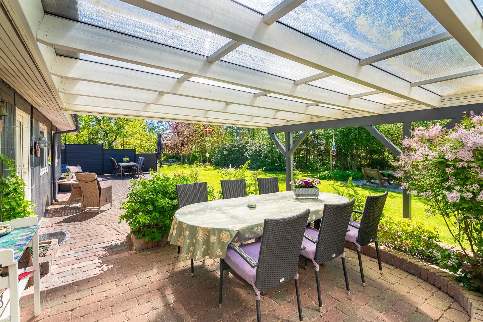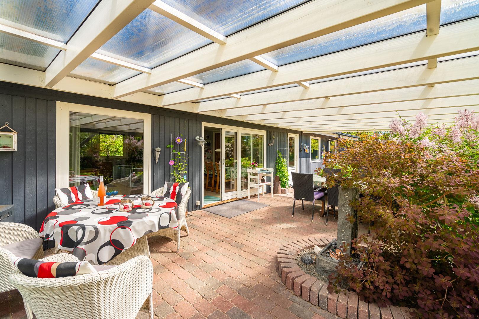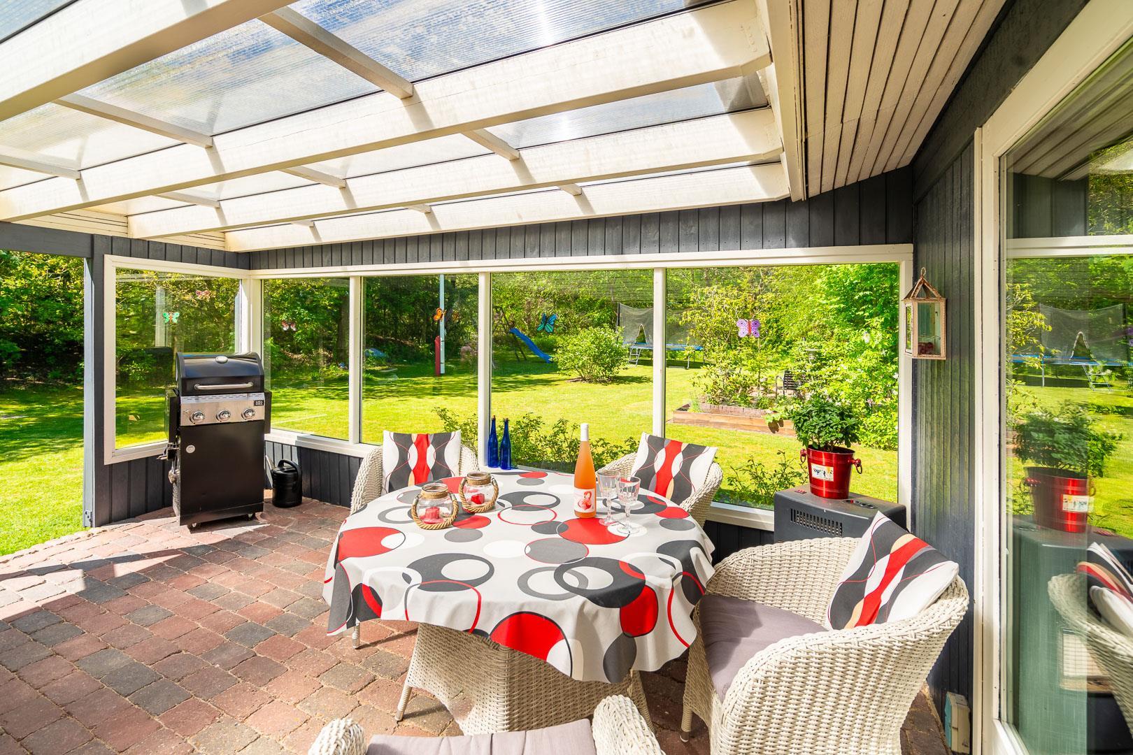 Træd ind i den rummelige og lyse stue, der smelter sammen med spisestuen og det veludstyrede køkken. Centralt placeret finder du en hyggelig brændeovn og en praktisk varmepumpe, der sikrer behagelige temperaturer uanset årstid. Fra stuen er der udgang til en særdeles skøn og overdækket terrasse, hvor du kan slappe af og nyde den betagende udsigt over den smukke naturgrund.