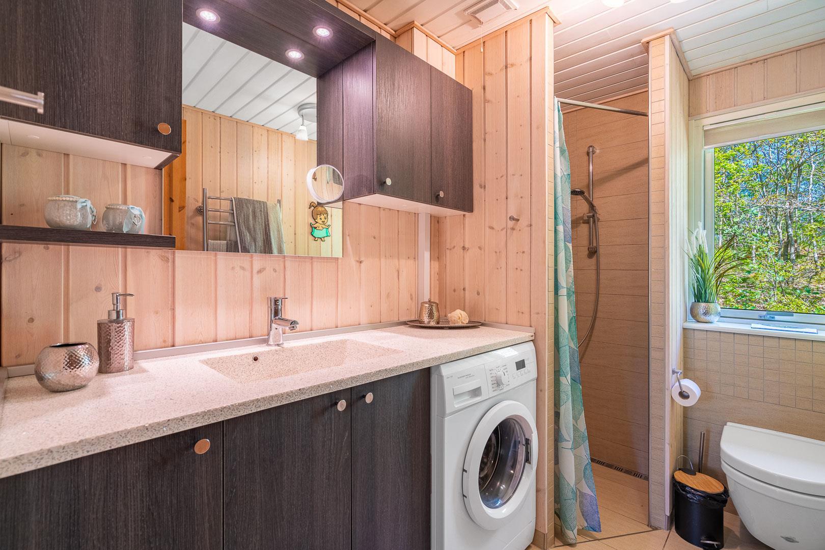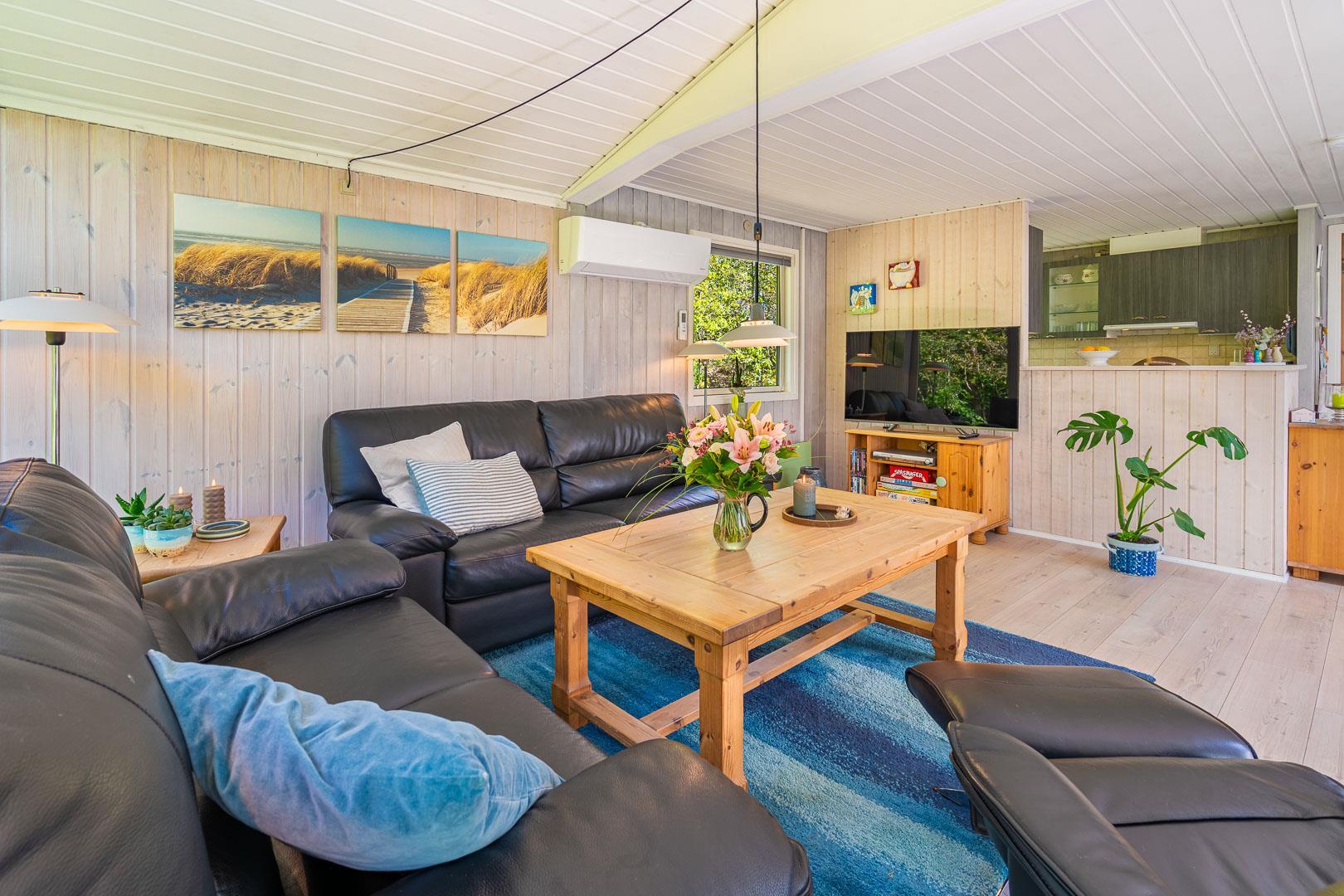 I sommerhuset venter desuden tre dejlige soveværelser og et badeværelse med gulvvarme. Et tilstødende redskabsrum byder på ekstra praktisk plads, herunder en fryser.