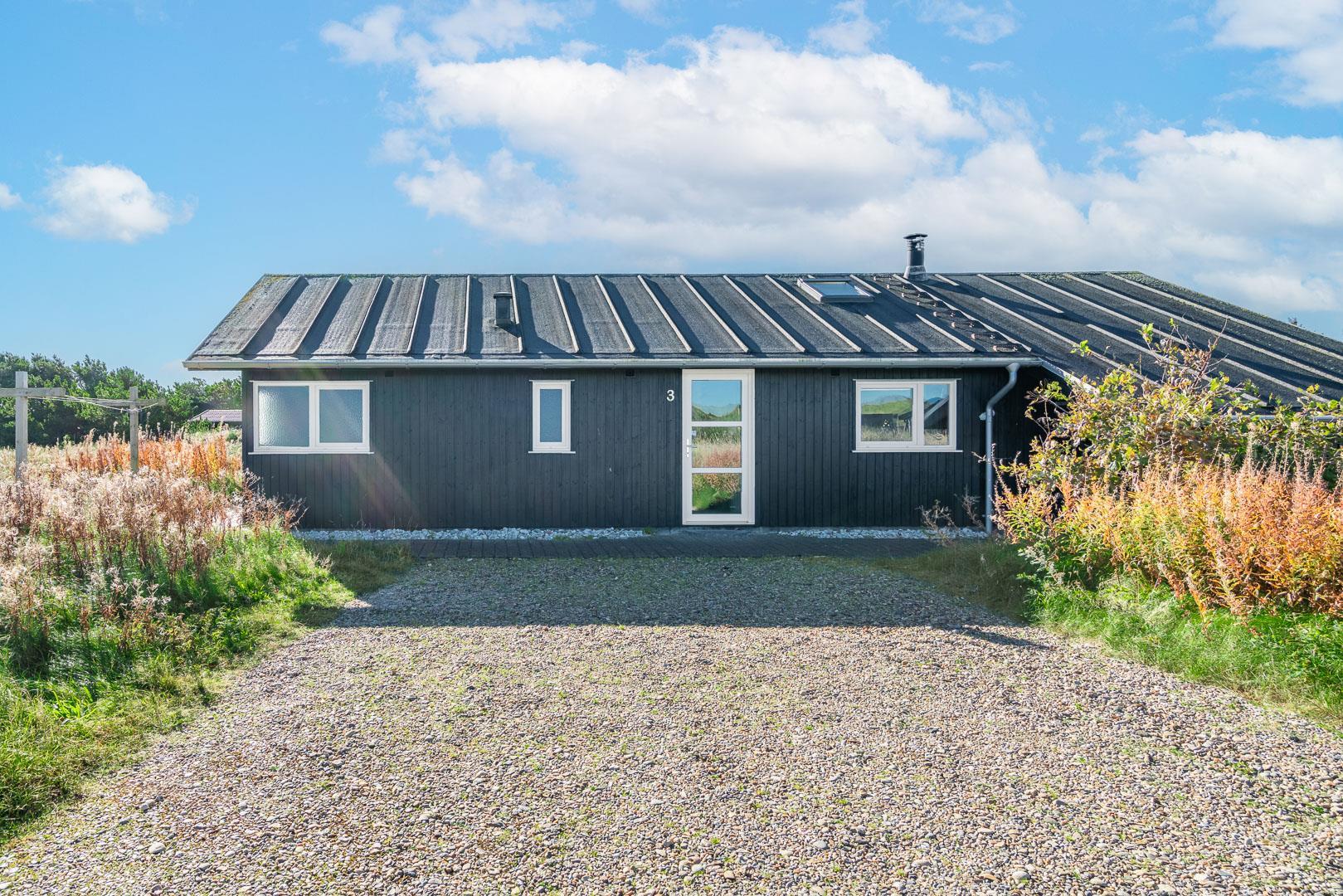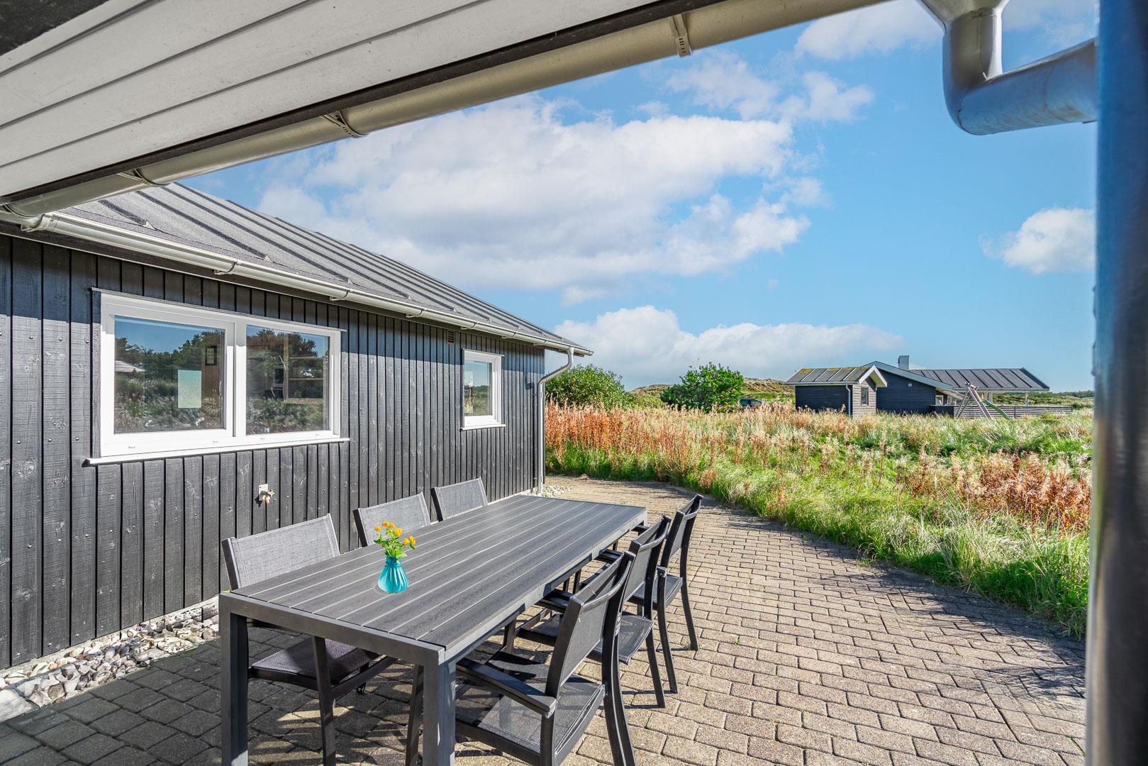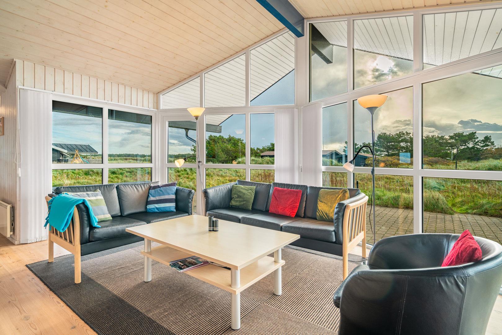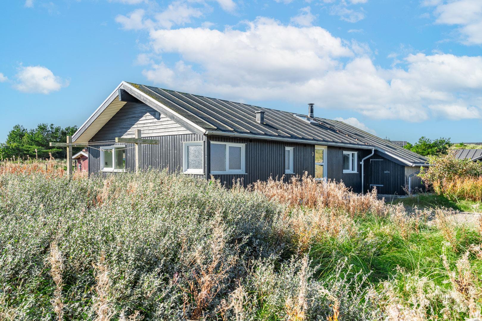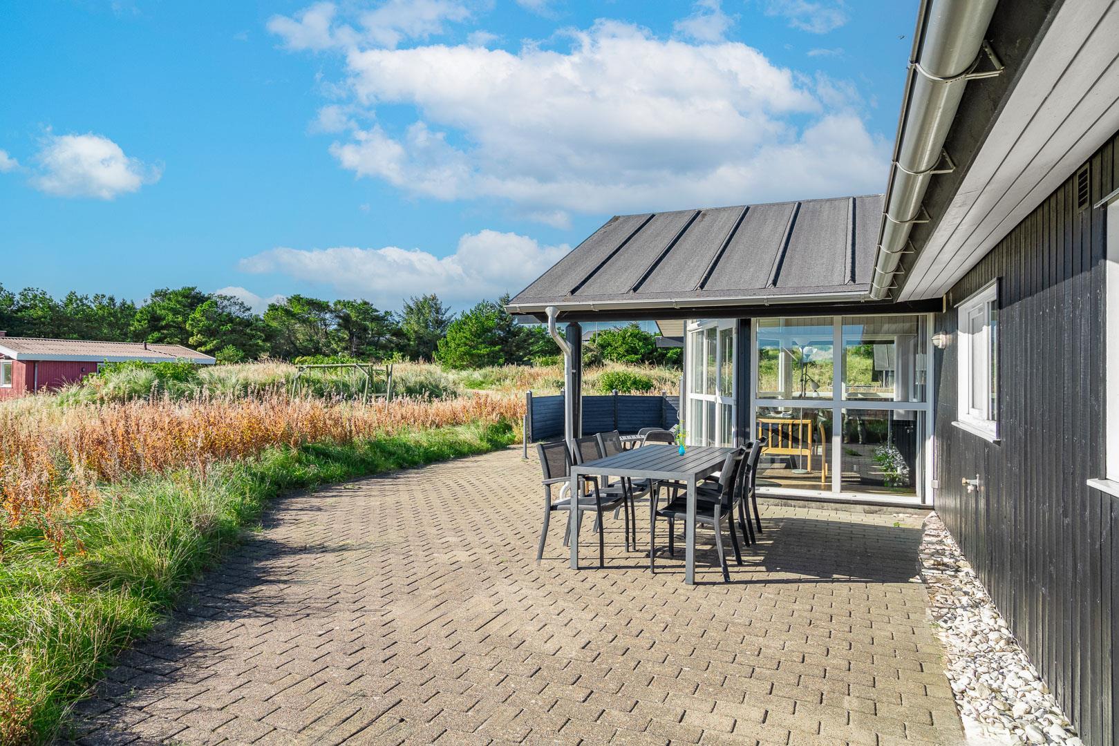Lyst og godt indrettet feriehus beliggende på en pragtfuld naturgrund ikke langt fra stranden samt Henne Mølleå. Huset er meget velholdt, moderne og smagfuldt indrettet. Fra stuen er der udgang til dejlig stor terrasse. I feriehusets store badeværelse er der opsat spa og med adgang til feriehusets sauna.