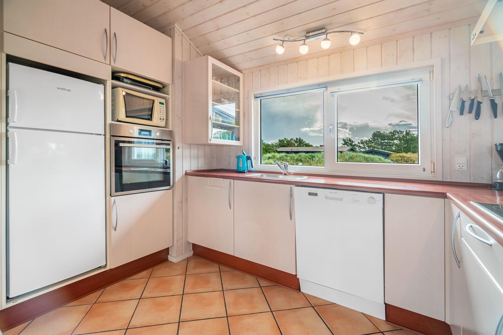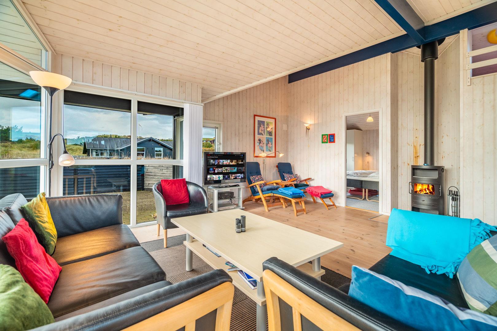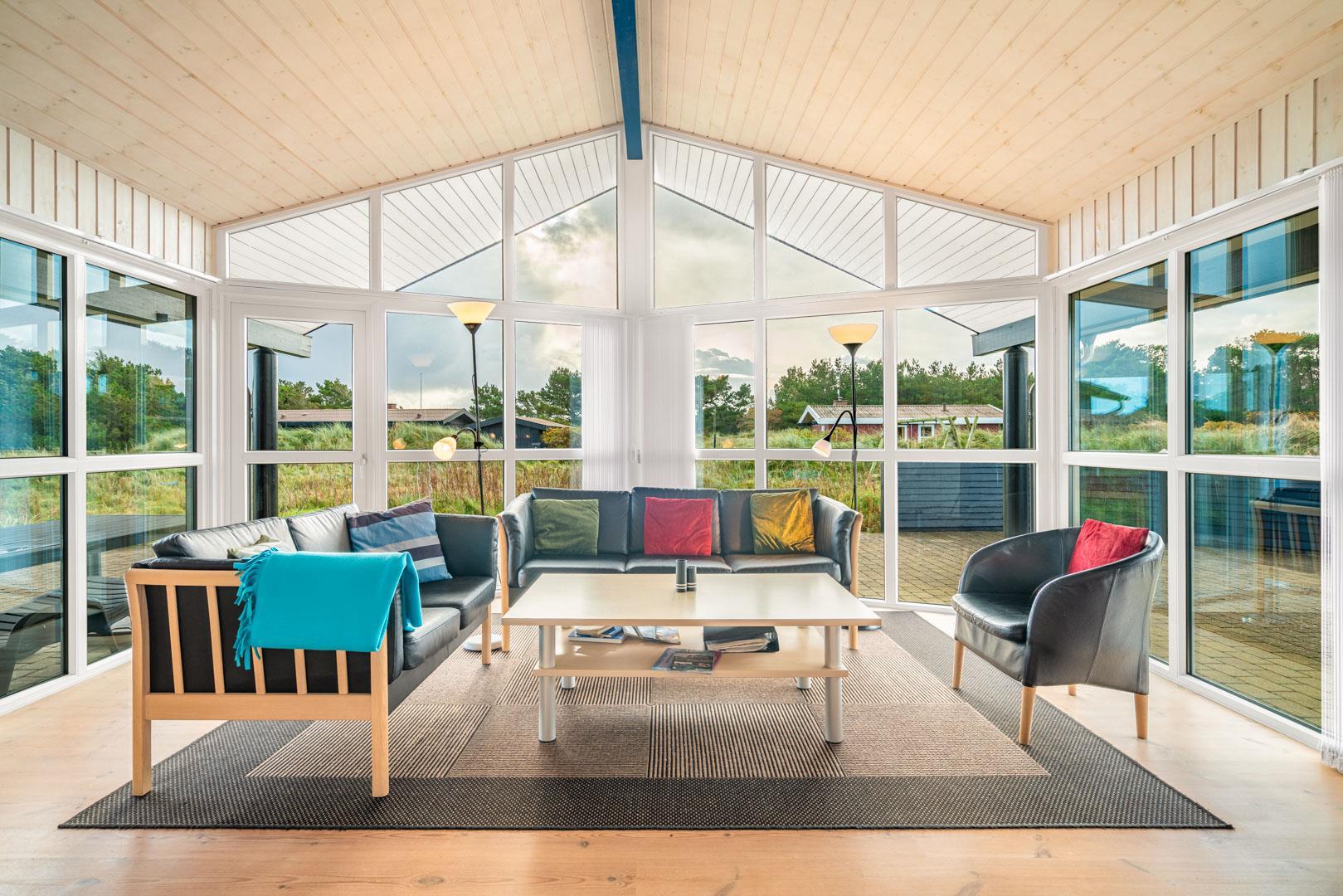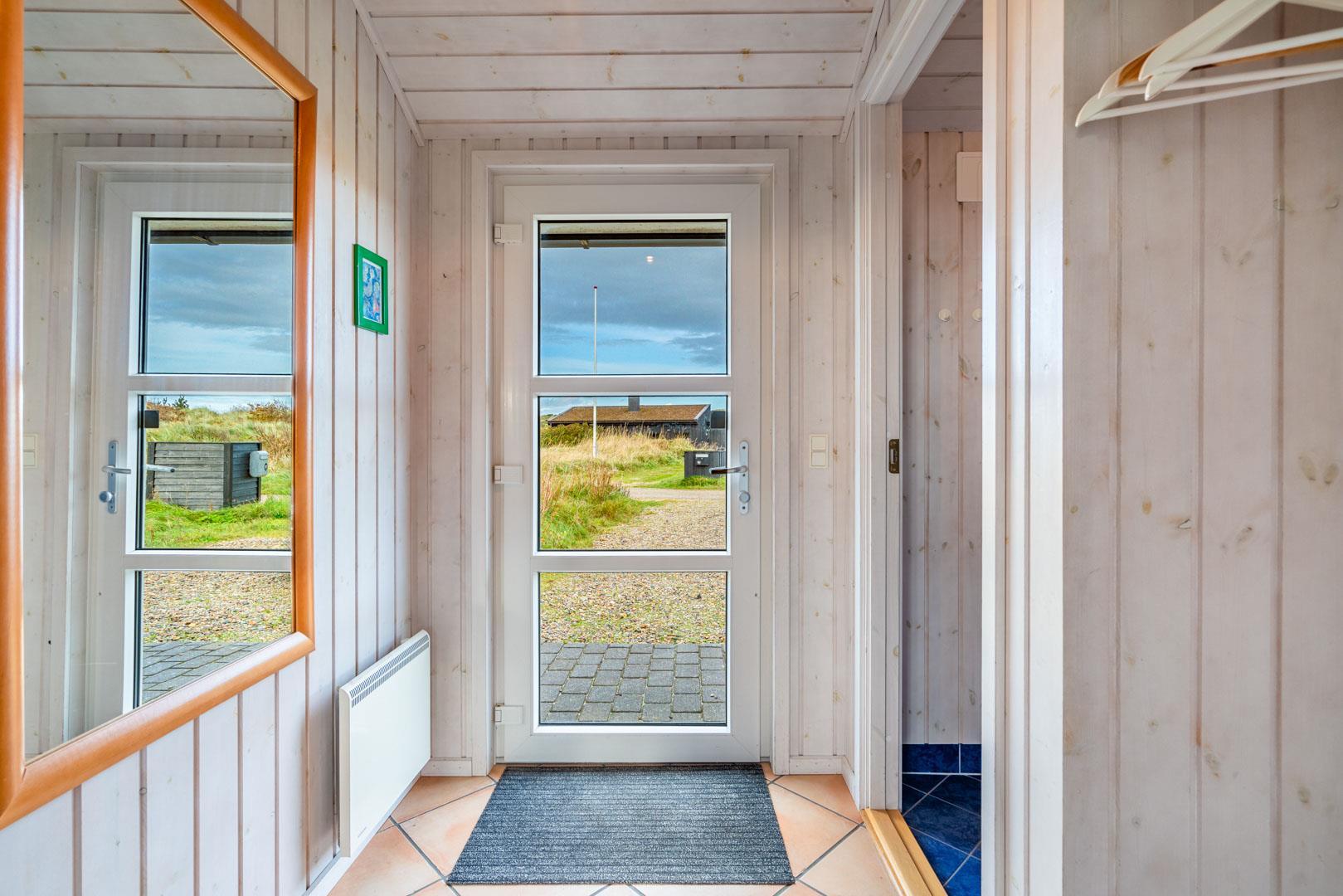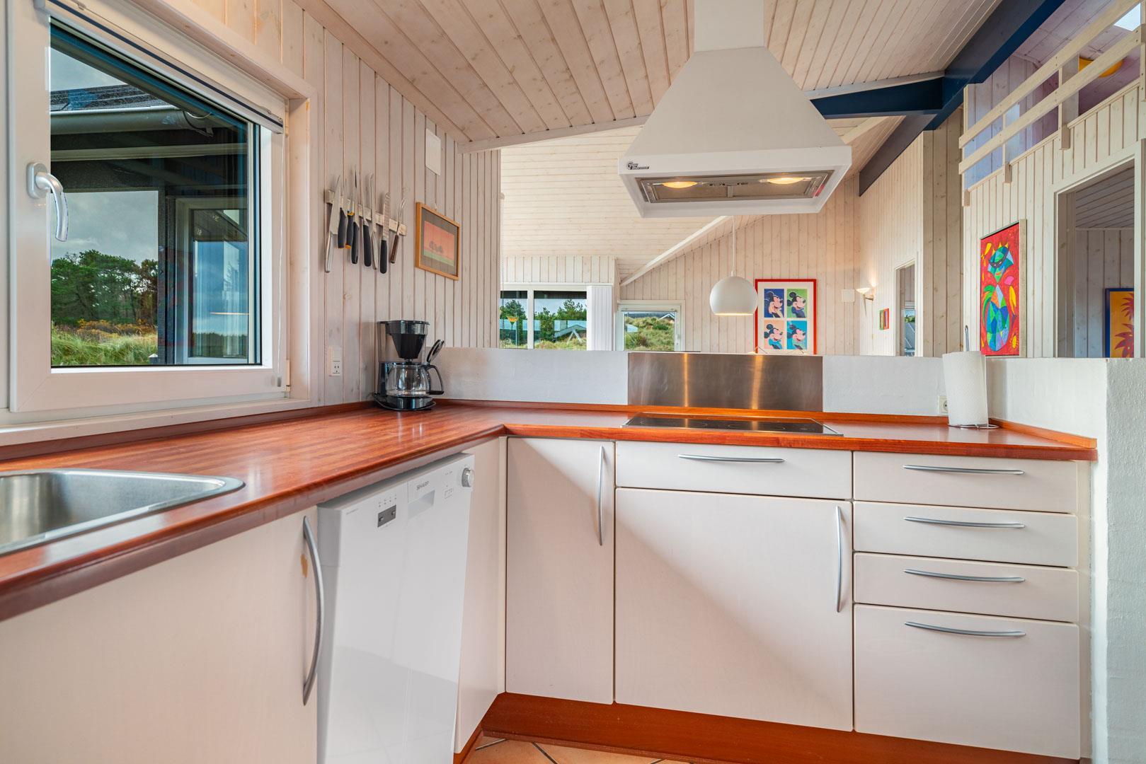 Lyst og godt indrettet feriehus beliggende på en pragtfuld naturgrund ikke langt fra stranden samt Henne Mølleå. Huset er meget velholdt, moderne og smagfuldt indrettet. Fra stuen er der udgang til dejlig stor terrasse. I feriehusets store badeværelse er der opsat spa og med adgang til feriehusets sauna.