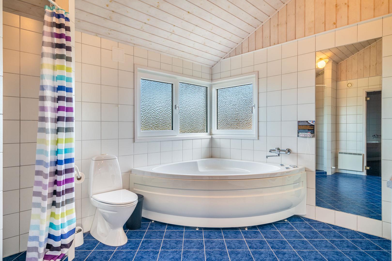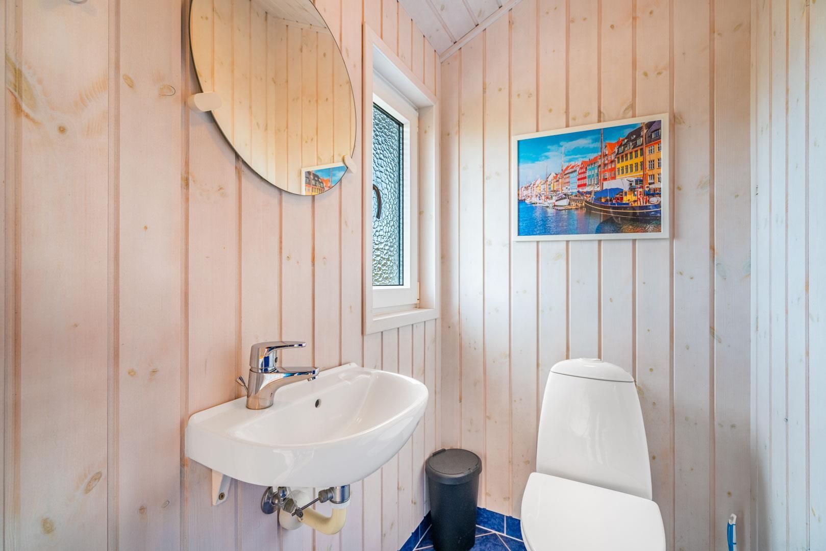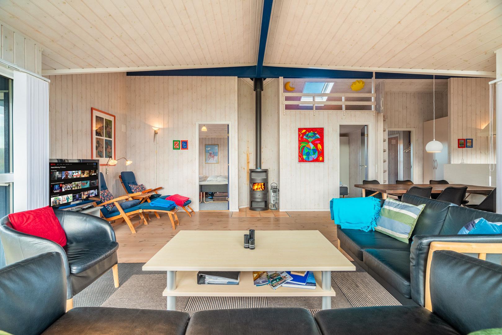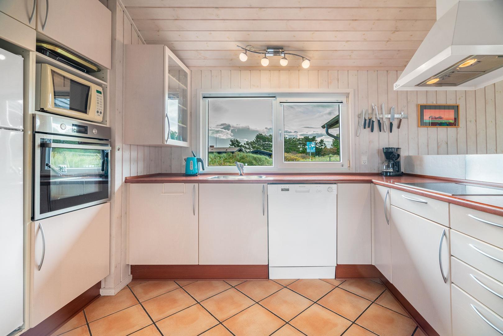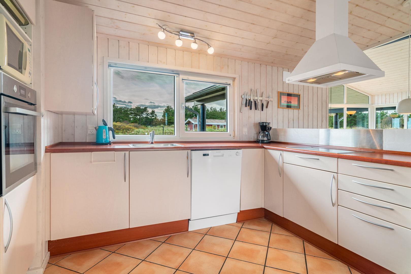 Lyst og godt indrettet feriehus beliggende på en pragtfuld naturgrund ikke langt fra stranden samt Henne Mølleå. Huset er meget velholdt, moderne og smagfuldt indrettet. Fra stuen er der udgang til dejlig stor terrasse. I feriehusets store badeværelse er der opsat spa og med adgang til feriehusets sauna.