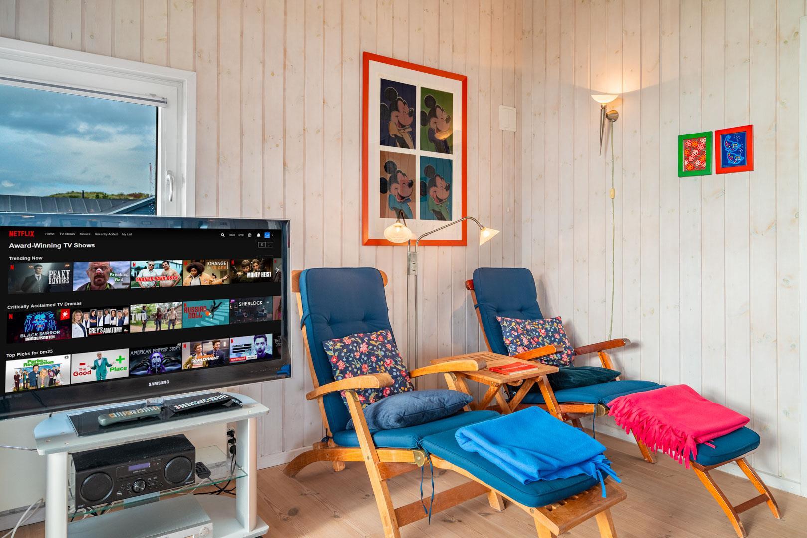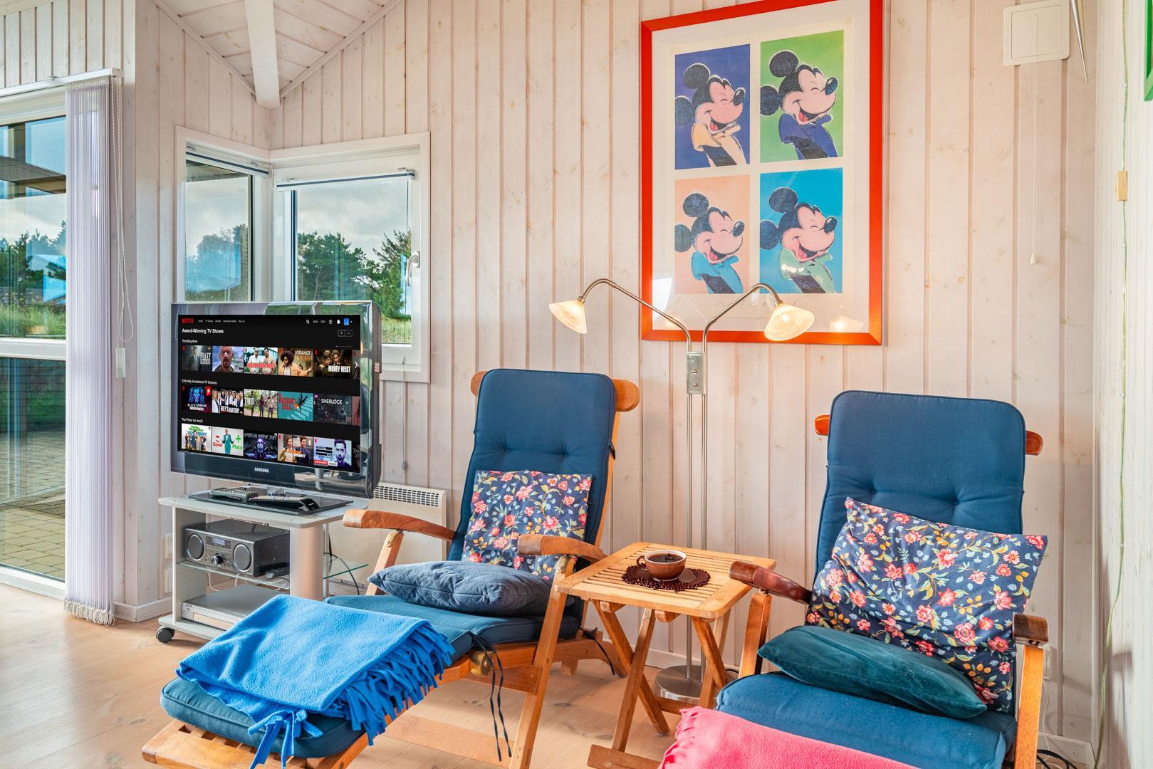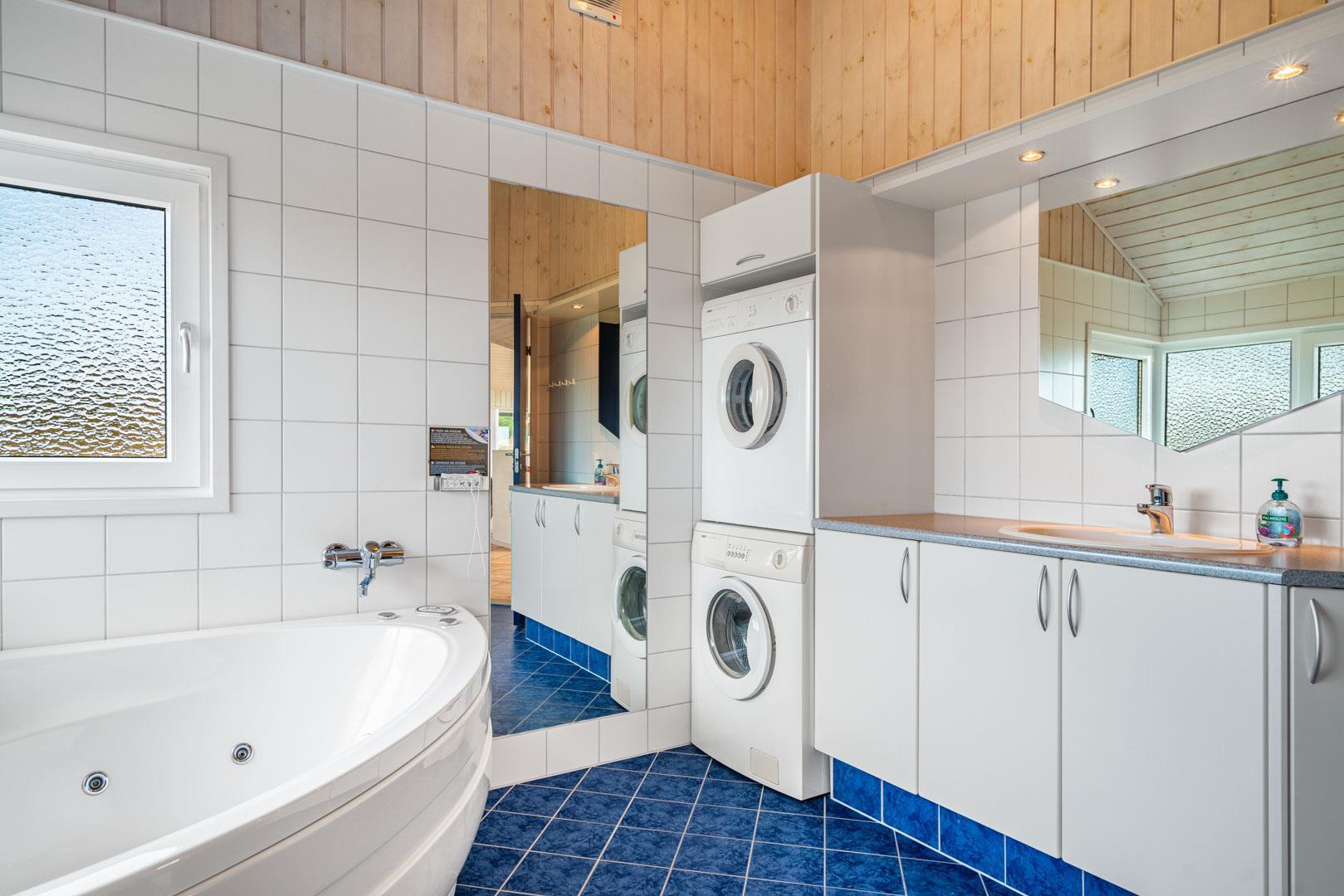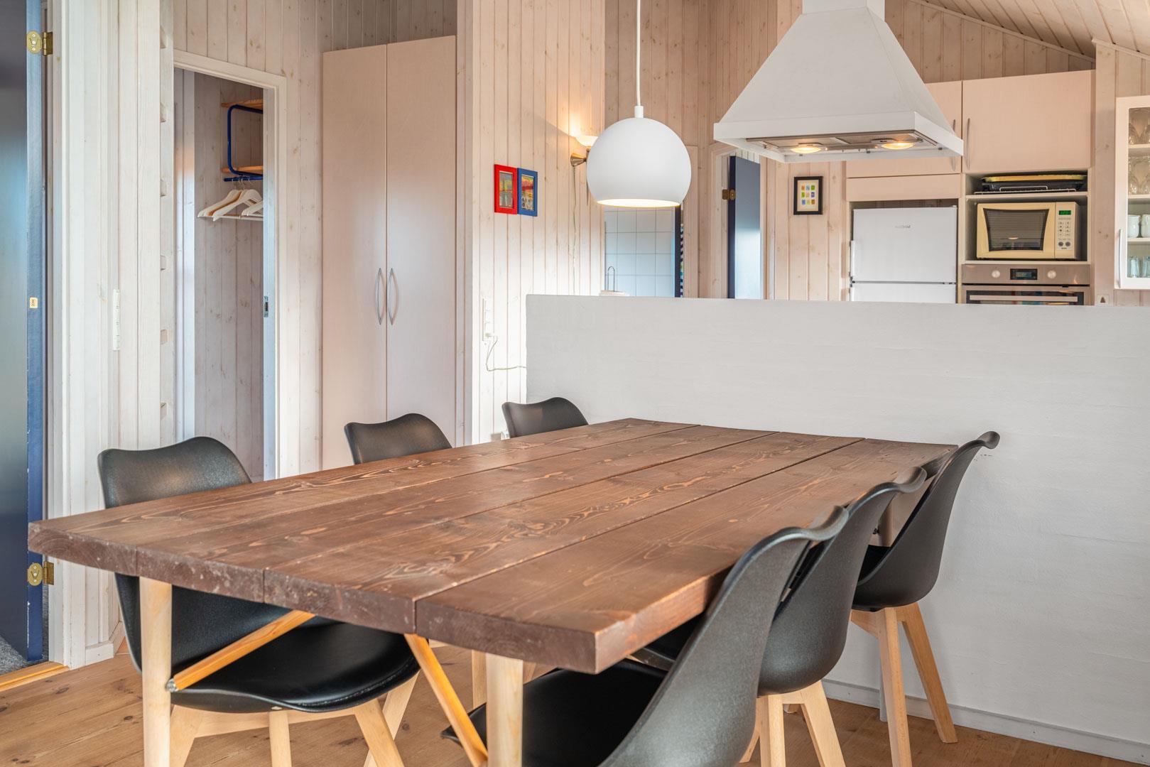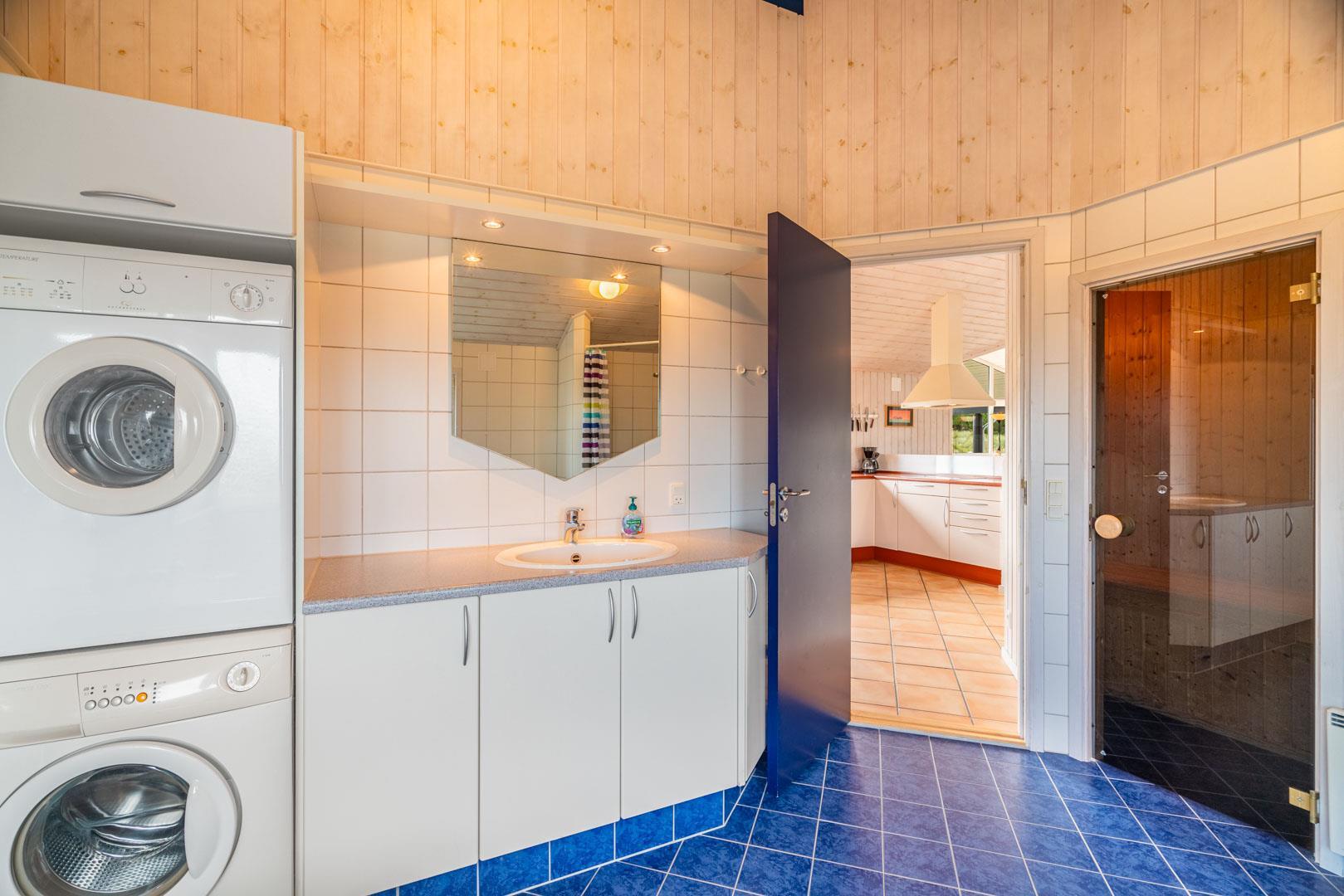 Lyst og godt indrettet feriehus beliggende på en pragtfuld naturgrund ikke langt fra stranden samt Henne Mølleå. Huset er meget velholdt, moderne og smagfuldt indrettet. Fra stuen er der udgang til dejlig stor terrasse. I feriehusets store badeværelse er der opsat spa og med adgang til feriehusets sauna.