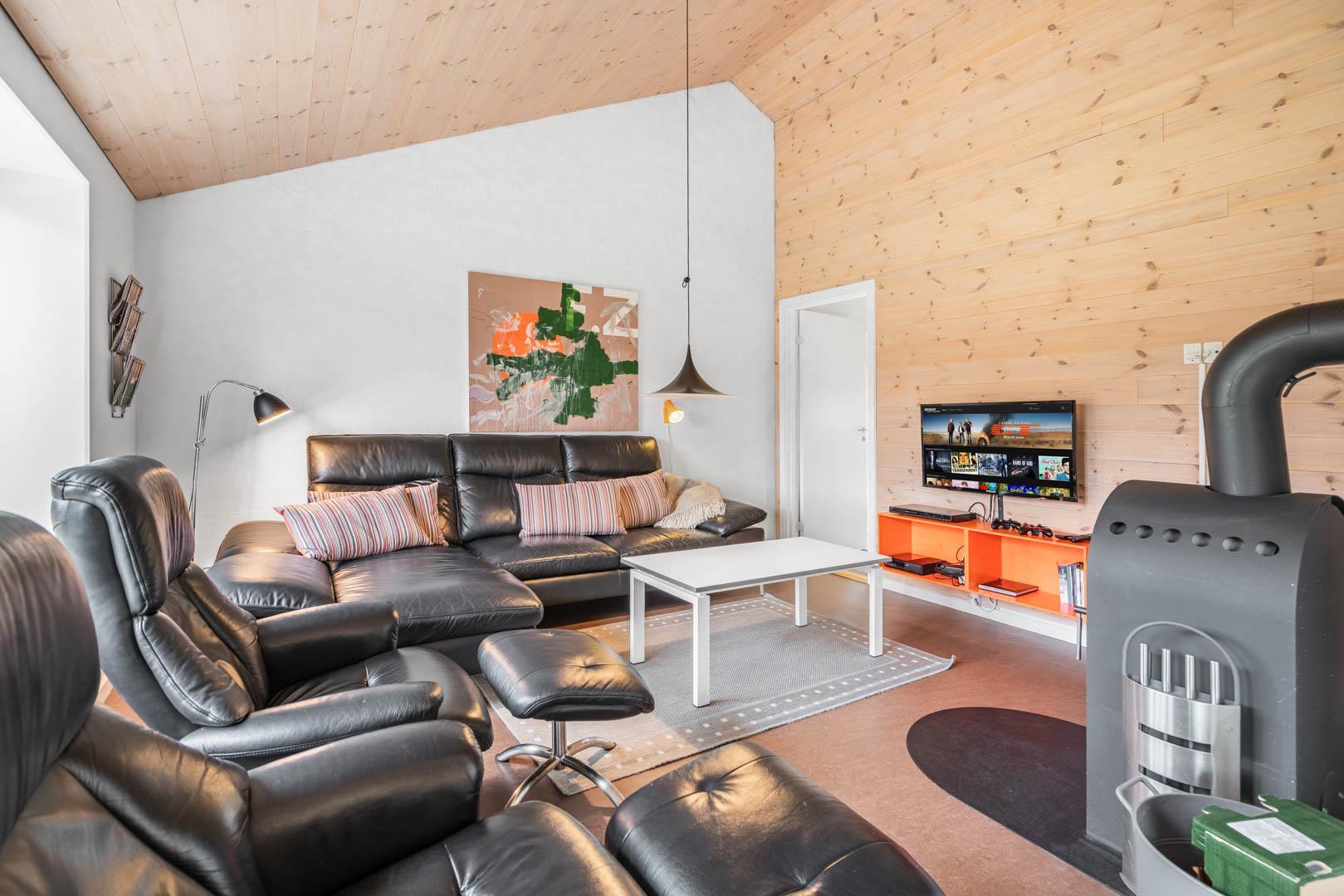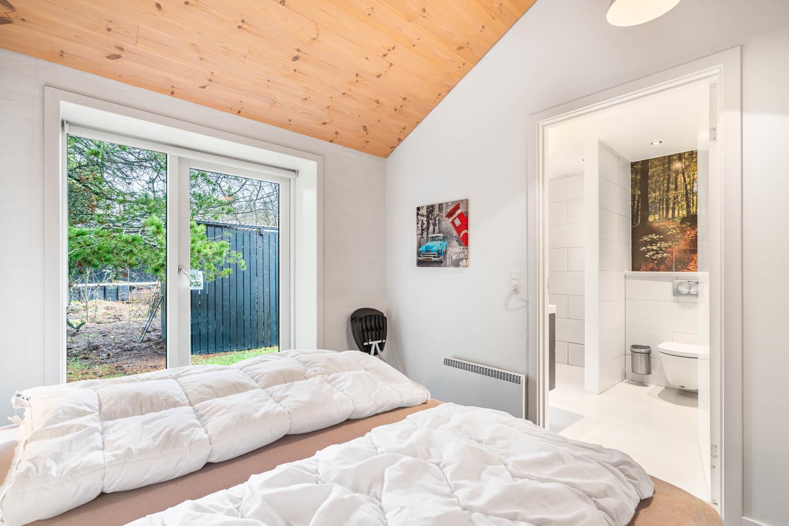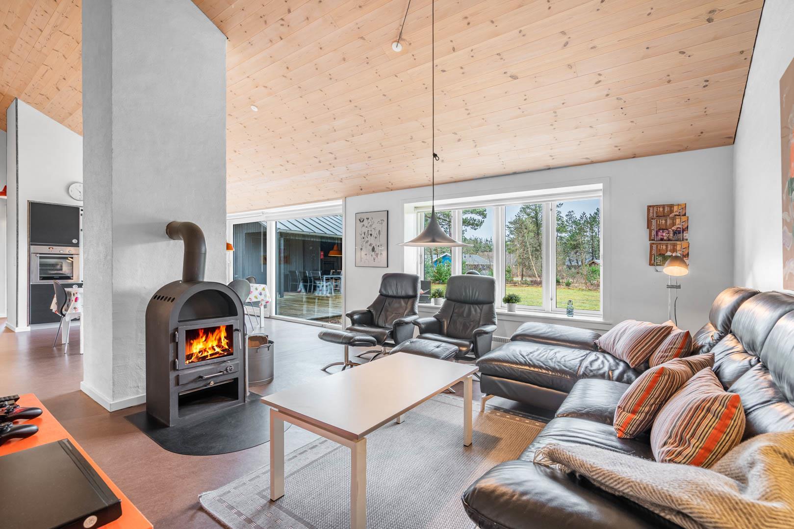 På en skøn delvis lukket grund om kranset af træer ligger dette pragtfulde feriehus. Huset fremstår overalt lyst og er meget smagfuld indrettet. Flot køkken, som ligger i åben forbindelse med stuen, som er indrettet med komfortable møbler. Fra stuen er der udgang til en dejlig terrasse, hvor naturen og roen kan nydes. Huset er indrette med 2 badeværelser med bruser. På den dejlige ugenerede naturgrund er der til børnene fodboldmål, sandkasse, gynge og trampolin.Et virkeligt dejligt feriehus hvor rammerne er skabt til en god ferie.