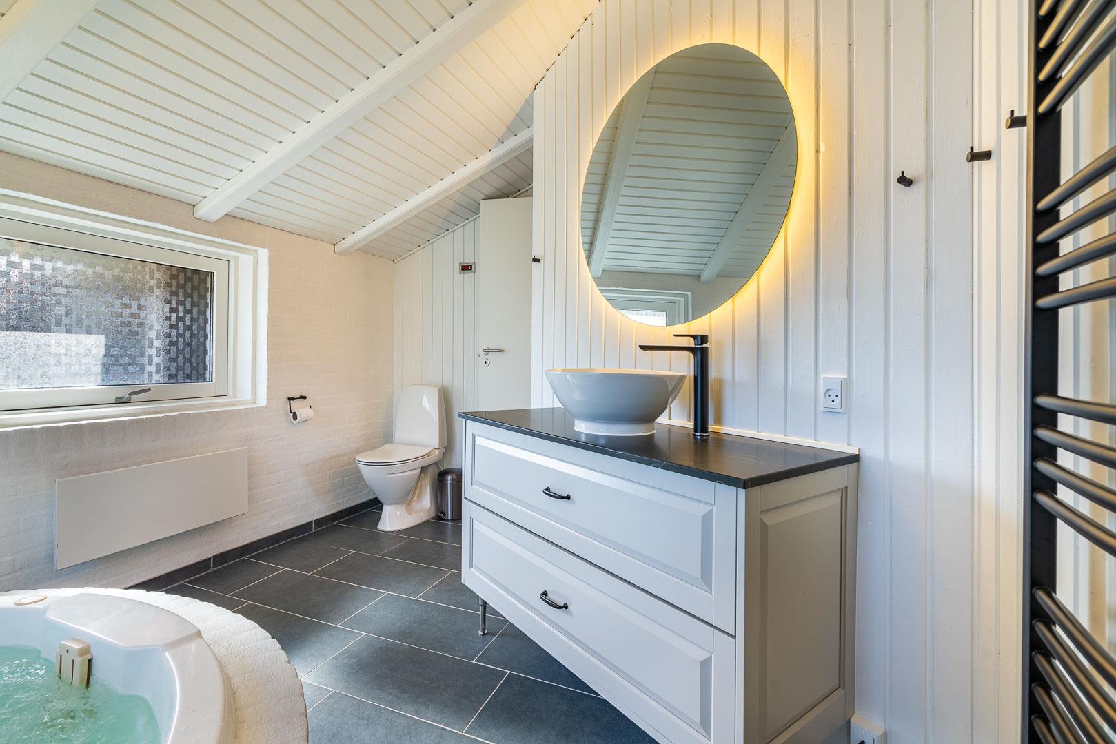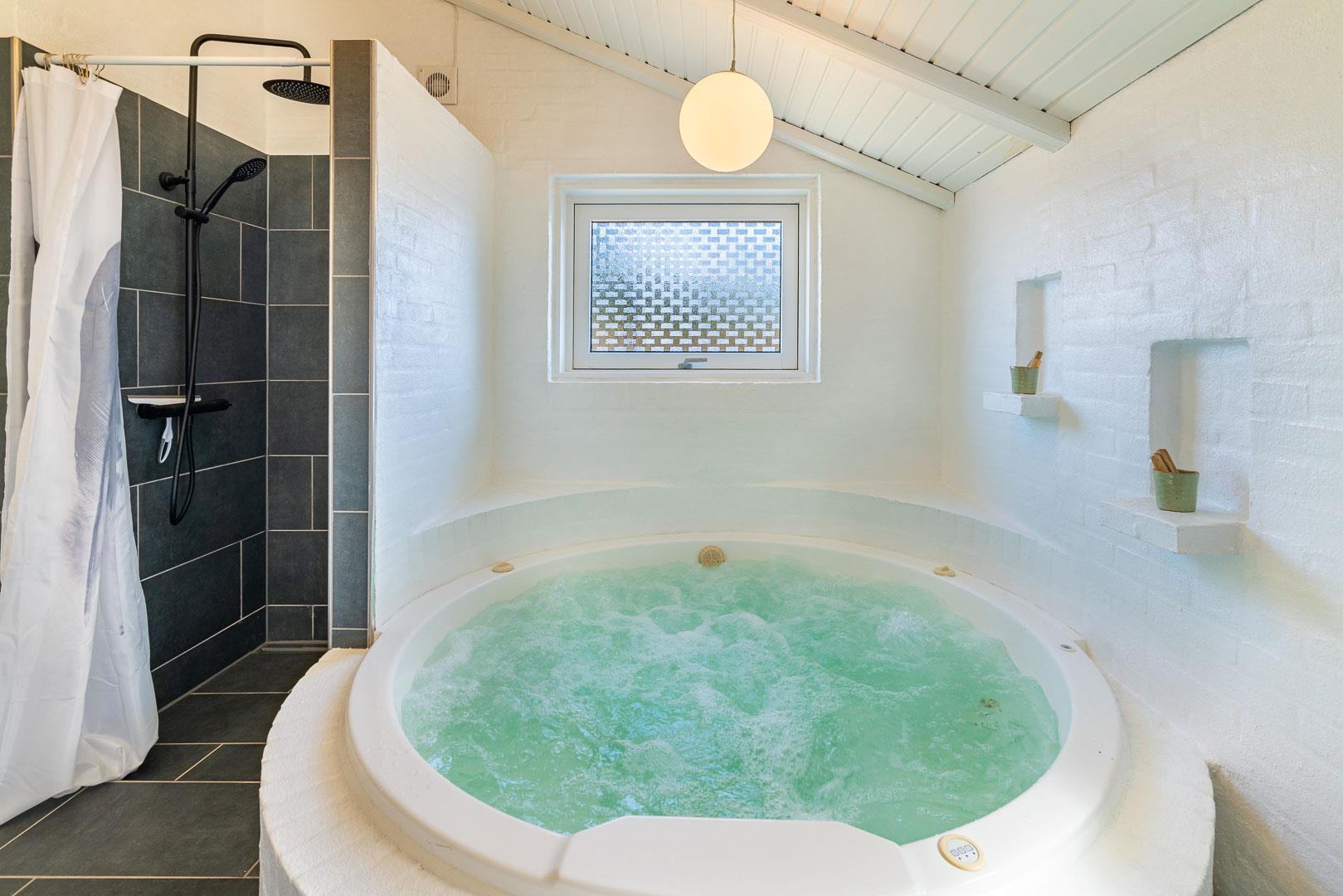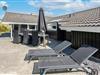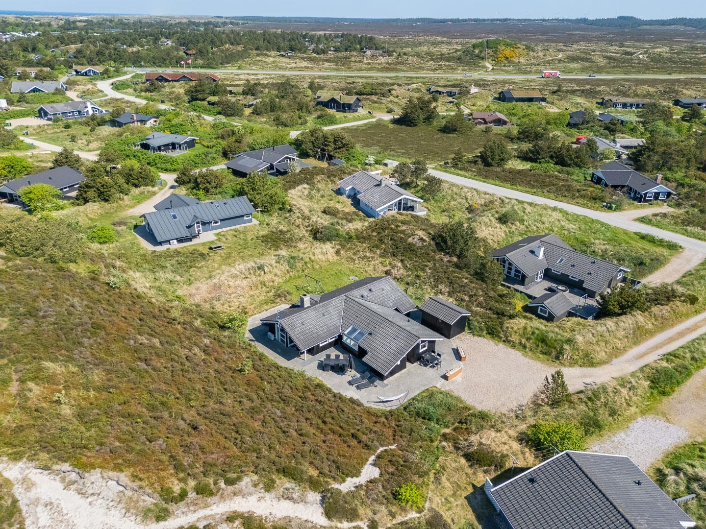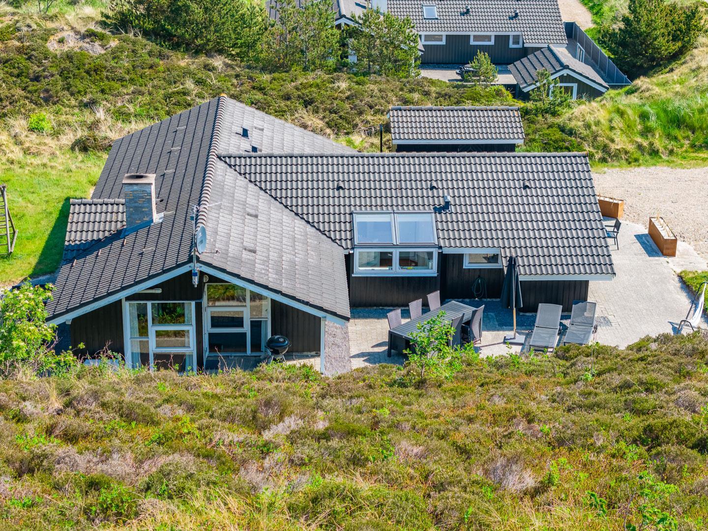 I rolige omgivelser for enden af blind stikvej finder I dette velholdte og velindrettede feriehus. Huset er omgivet af klitter, så der er gode læ muligheder på den delvis overdækkede terrasse. Der er et bryggers med vaskemaskine og tørretumbler, samt 2 badeværelser, hvoraf den ene er med spabad og sauna. Feriehuset råder over 4 soverum, 3 med dobbeltseng og et rum med 2 enkeltsenge. I åben forbindelse med husets køkken finder I spisepladsen og opholdsstuen, som er delt i 2 via et trappetrin. Der er også en brændeovn og energivenlig varmepumpe til rådighed. Den delvist overdækkede terrasse omkranser næsten hele huset, så I altid kan finde et læfyldt sted.