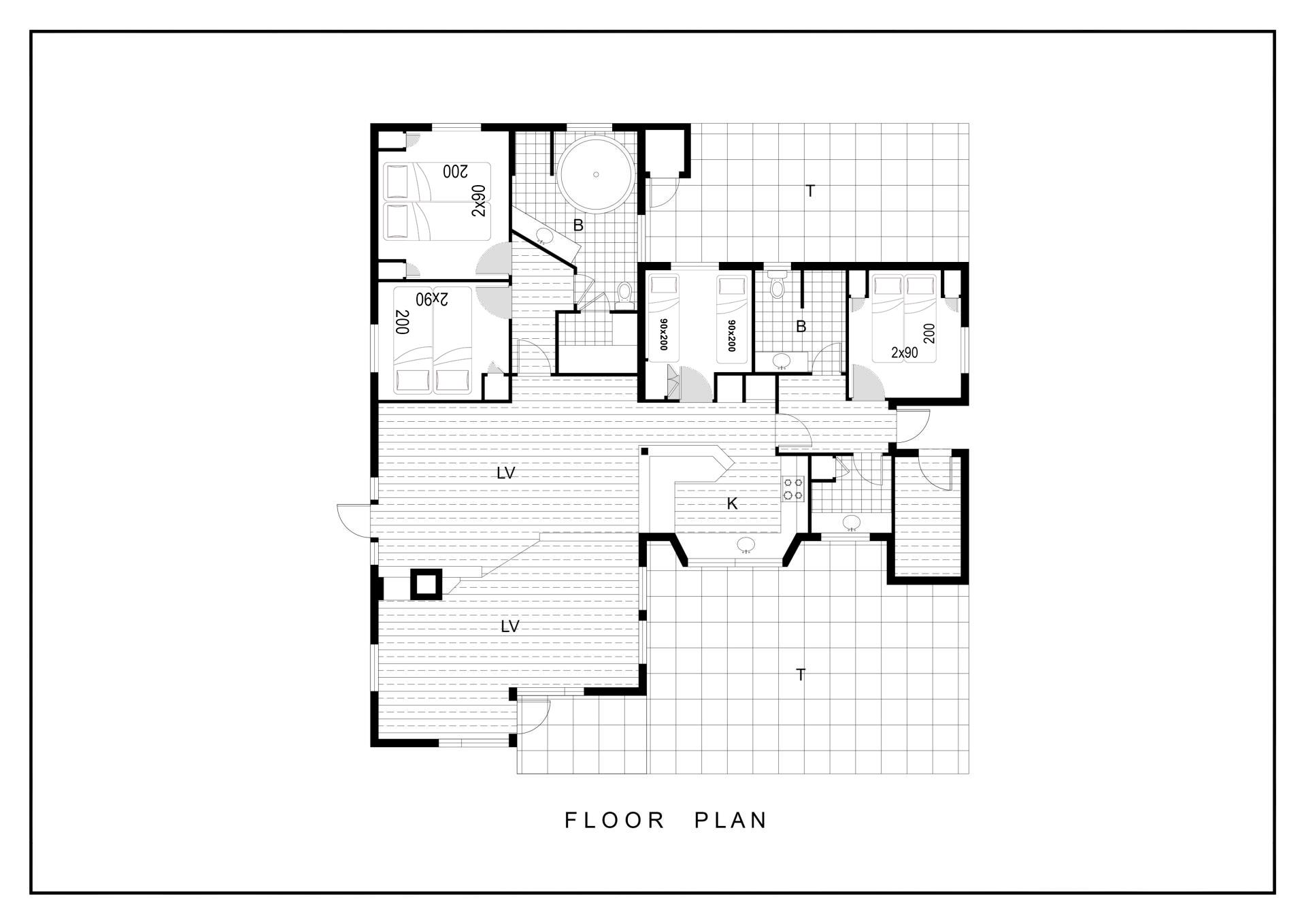 Sengestørrelse: 3 dobbeltsenge med 2 madrasser 90 x 200 cm + 2 enkeltsenge 90 x 200 cm