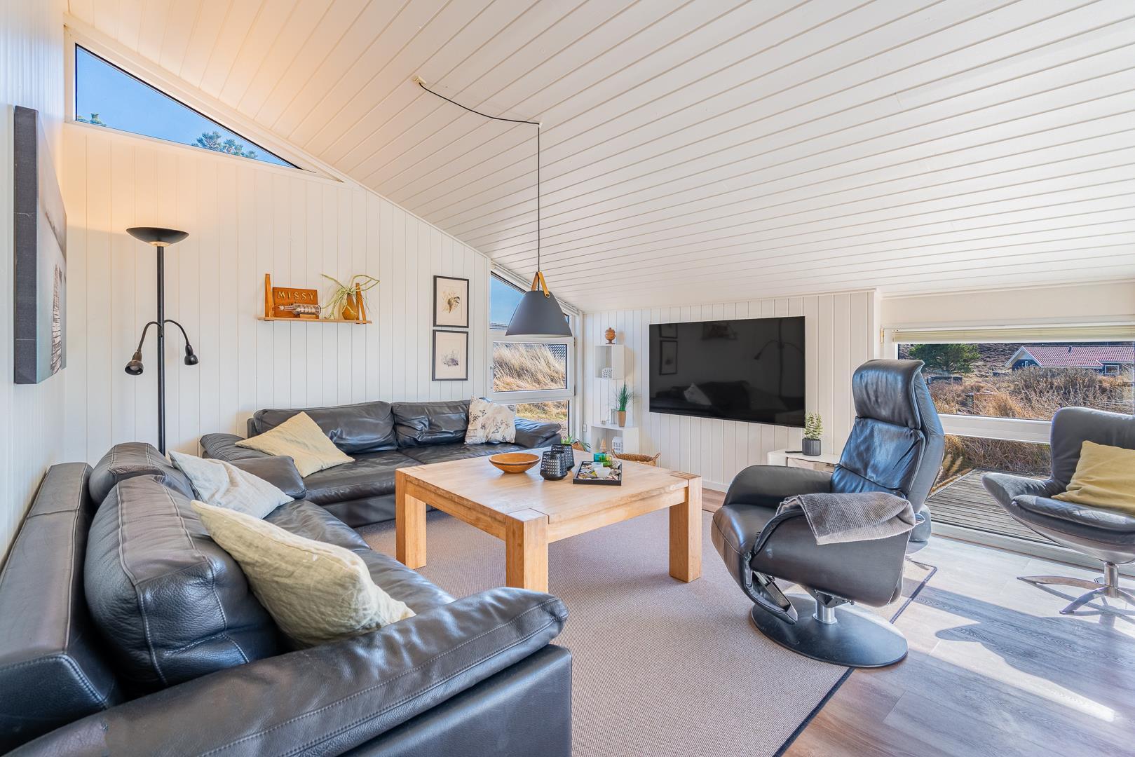 På en klitgrund og for enden af blind vej ligger dette pragtfulde feriehus. Fremhæves kan først og fremmest aktivitetsrum med, pool bord, bordtennis og bordfodbold. Lækkert nyt køkken som er i åben forbindelse med den flot indrettede stue. Huset fremstår overalt lyst, lækkert og stilfuldt indrettet. 4 lyse soverum, samt hems. 2 flotte badeværelser med bruser, i det ene finder I husets spa og sauna. Ugeneret træterrasse. Et super lækkert feriehus hvor rammerne er skabt for en god ferie ved Henne Strand.