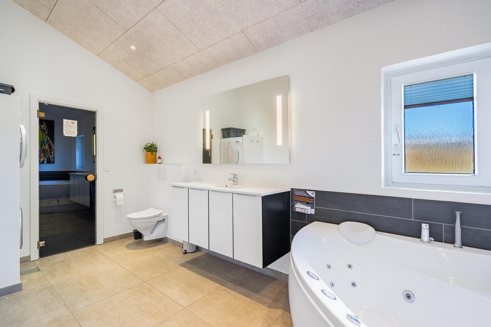 Lyst og stilfuldt feriehus ved Henne Strand med spa, sauna og aktivitetsrum for hele familien.
