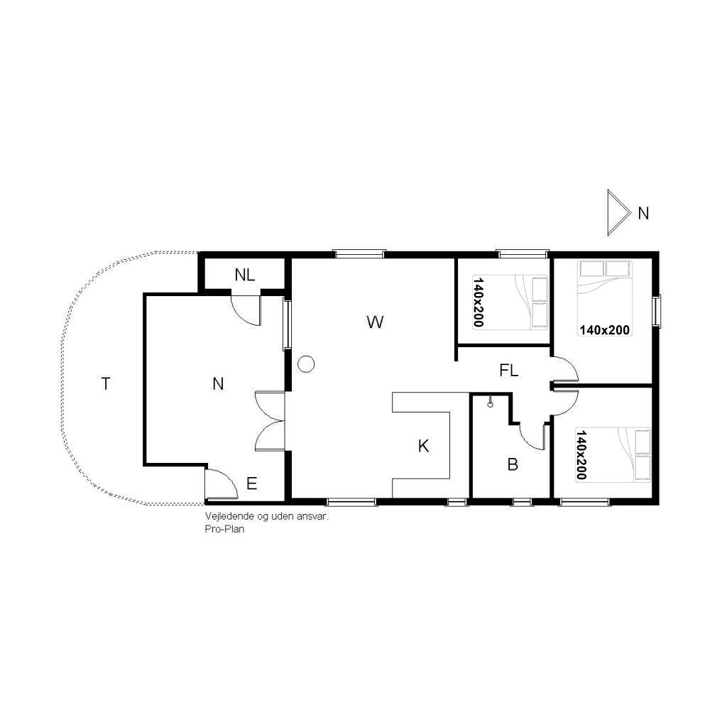 Sengefordeling: 3 dobbeltsenge á 140 x 200 cm
