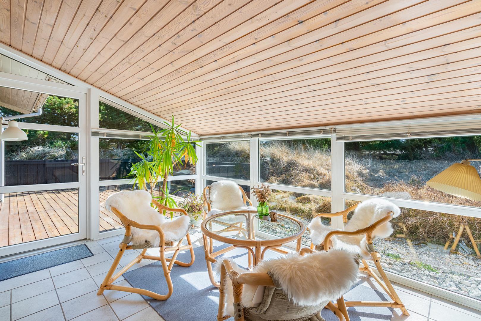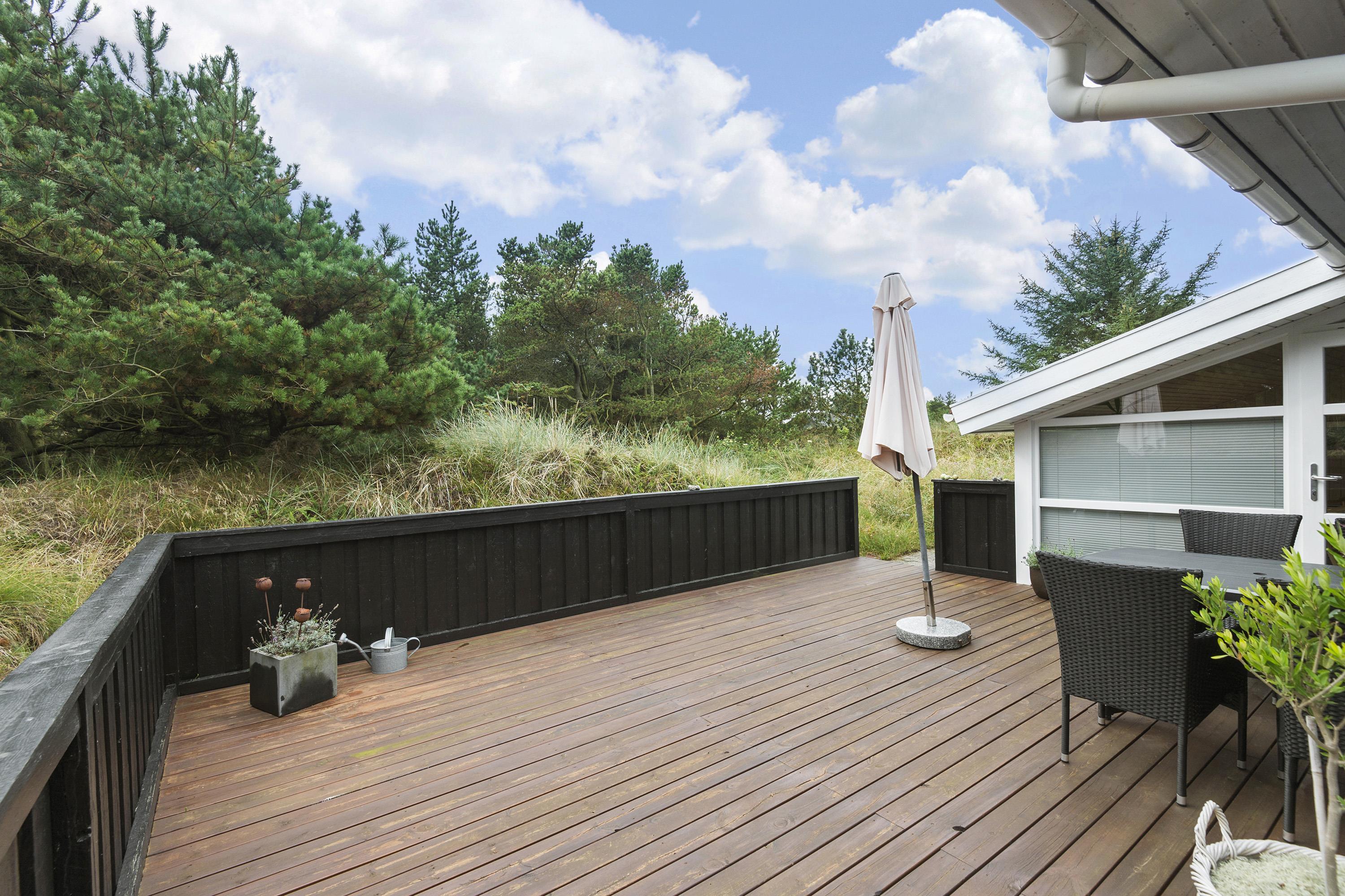 Hyggeligt sommerhus i Henne Strand med stor naturgrund, to terrasser og gåafstand til strand og indkøb.