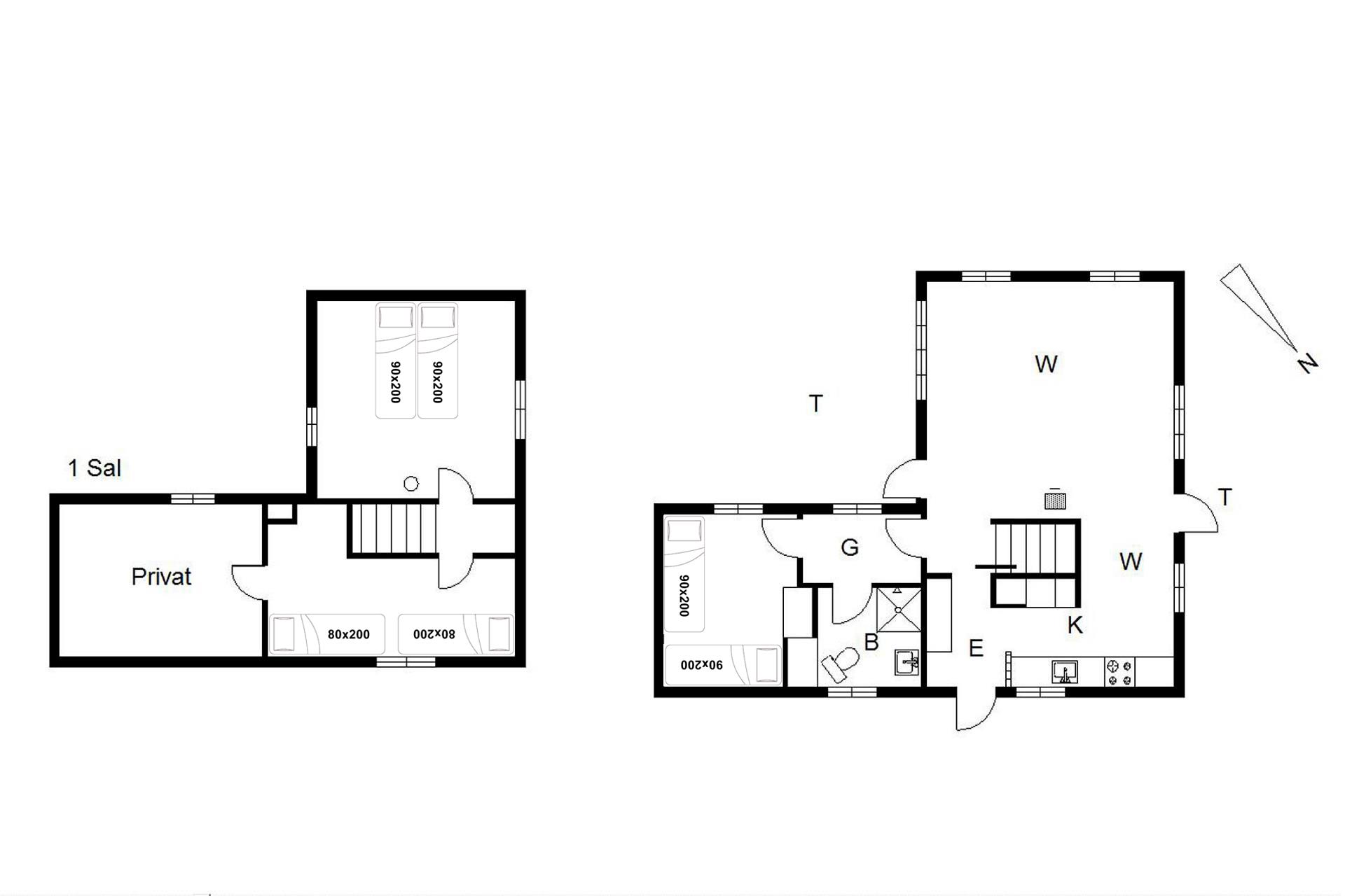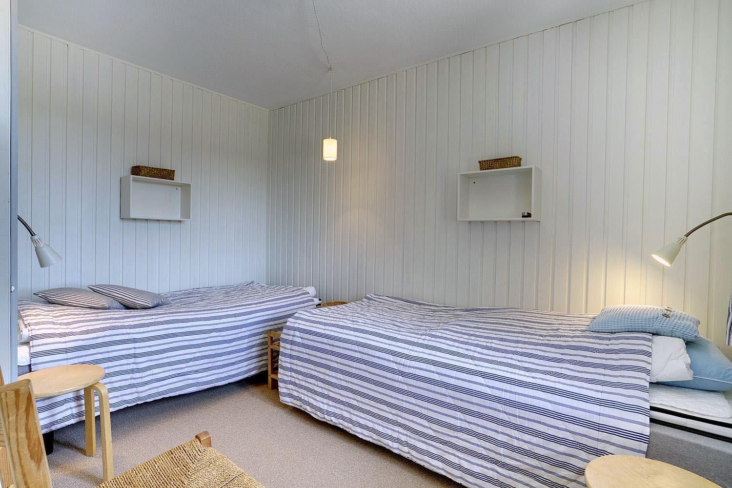 Sengestørrelse: 1 dobbeltseng med 2 madrasser 80 x 200 cm + 2 enkeltsenge 90 x 200 cm + 2 enkeltsenge 80 x 200 cm.