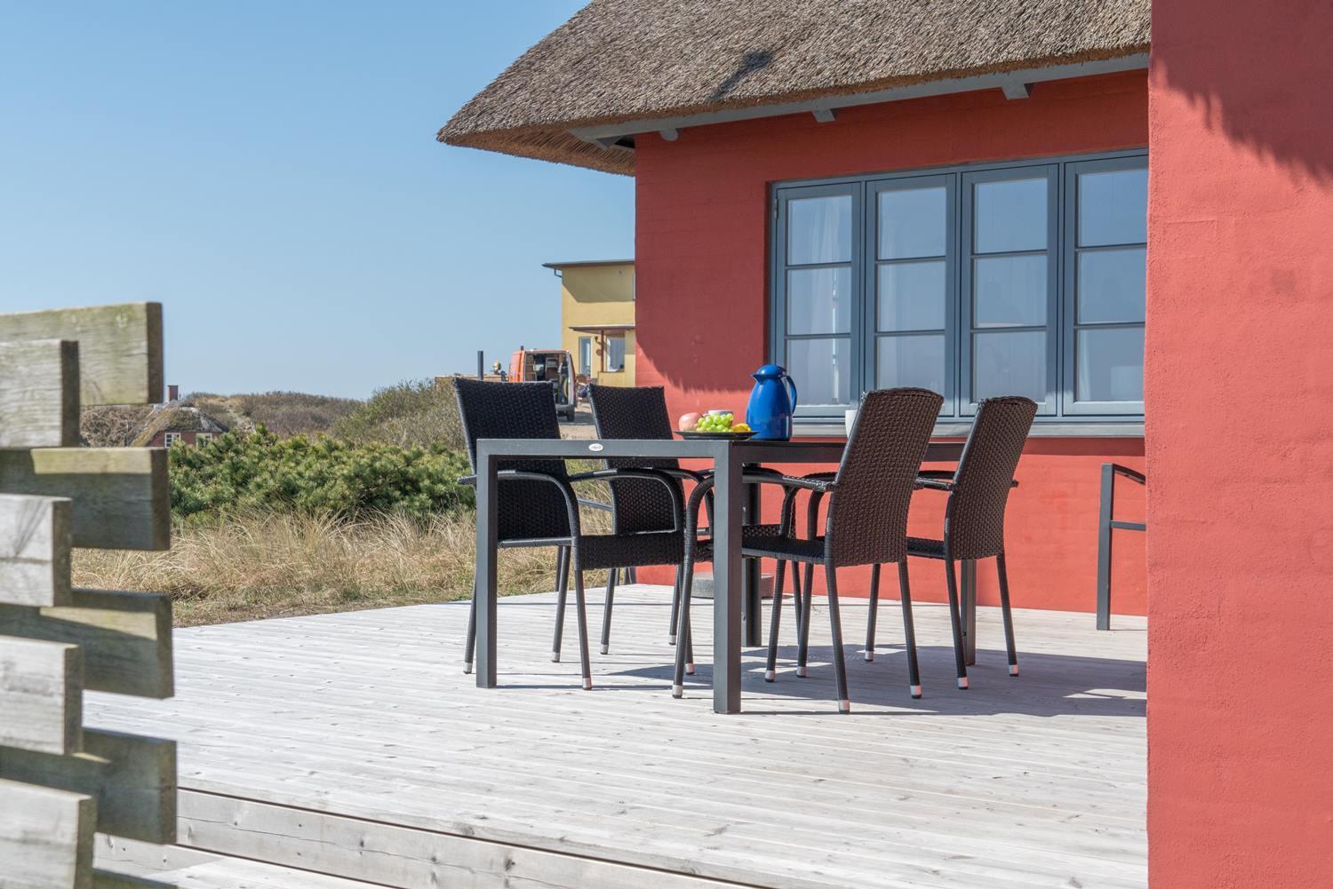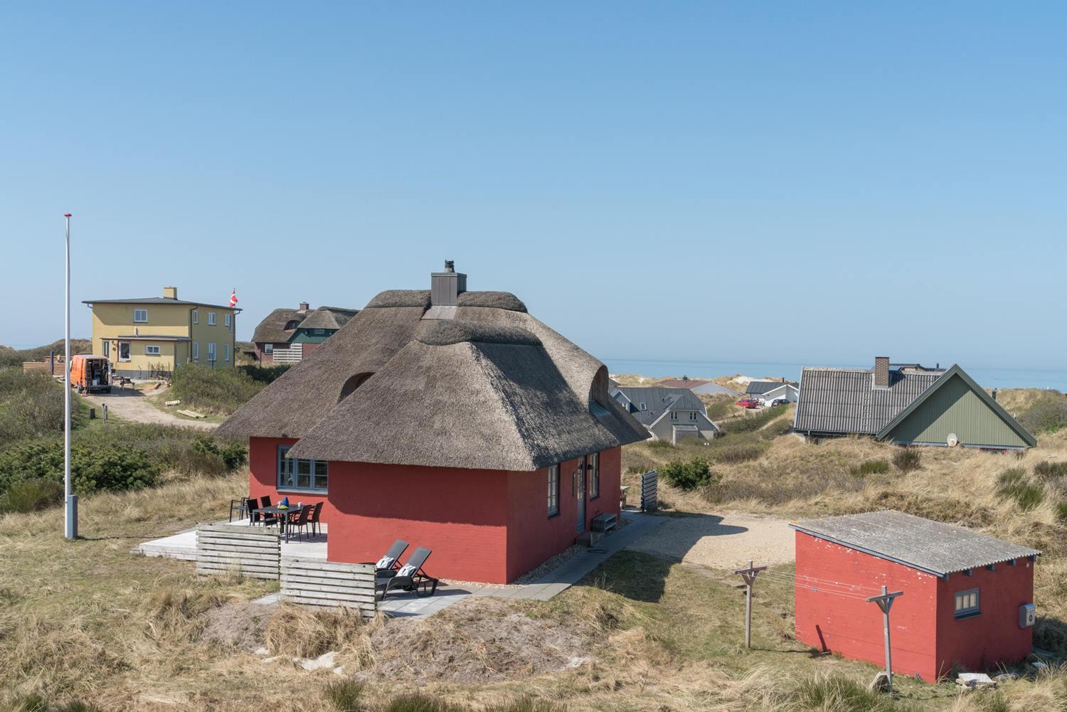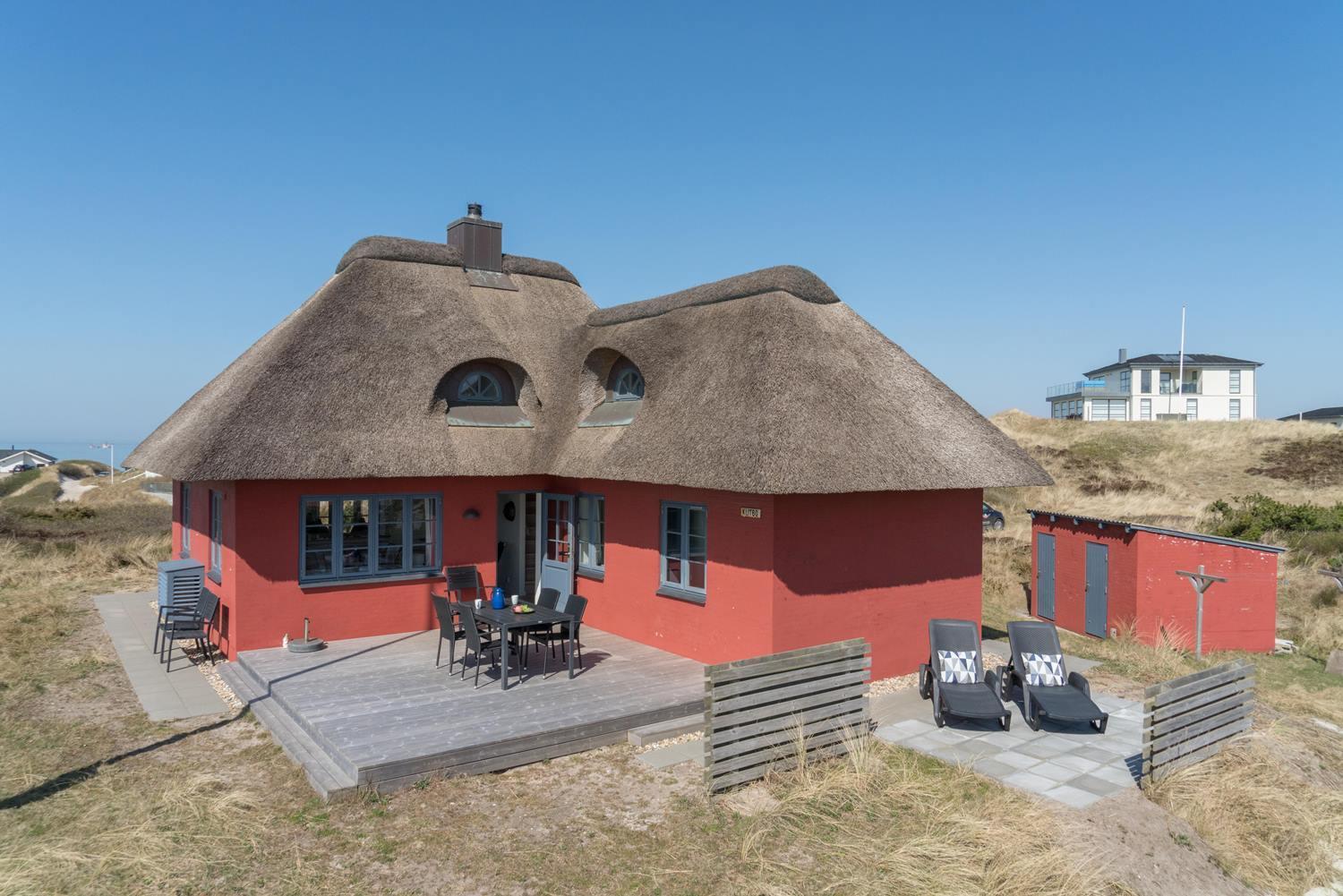 Nyd en stråtækt perle med havudsigt og sydvendt terrasse nær Henne Strand.