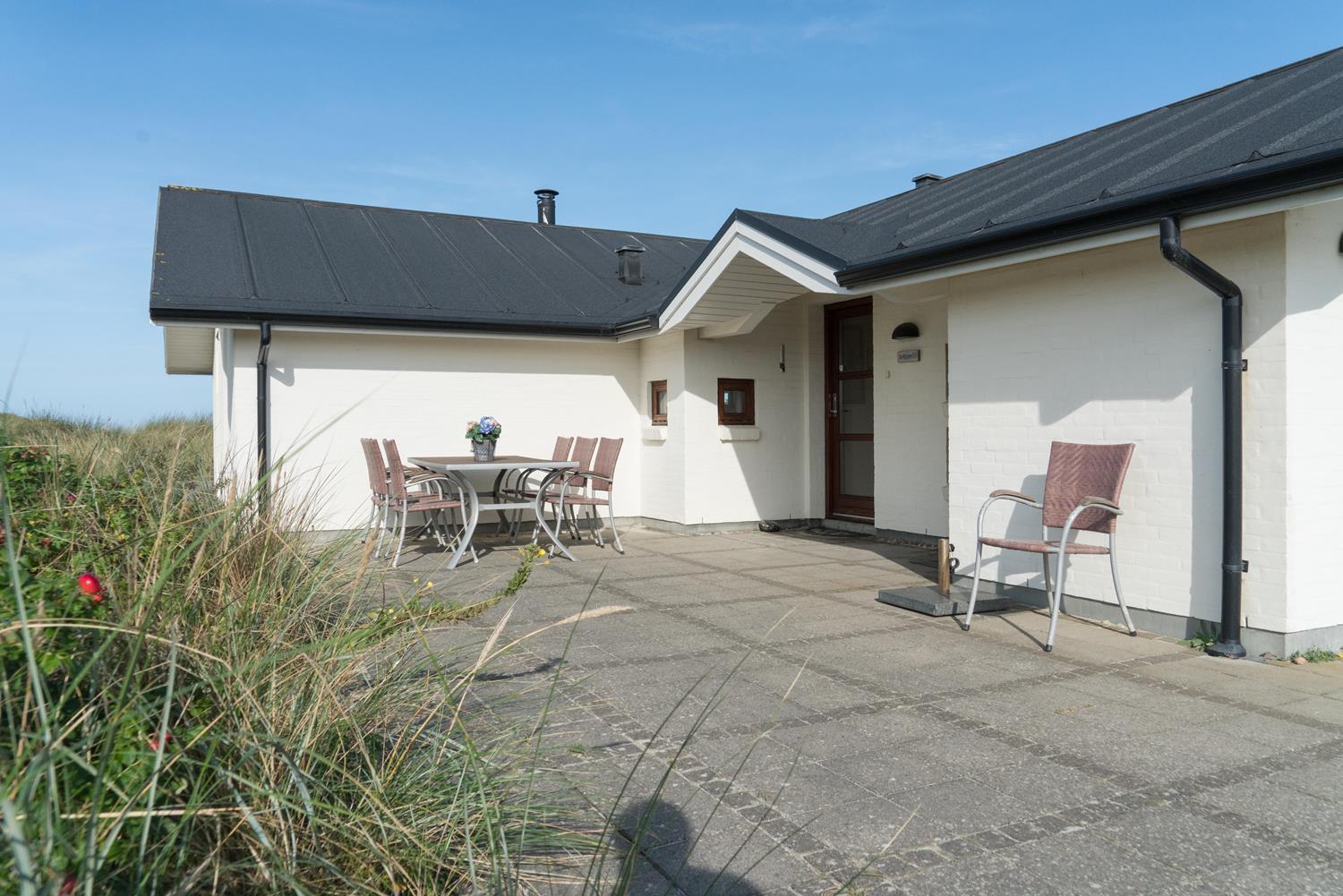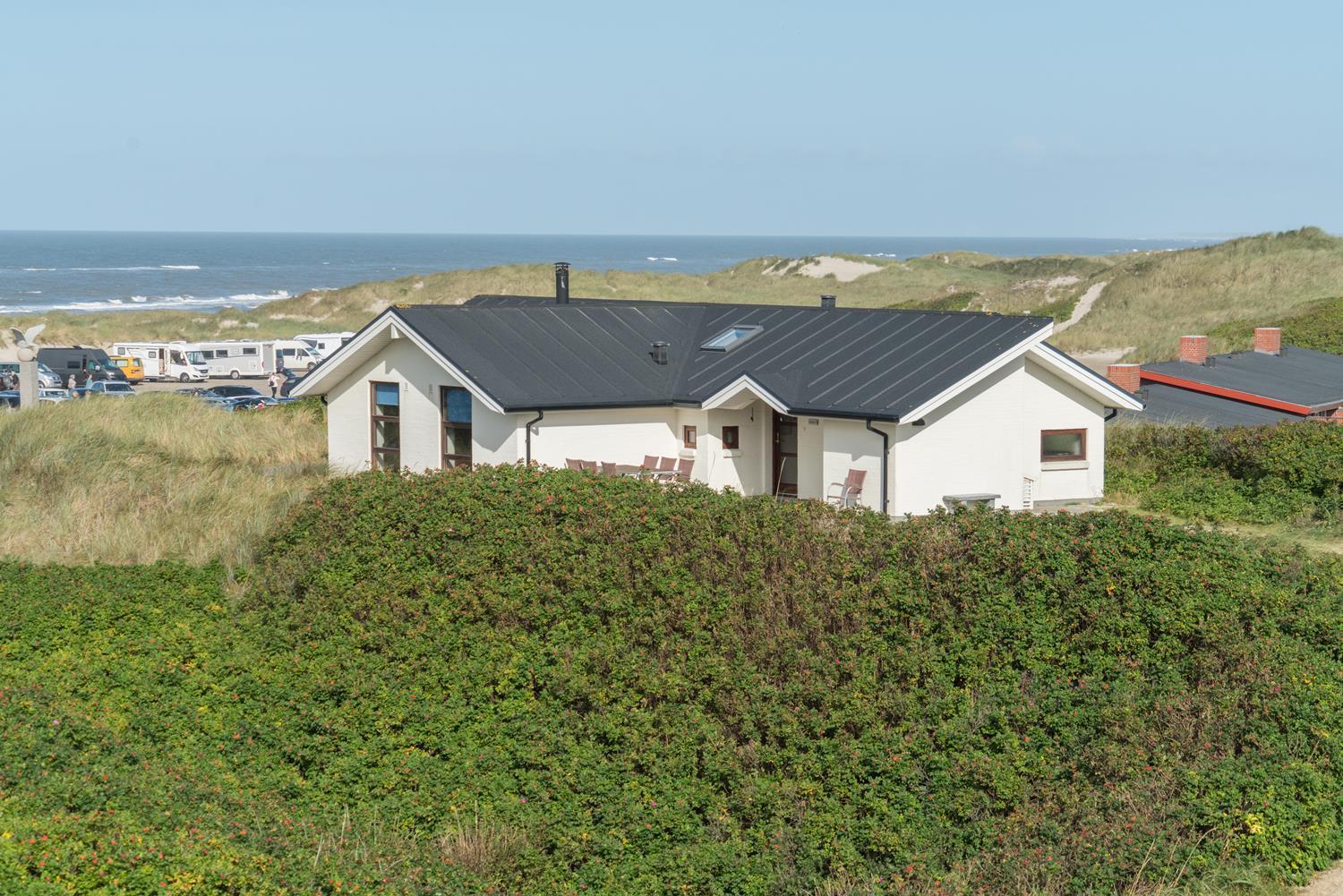 Fantastisk feriehus beliggende på den aller yderste klit med en unik udsigt over havet, uanset om du befinder dig på terrasserne eller i stuen med panoramaudsigt mod vest. Der er 2 badeværelser, hvor af det ene er udstyret med spa og sauna. Prøv at nyde solnedgangen, morgensolen eller udsigten fra de fantastiske terrasser. I dette skønne luksus feriehus er de perfekte rammer tilstede for en god ferie. Gratis ADSL-Internetforbindelse (Lan).