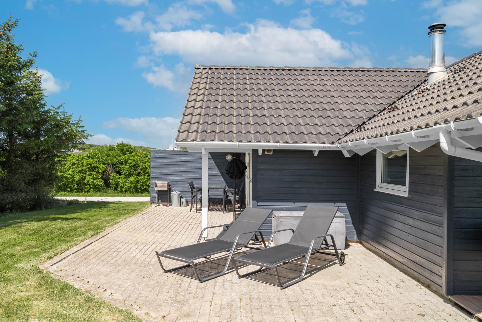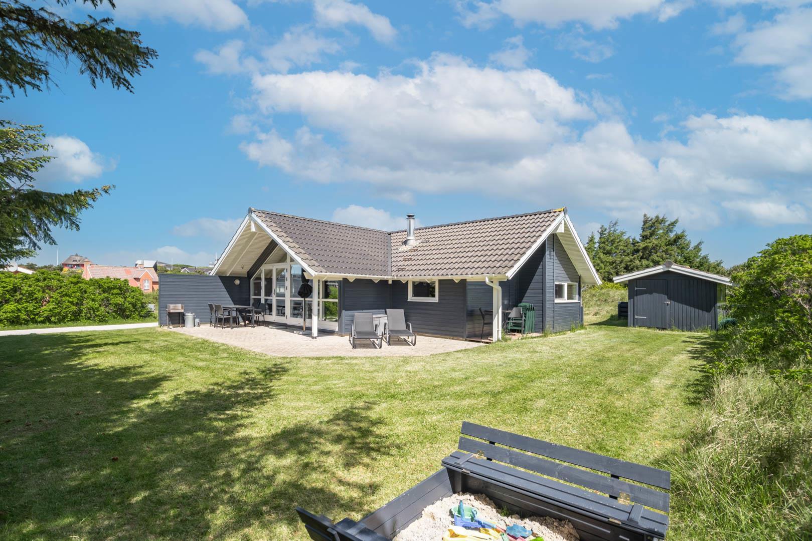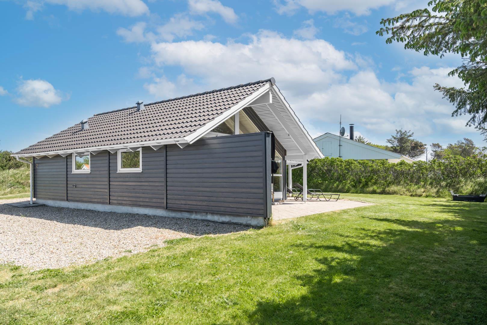 Velbeliggende sommerhus med spa, brændeovn og stor naturgrund tæt på Henne Strand og badestrand.