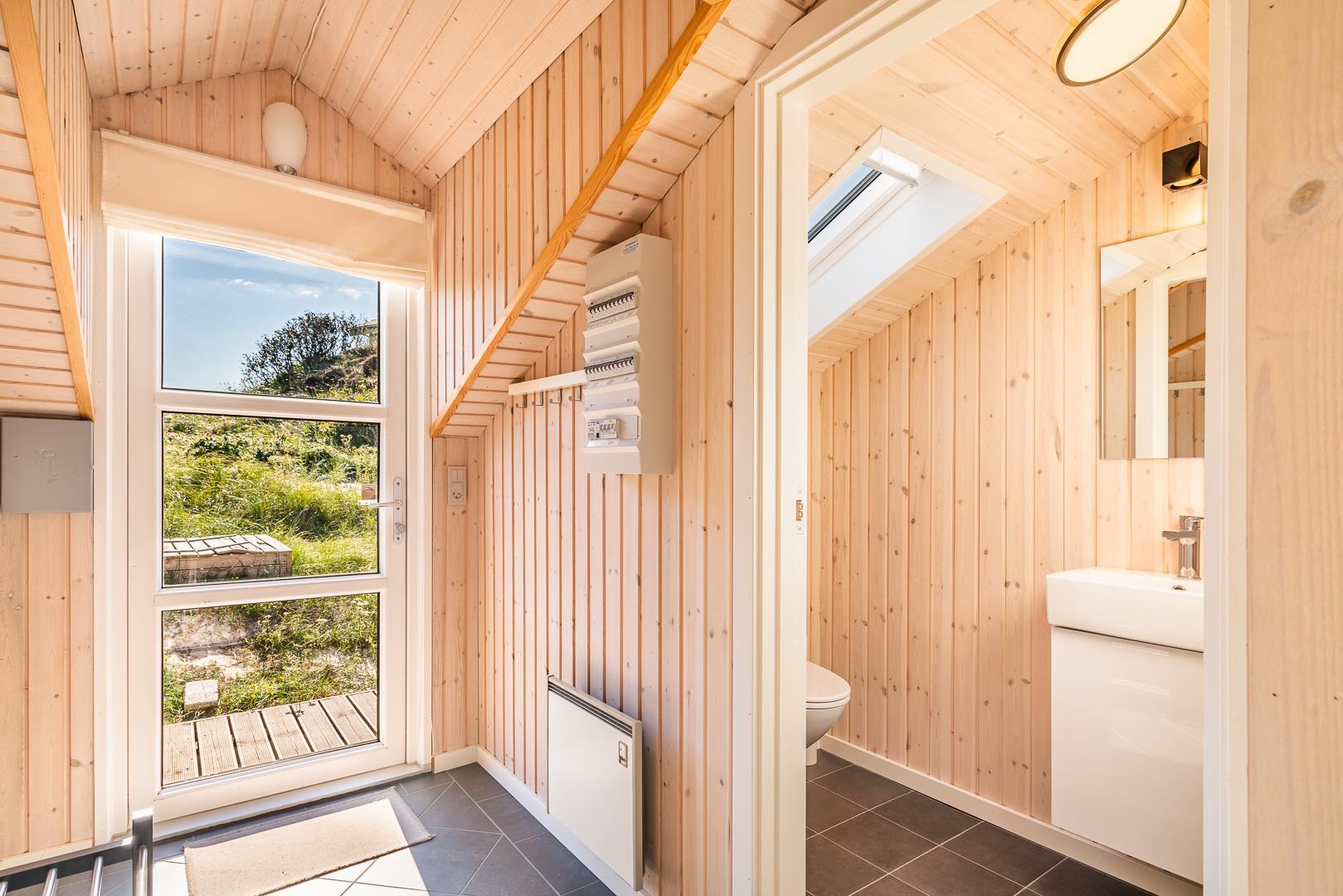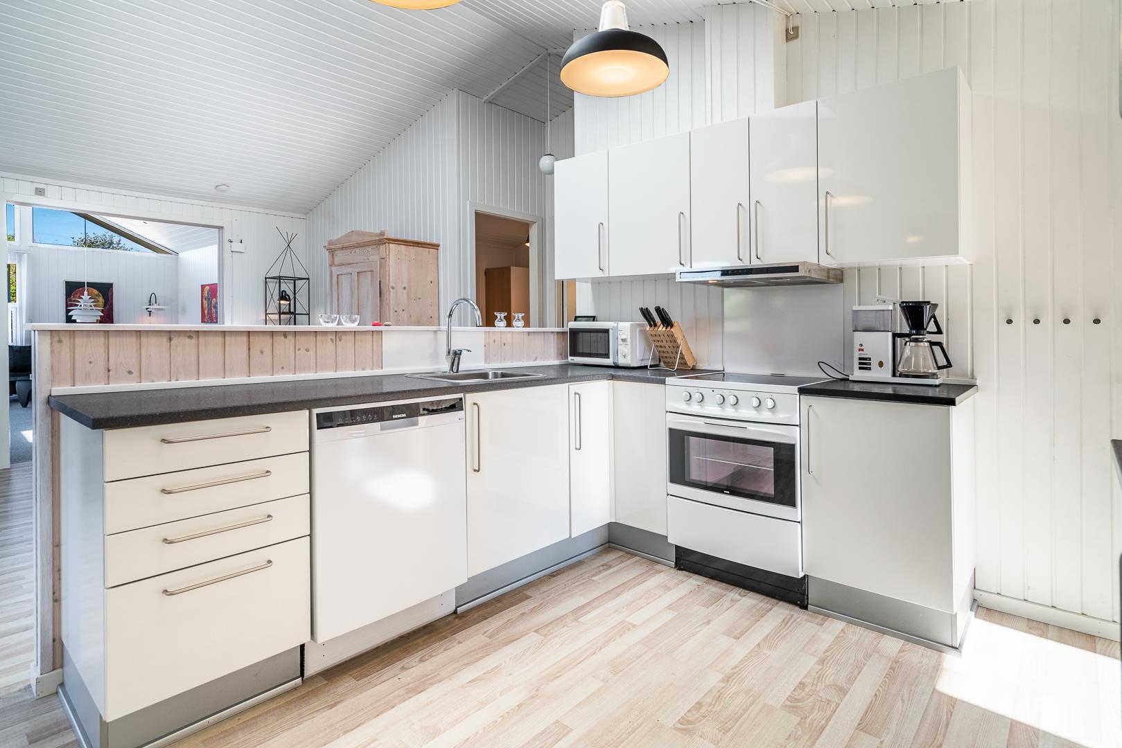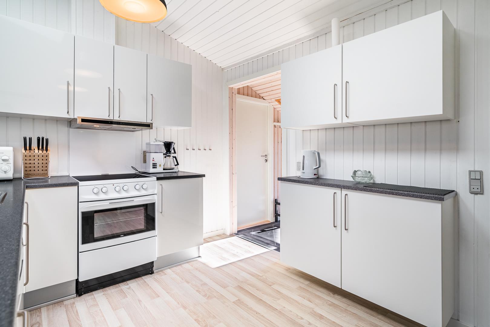 For enden af blind vej, helt for sig selv og i rolige omgivelser, ligger dette renoverede feriehus. Feriehuset fremstår overalt lyst og venligt med nyere køkken/spiseafdeling. Dejligt nyere badeværelse med adgang til sauna, samt ekstra toilet. 3 store soverum alle med dobbeltseng. Rundt op huset er der flere gode og ugenerte terrasser, hvor solen kan nydes i alle døgnets lyse timer.