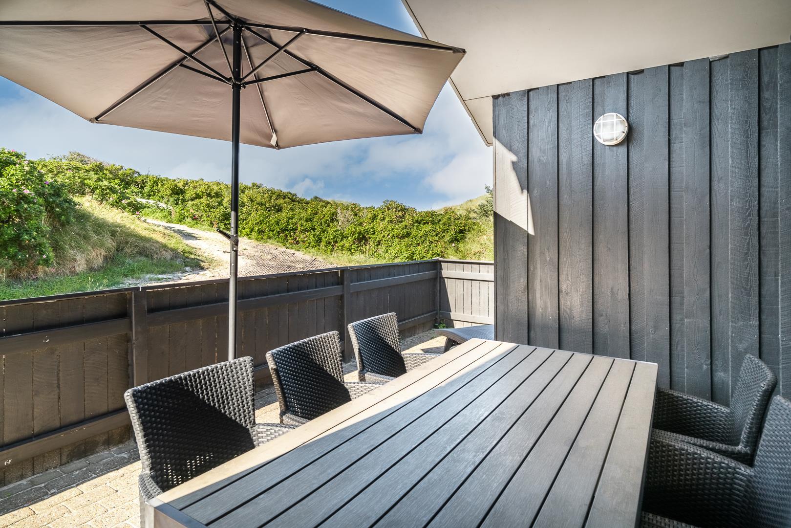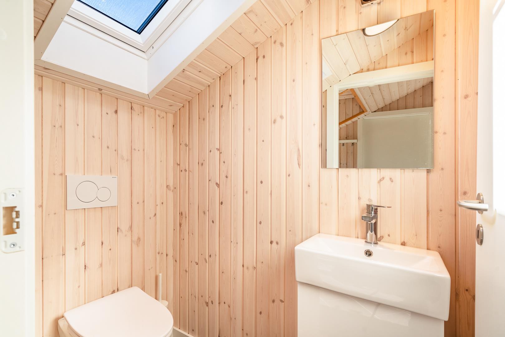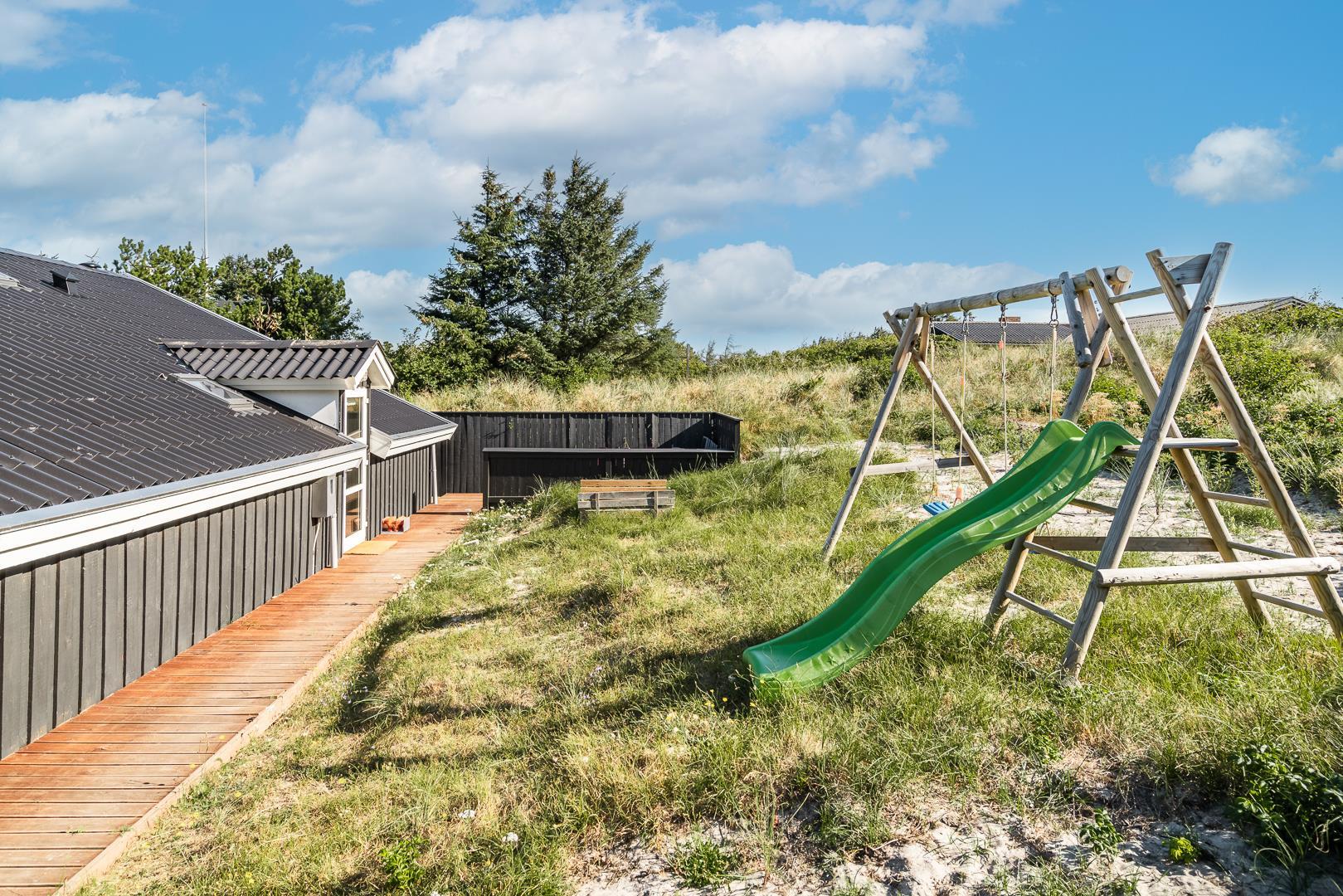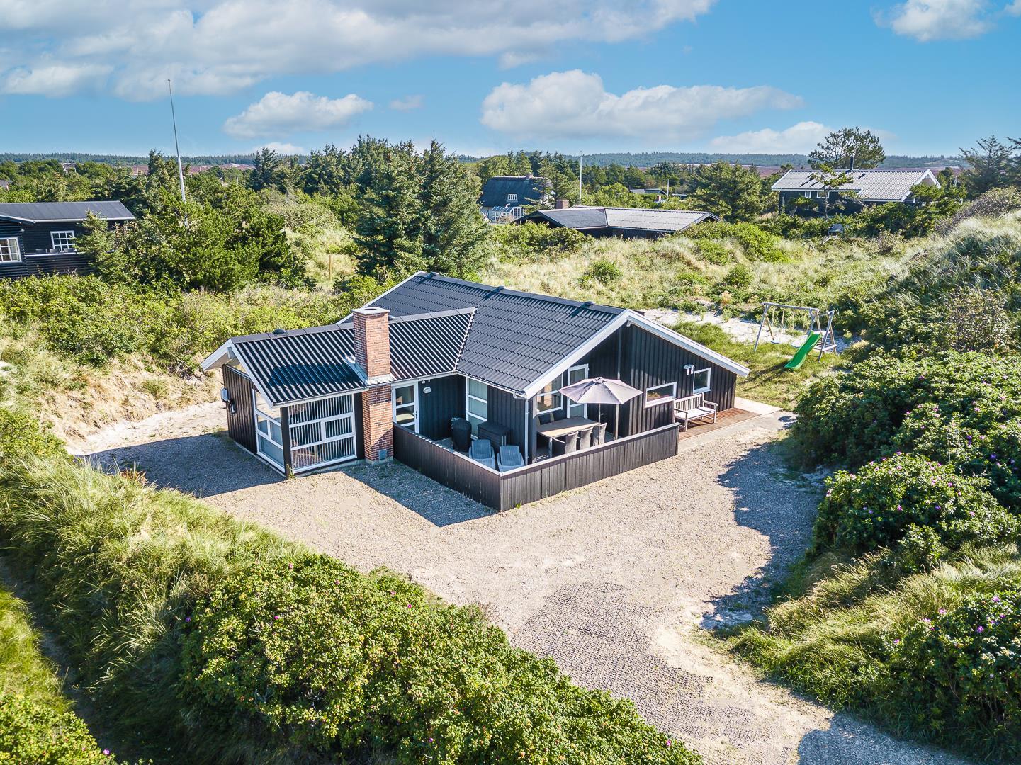 Hyggeligt renoveret feriehus i rolige omgivelser nær Henne Strand med sauna og flere terrasser.