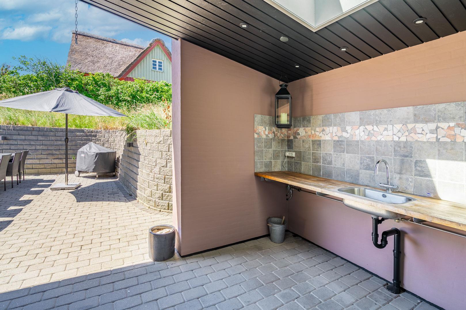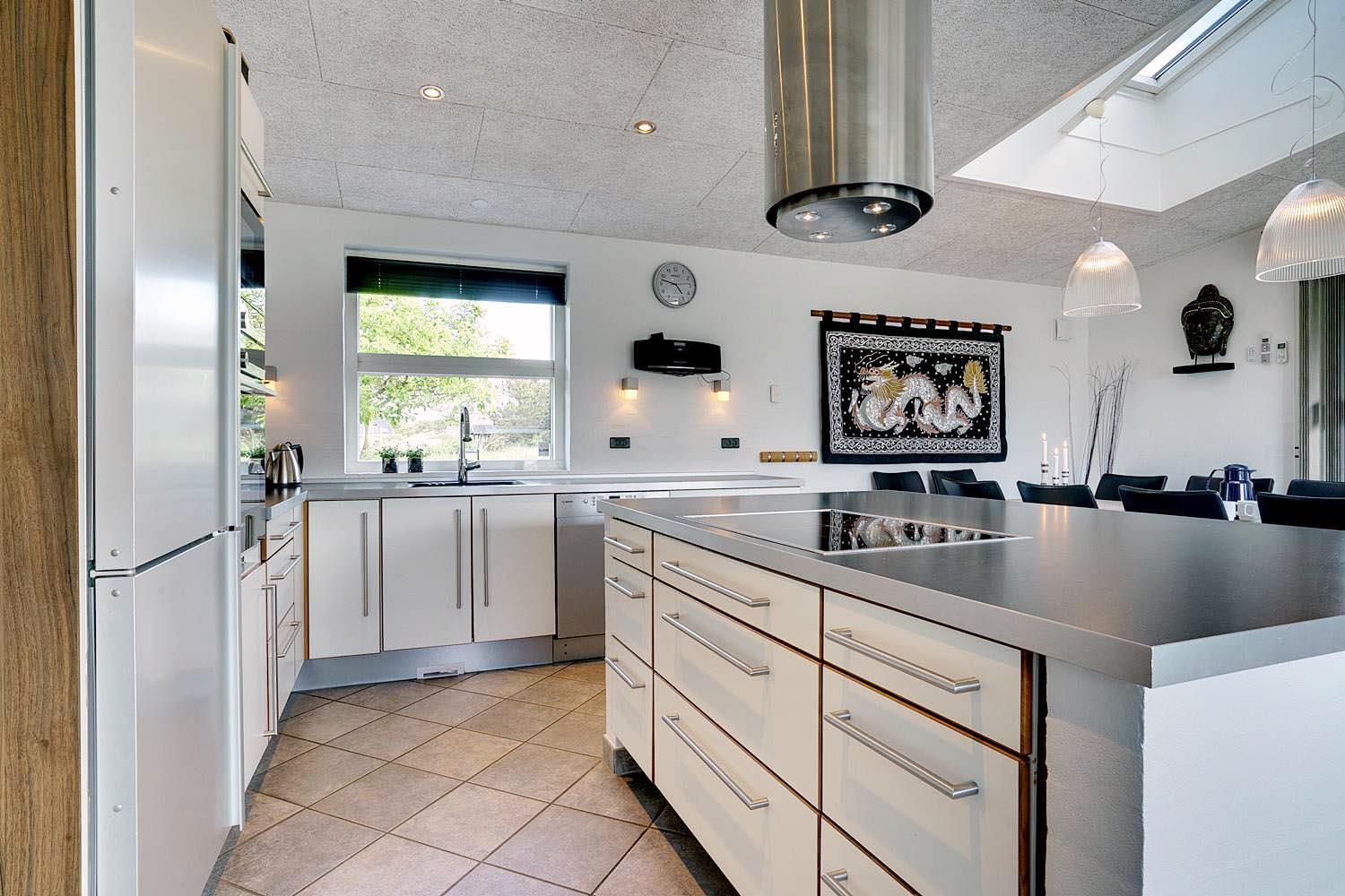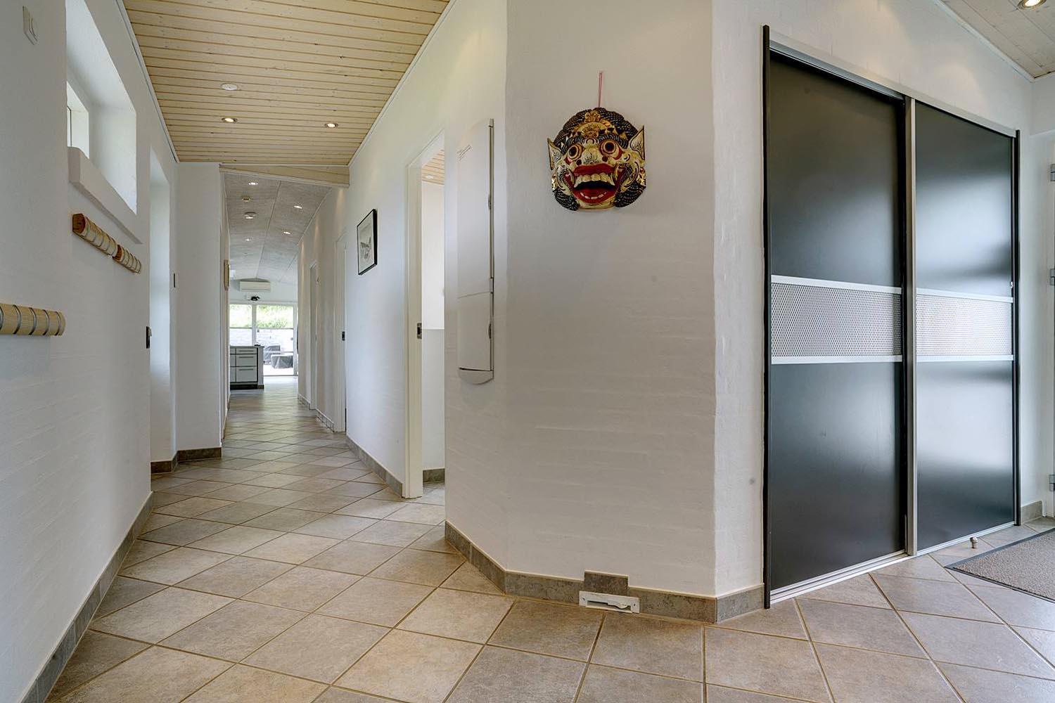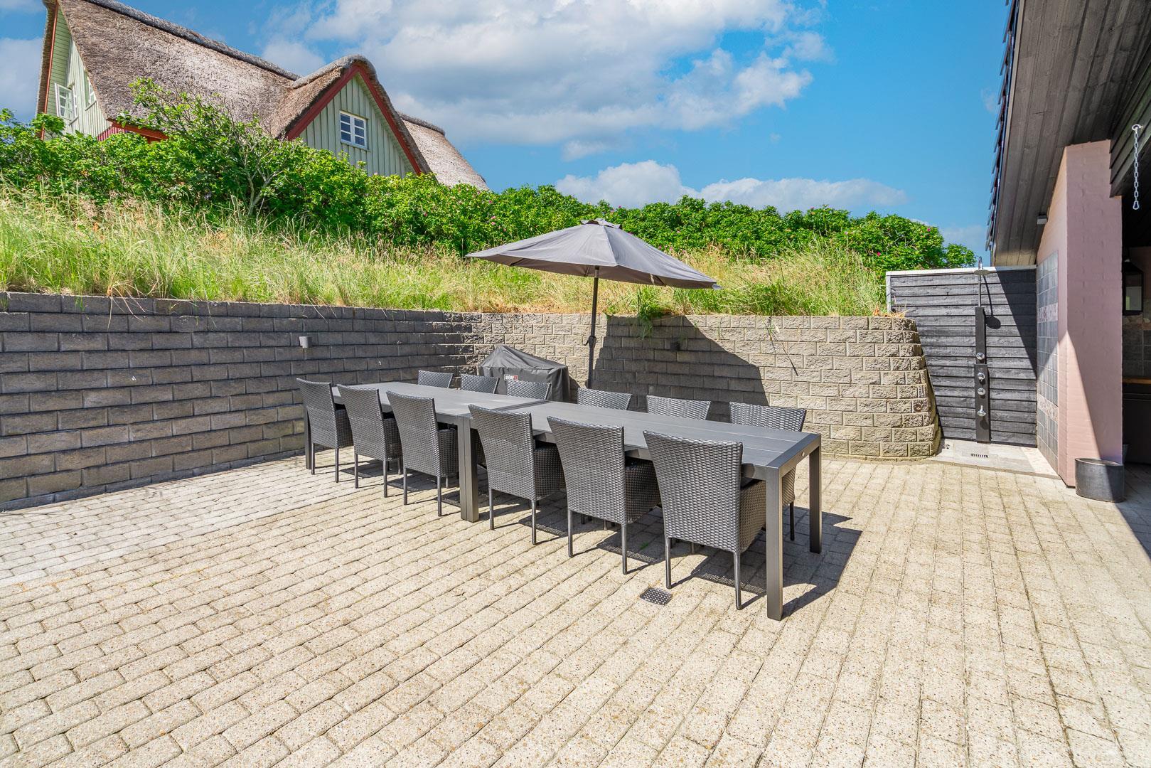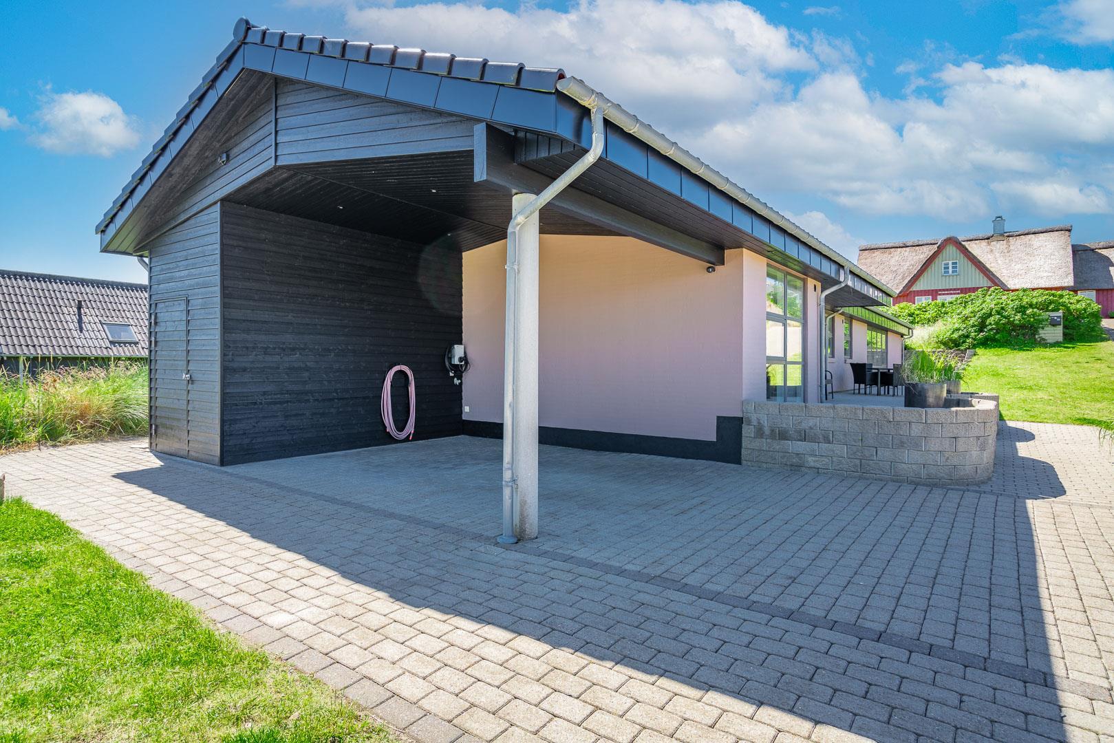 Lækkert luksus feriehus med alt hvad hjertet begære af faciliteter, beliggende på skøn naturgrund helt tæt på Henne strand centrum og få minutters gang til den dejligste sandstrand. Huset indeholder stort lækkert, veludstyret køkken & stue med stort 65" fladskærms Smart TV, SONOS Sound System Play-5 til afspilning deres egen musik via tablet eller mobil. Herudover 5 soveværelser med dobbeltsenge, faste skabe og alle værelser med 43" fladskærms TV. Huset er velmøbleret og overalt belagt med Italienske klinker med energibesparende gulvvarme fra jordvarmeanlæg, lofter er ført til kip overalt i huset. 2 lækre badeværelser, 1 med wc, spa og bruser samt 1 med wc, bruser og direkte adgang til sauna, begge badeværelser og opholdsrum er med indbygget elektriske vinduer i taget der giver et dejligt naturligt lysindfald. Flere lækre og læfulde terrasser omkring huset, 1 stor overdækket og total ugeneret terrasse ud fra stuen af huset hvor man kan nyde solen i liggestole, bruse sig under udendørs bruser med V+K vand, forberede en hyggelig grillaften. Eller tag et spil petanque på egen bane eller et spil dart i hyggelige omgivelser på terrassen, legehjørne med stor sandkasse. Et superlækkert luksushus hvor rammerne er til stede for en rigtig god ferie med familien - hele året.