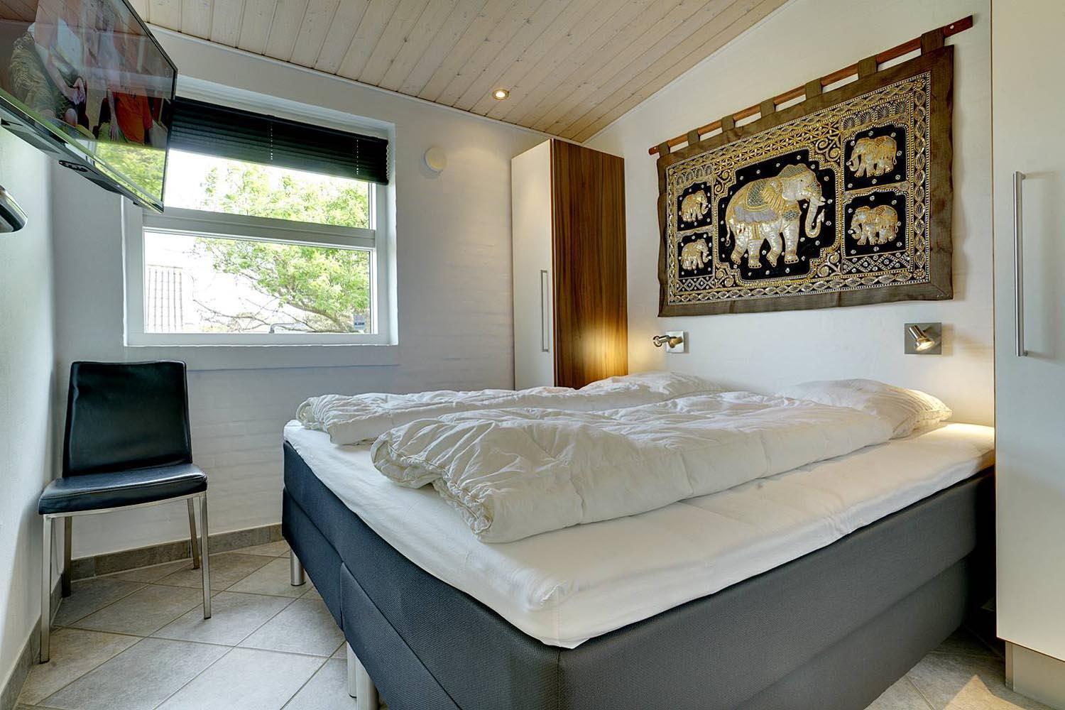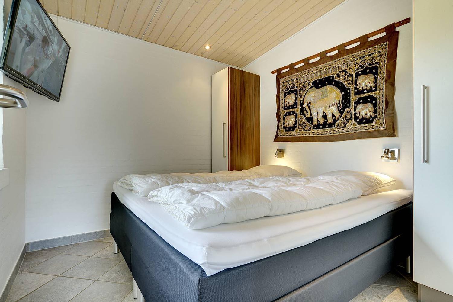 Sengestørrelse: 4 dobbeltsenge 180 x 200 cm + 1 dobbeltseng 140 x 200 cm.