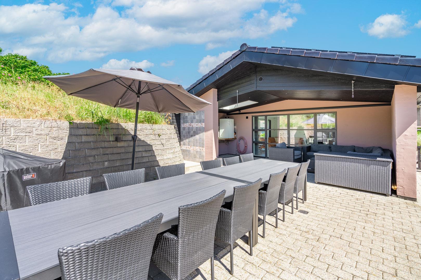 Pragtfuld feriehus til 10 personer tæt på byen og med udebruser