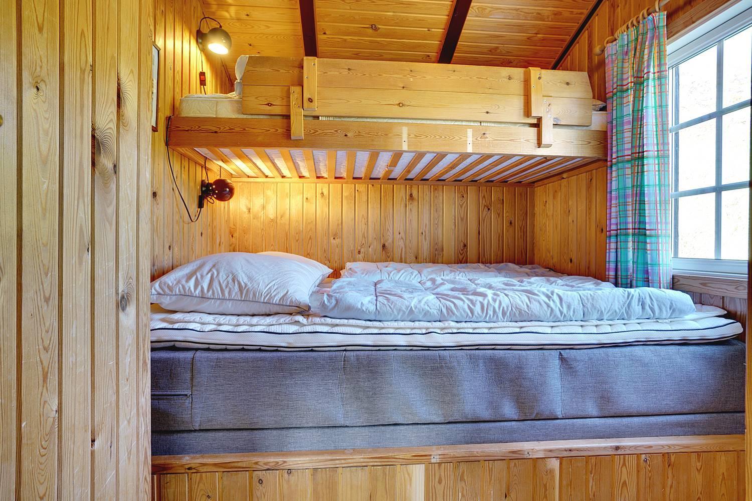 Sengestørrelser: 1 dobbeltseng med 2 madrasser 80 x 200 cm + 1 dobbeltseng 140 x 200 cm + 1 køjeseng med øverste køje på 80 x 200 cm og nederste køje på 140 x 200 cm.