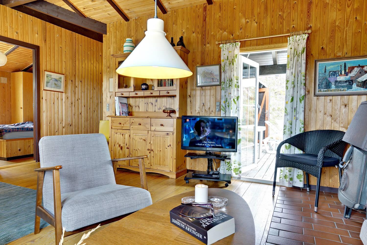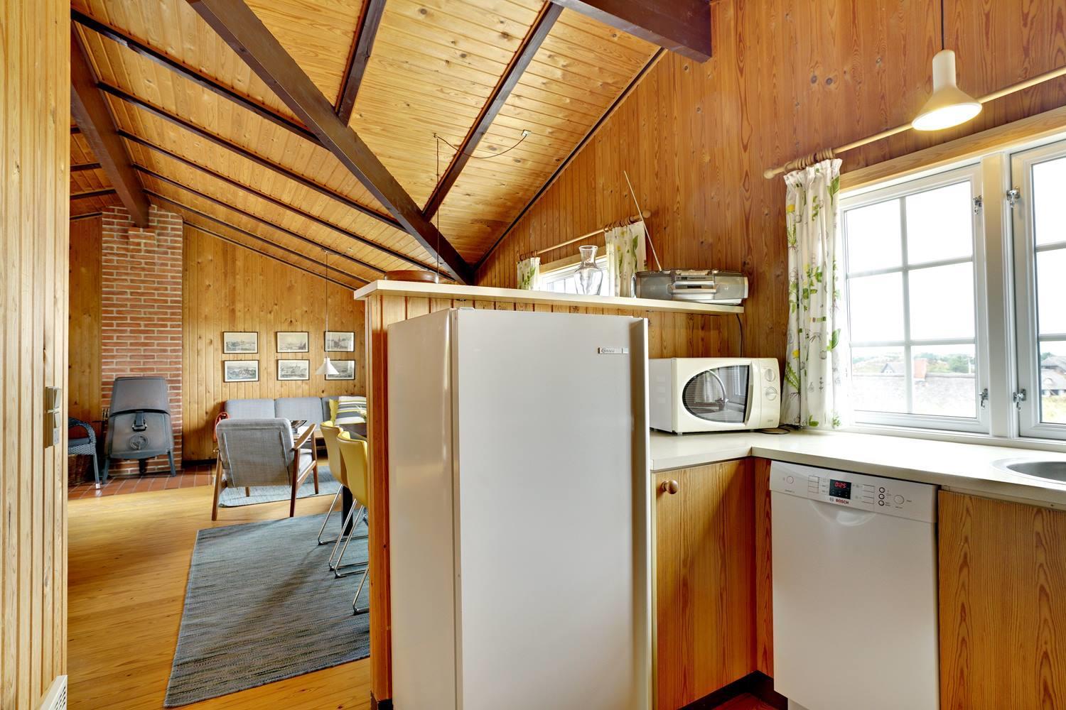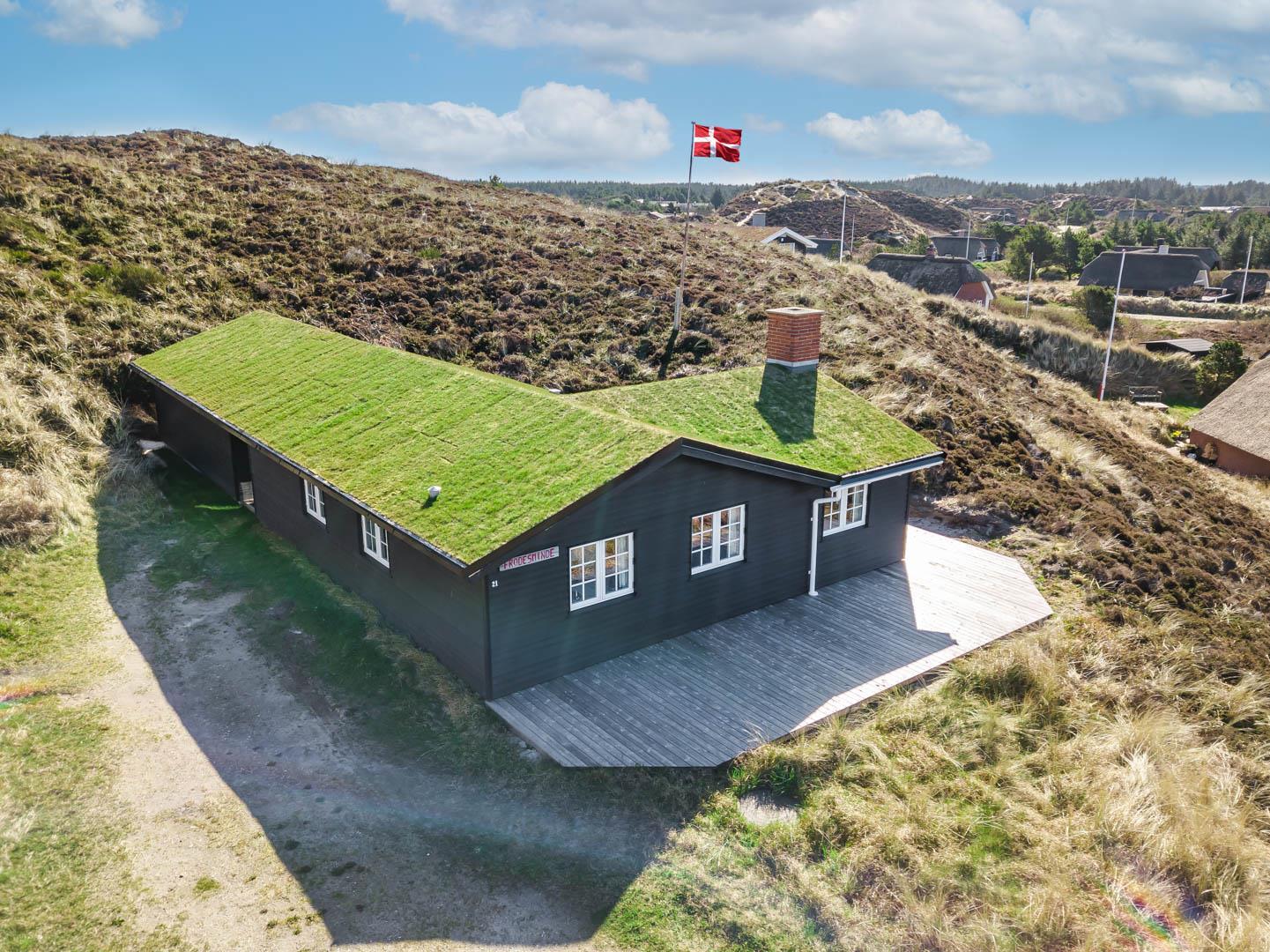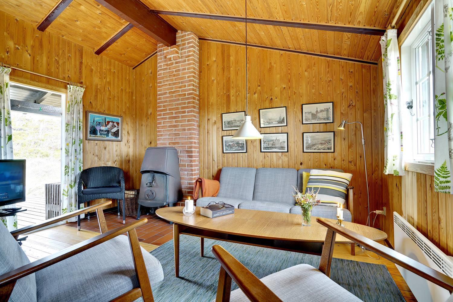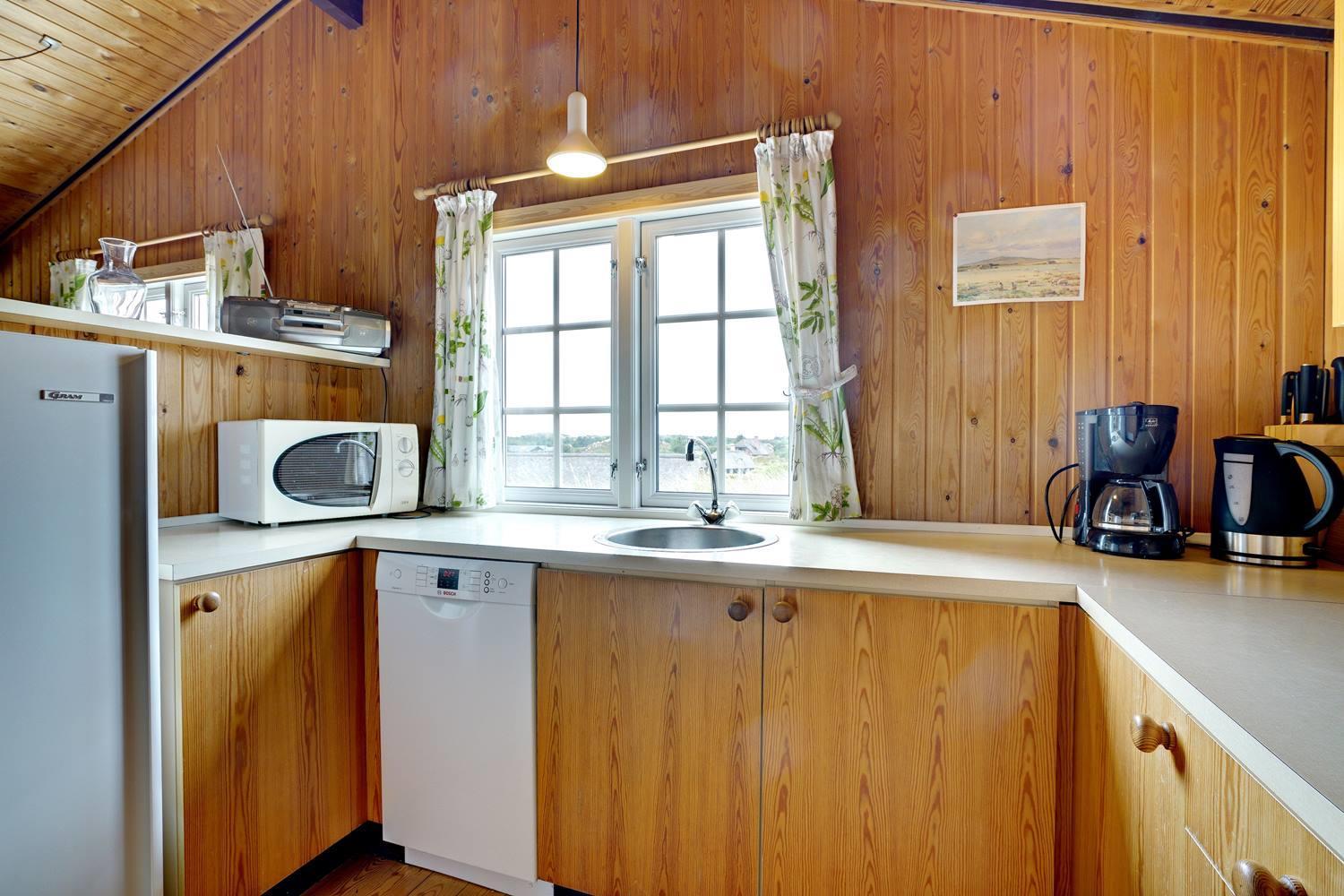 Helt unikt og beliggende for sig selv på en klittop med en pragtfuld udsigt over området, ligger dette hyggelige og velplejede feriehus. Huset er pænt møbleret og har trægulve i alle rum. Køkkenet er kombineret med stuen med brændeovn. Badeværelse med gulvvarme og med adgang til sauna. Et rigtig super hyggeligt beliggende feriehus på en større naturgrund.