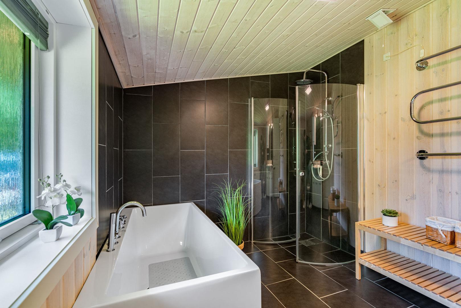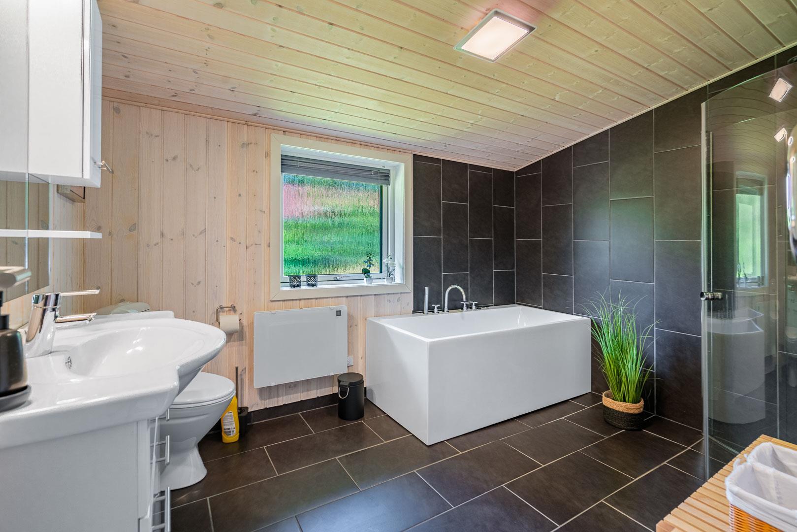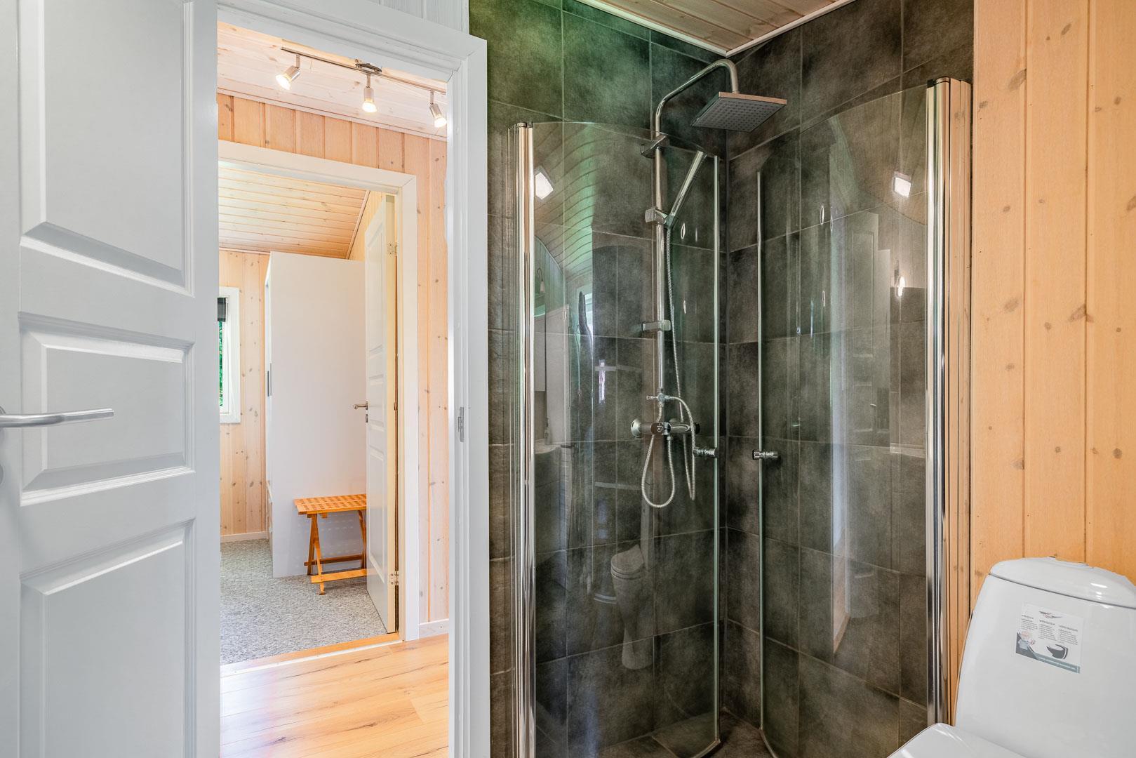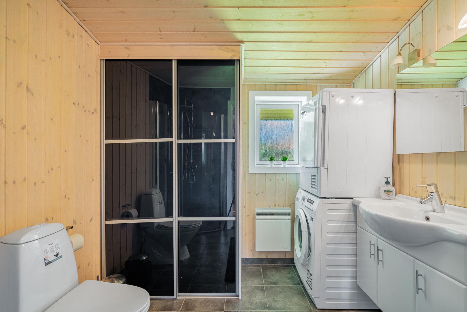 På en ugeneret og børnevenlig naturgrund omkranset af træer ligger dette hyggelige og lyst indrettede feriehus. Til huset hører stor, sydvendt, overdækket terrasse samt 2 åbne terrasser. Stor stue med dejligt lysindfald. 2 badeværelser med bruser og i det ene også badekar. Stort, veludstyret køkken/alrum. komfur med keramiske kogeplader. Gratis internetforbindelse . 3 soverum med dobbeltsenge. Barneseng, høj barnestol, gynge og sandkasse til børnene. Ingen husdyr tilladt.