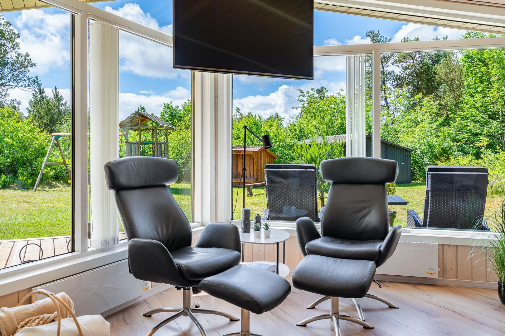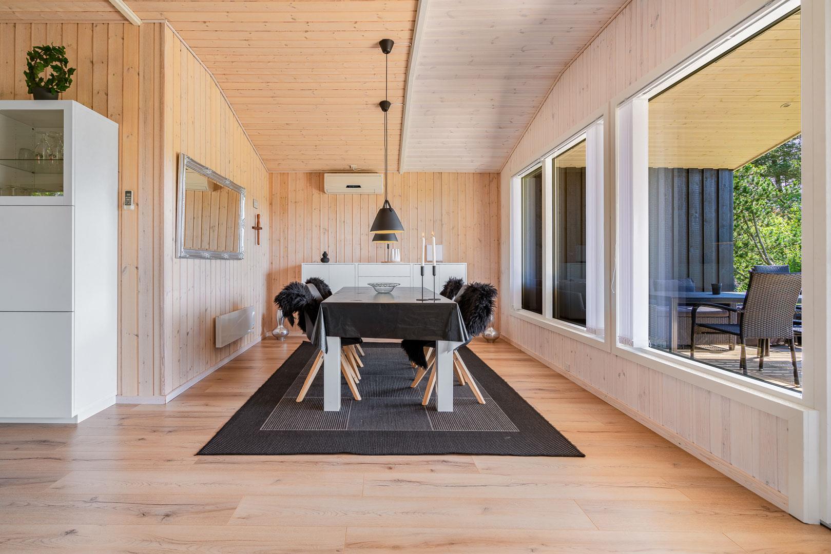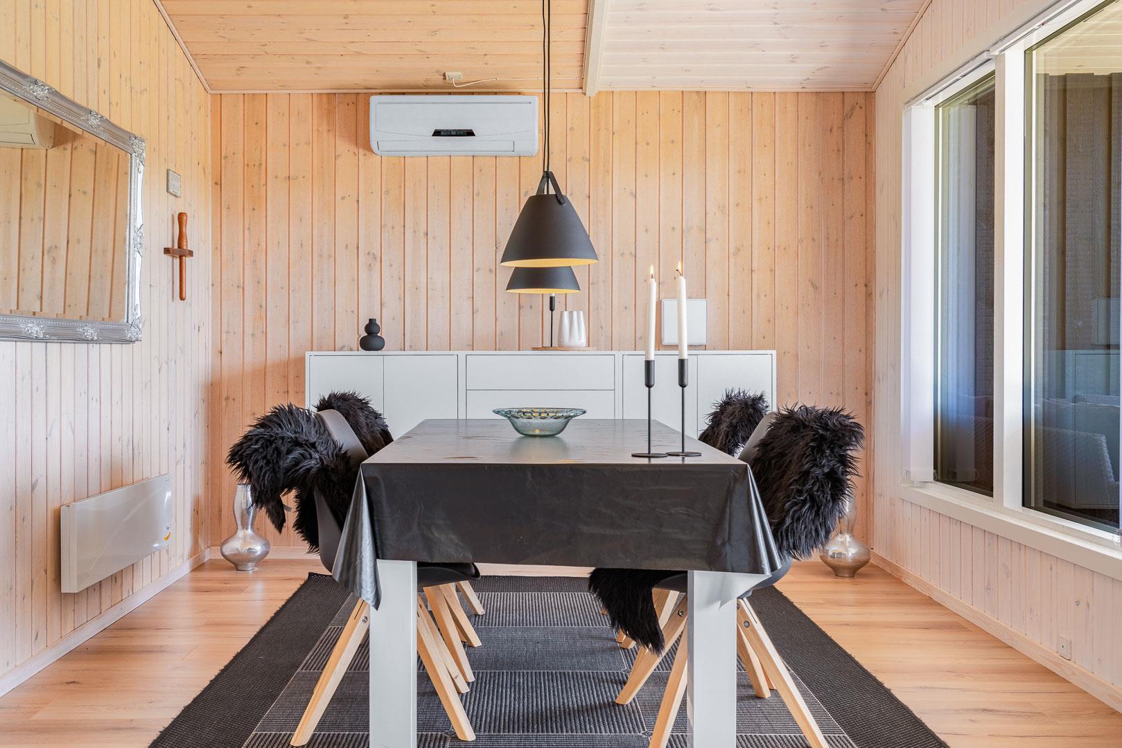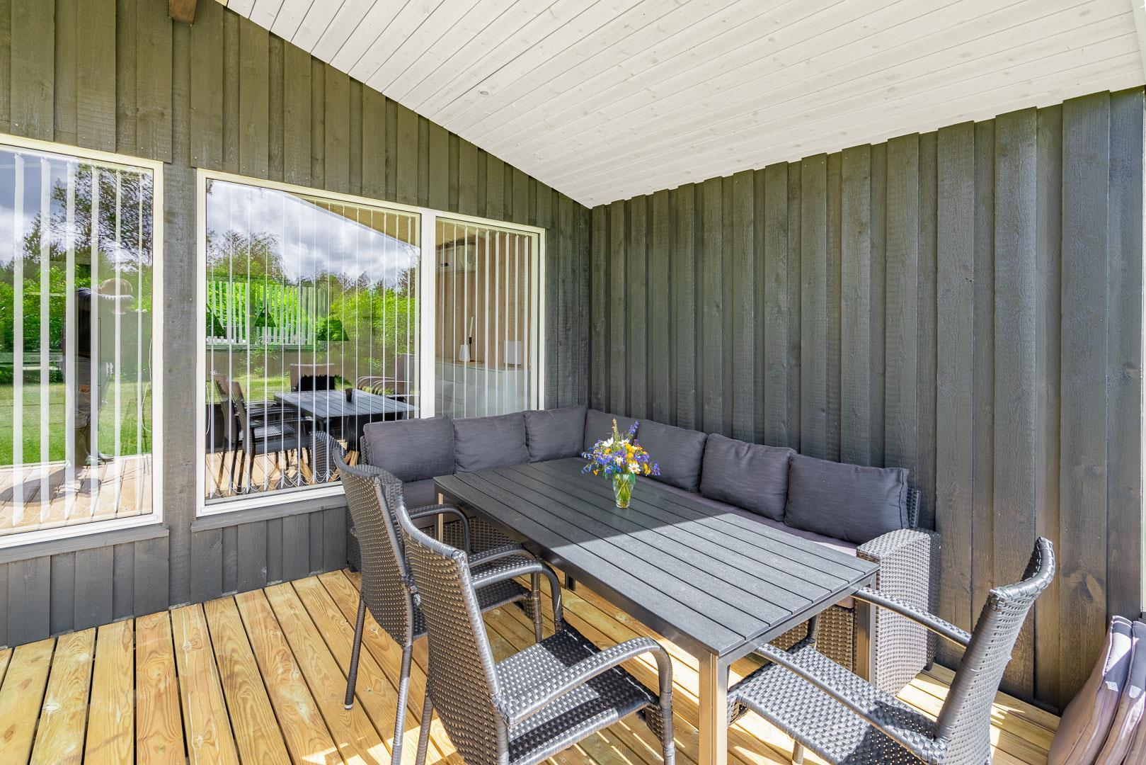 Hyggeligt feriehus i Henne Strand med stor overdækket terrasse, børnevenlige faciliteter og moderne køkken.
