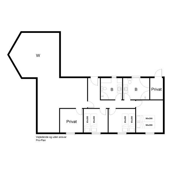 Sengestørrelse: 2 dobbeltsenge med 2 madrasser 85 x 200 cm + 1 dobbeltseng med 2 madrasser 90 x 200 cm.