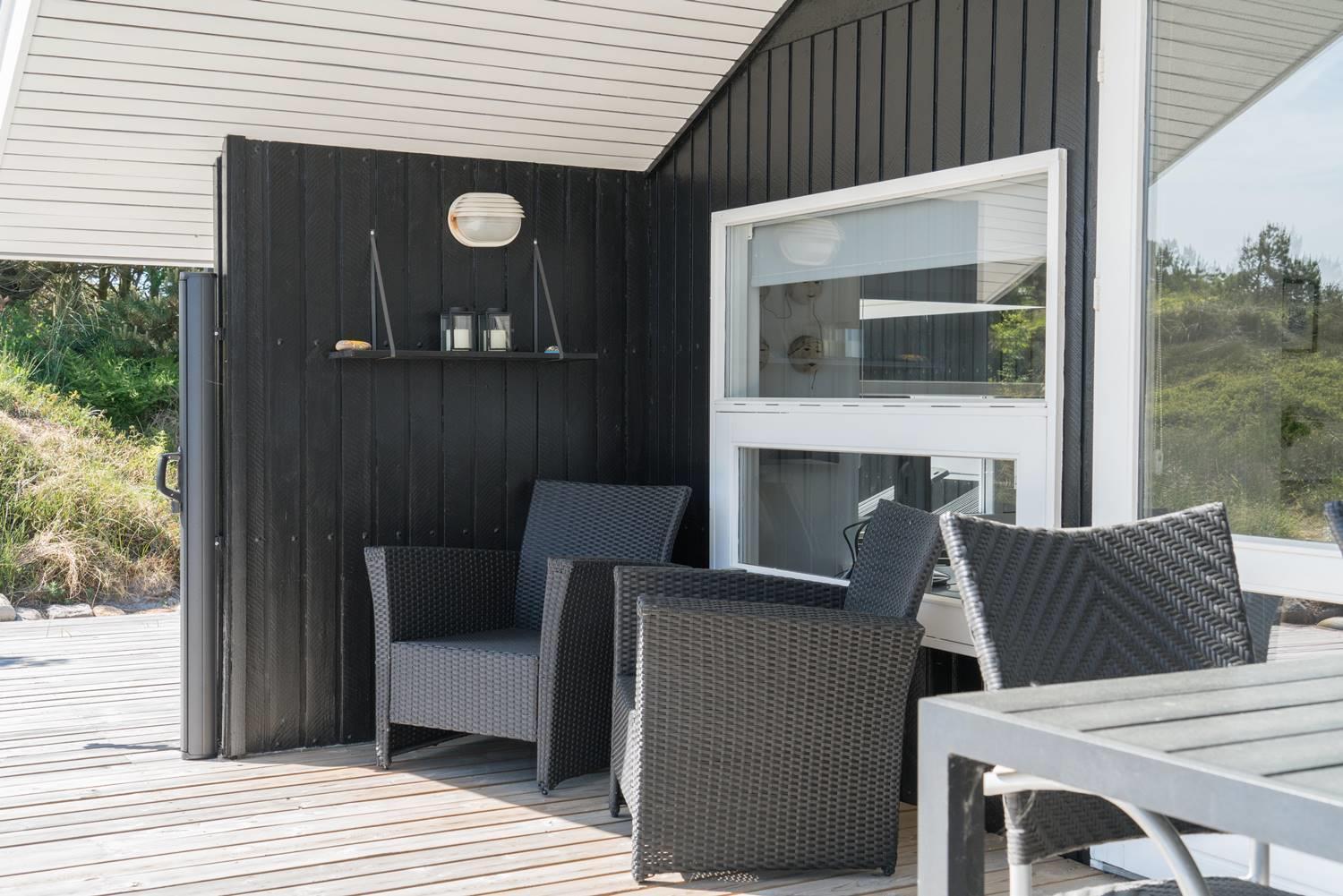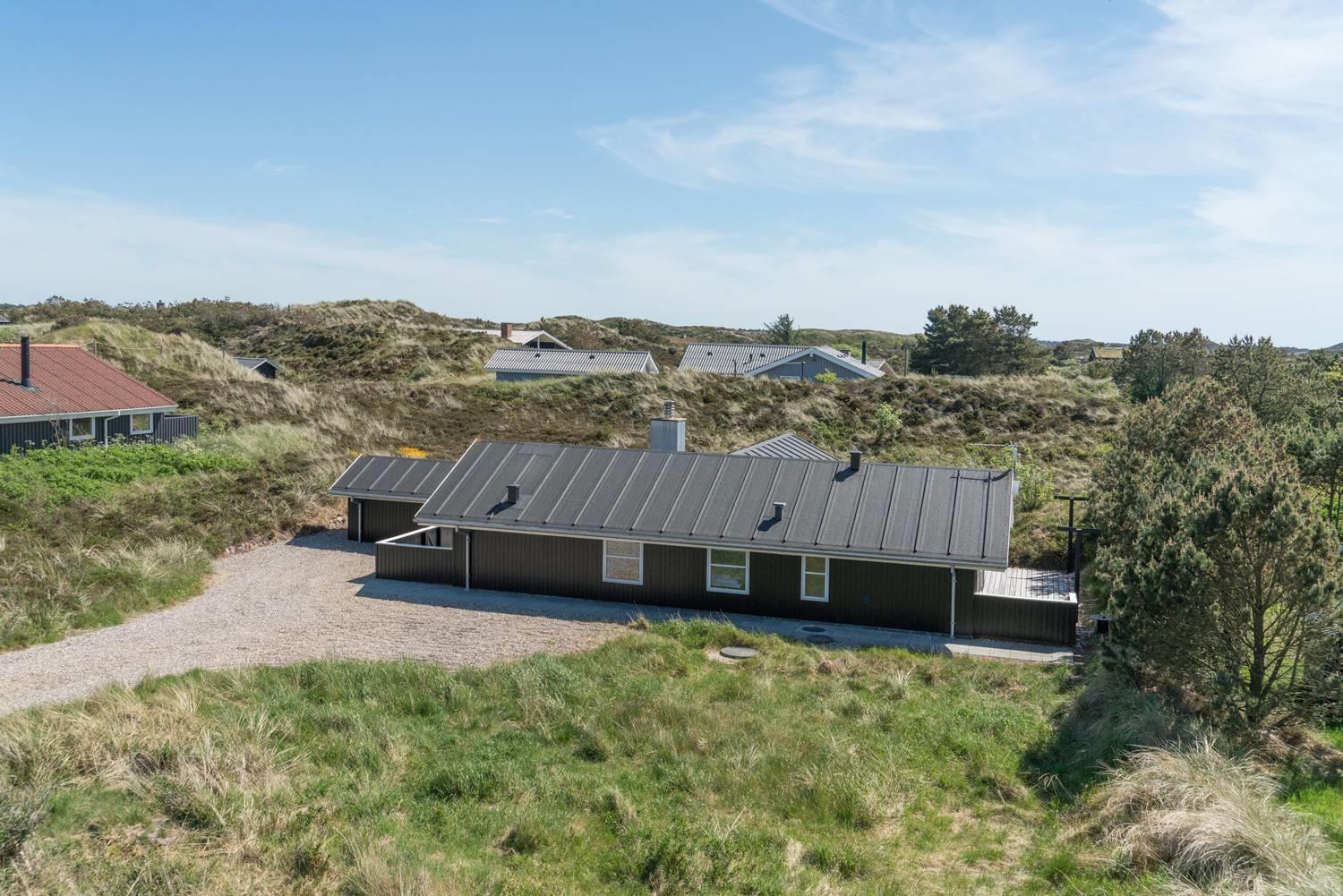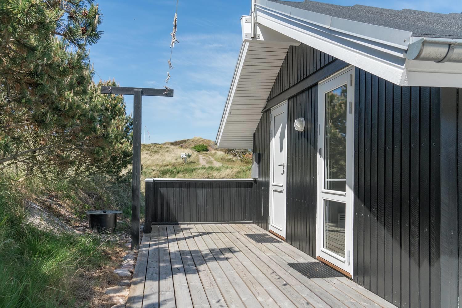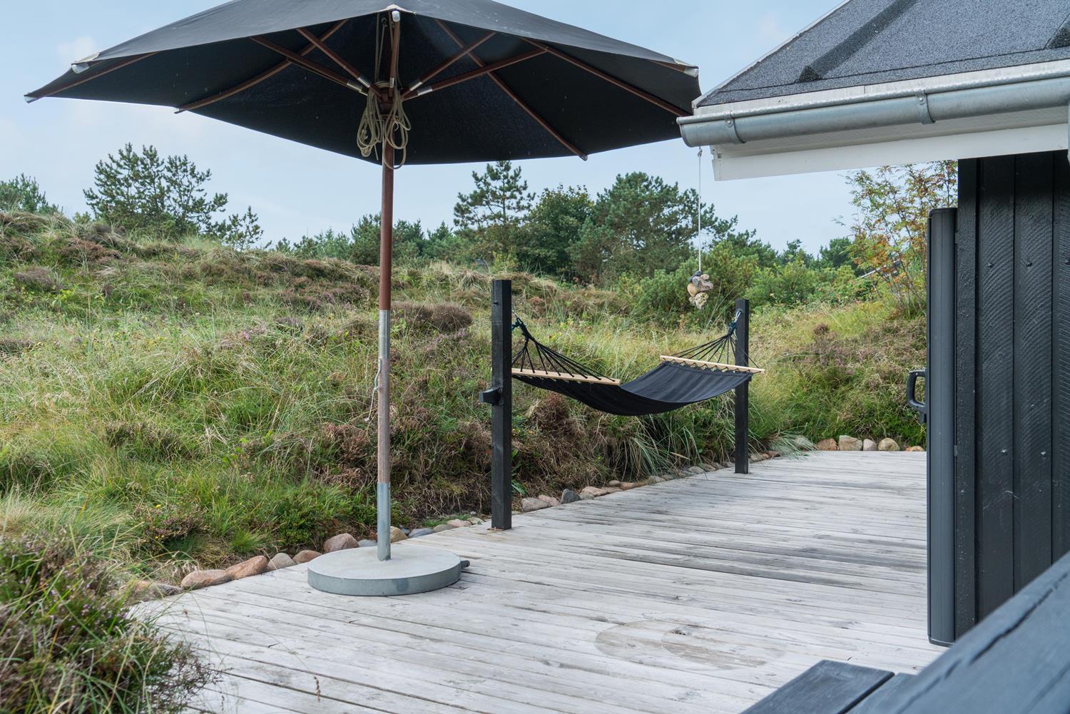 Sommerhuset er renoveret i 2018, og resultatet er en indbydende ferieoase med moderne komfort og en omfavnende atmosfære. Udenfor smyger et stort terrassedæk sig hele vejen rundt langs de solvendte facader, og klitterne skærmer af, så I kan nyde freden og roen i læ for vinden.