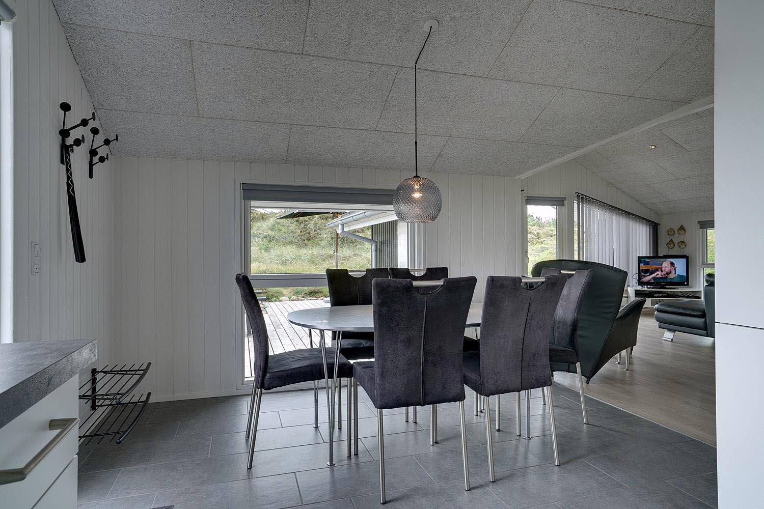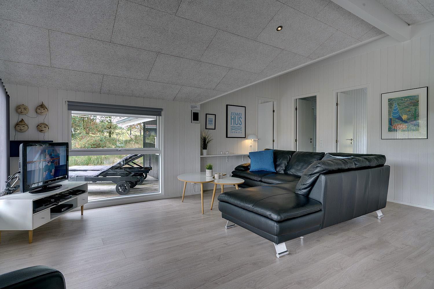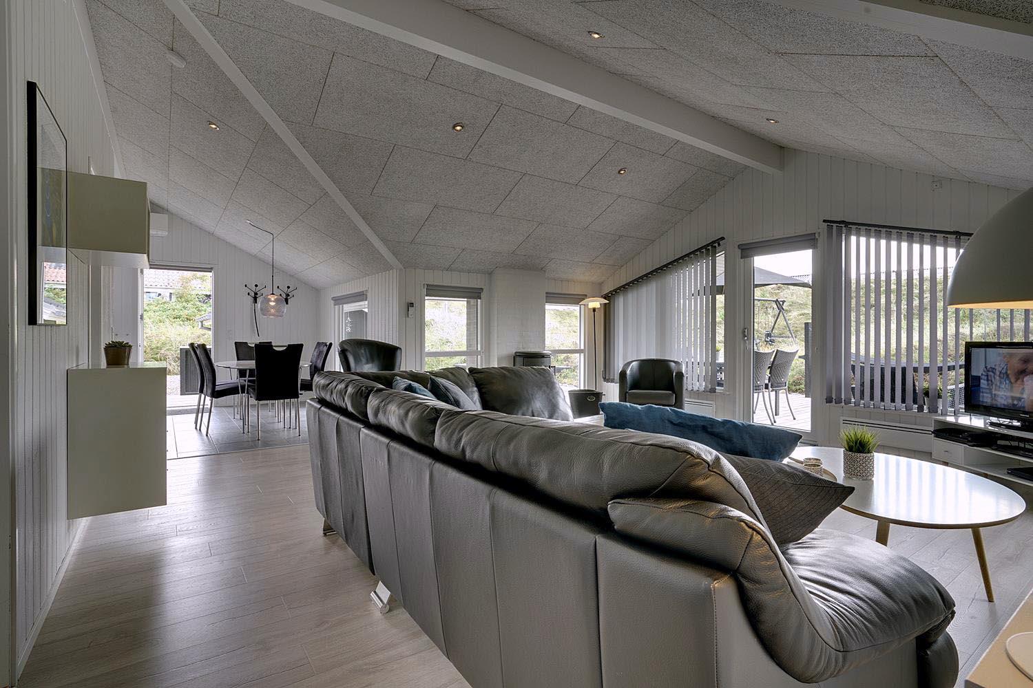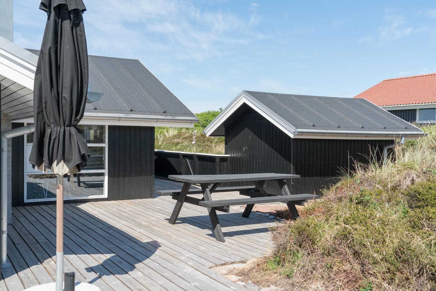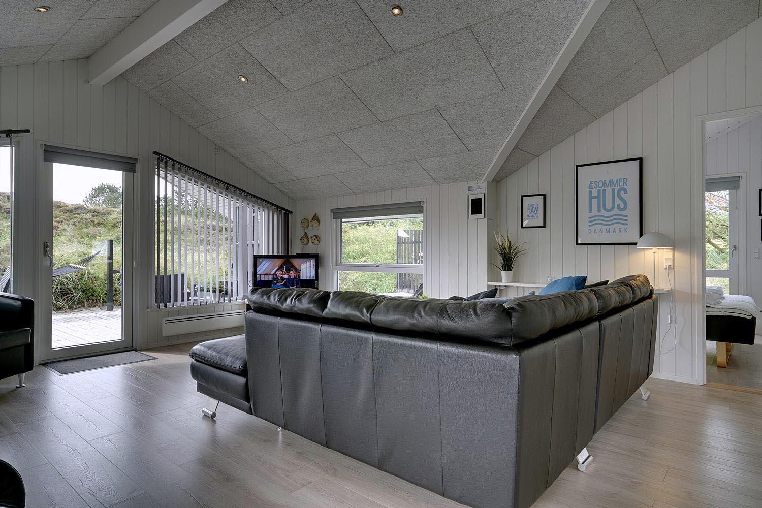 Sommerhuset er renoveret i 2018, og resultatet er en indbydende ferieoase med moderne komfort og en omfavnende atmosfære. Udenfor smyger et stort terrassedæk sig hele vejen rundt langs de solvendte facader, og klitterne skærmer af, så I kan nyde freden og roen i læ for vinden.