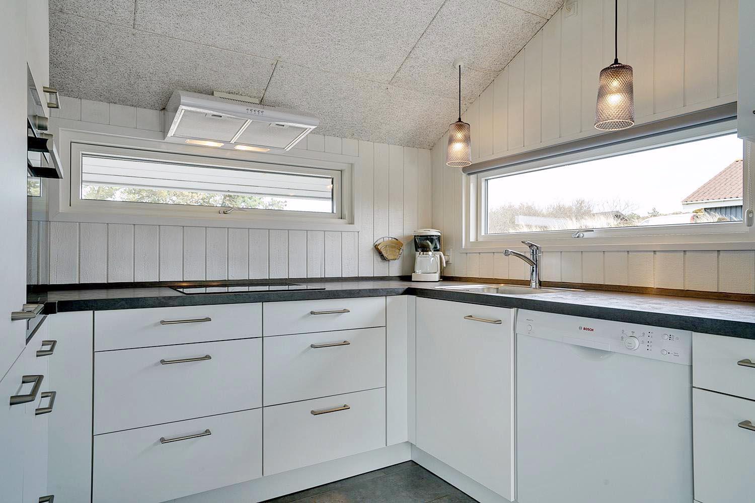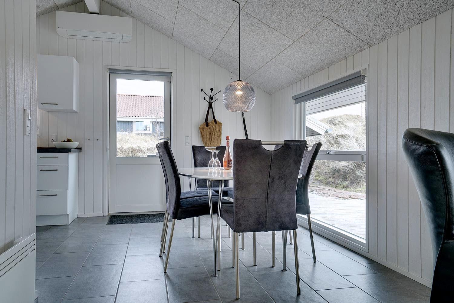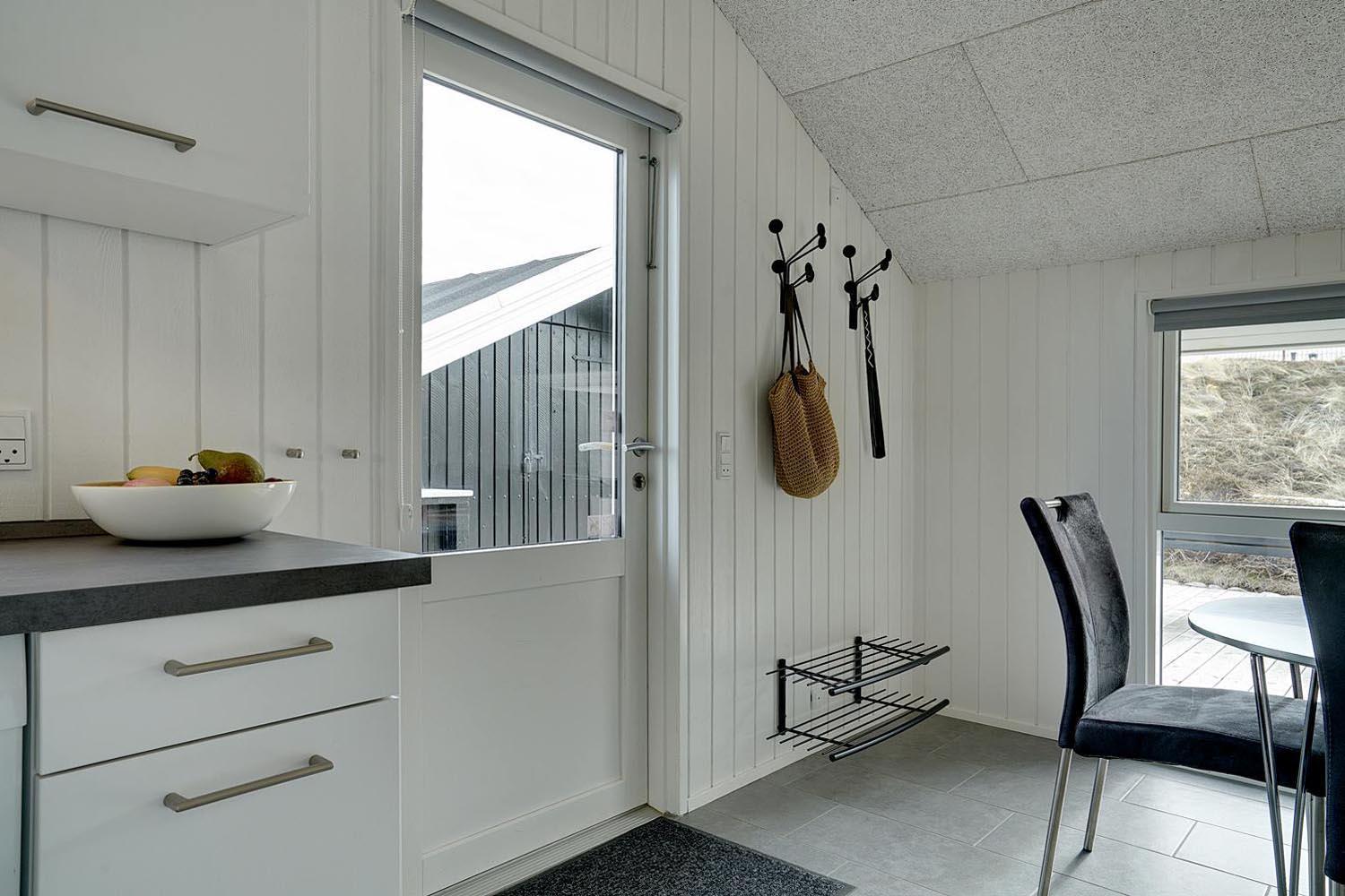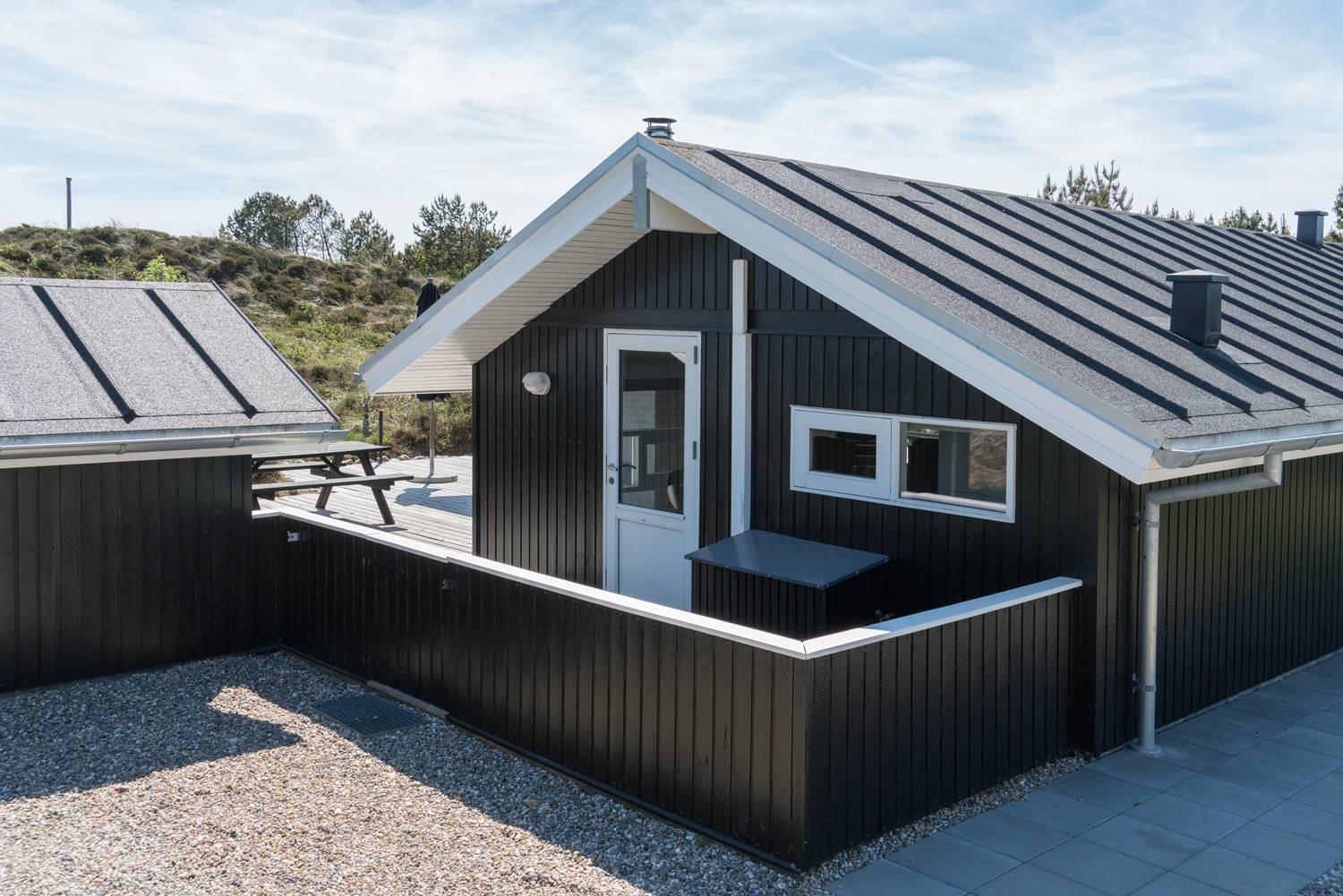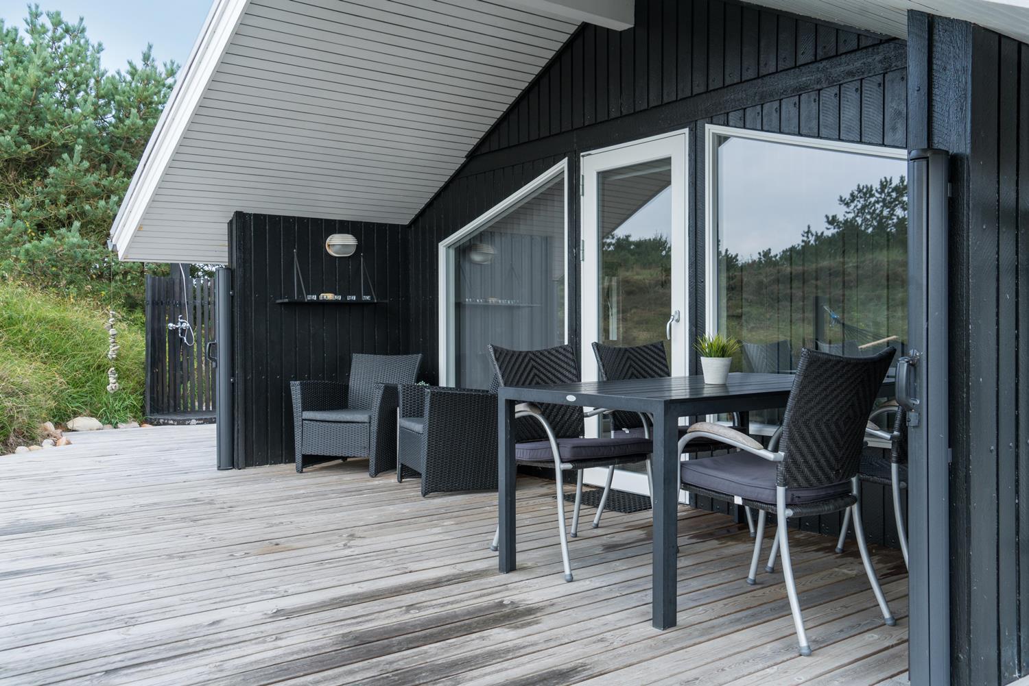 Sommerhuset er renoveret i 2018, og resultatet er en indbydende ferieoase med moderne komfort og en omfavnende atmosfære. Udenfor smyger et stort terrassedæk sig hele vejen rundt langs de solvendte facader, og klitterne skærmer af, så I kan nyde freden og roen i læ for vinden.