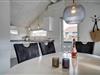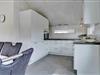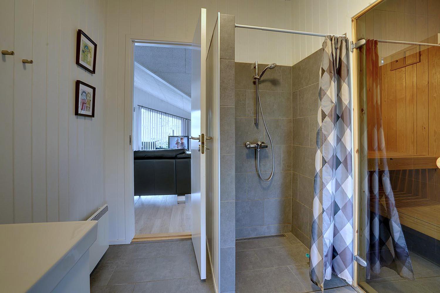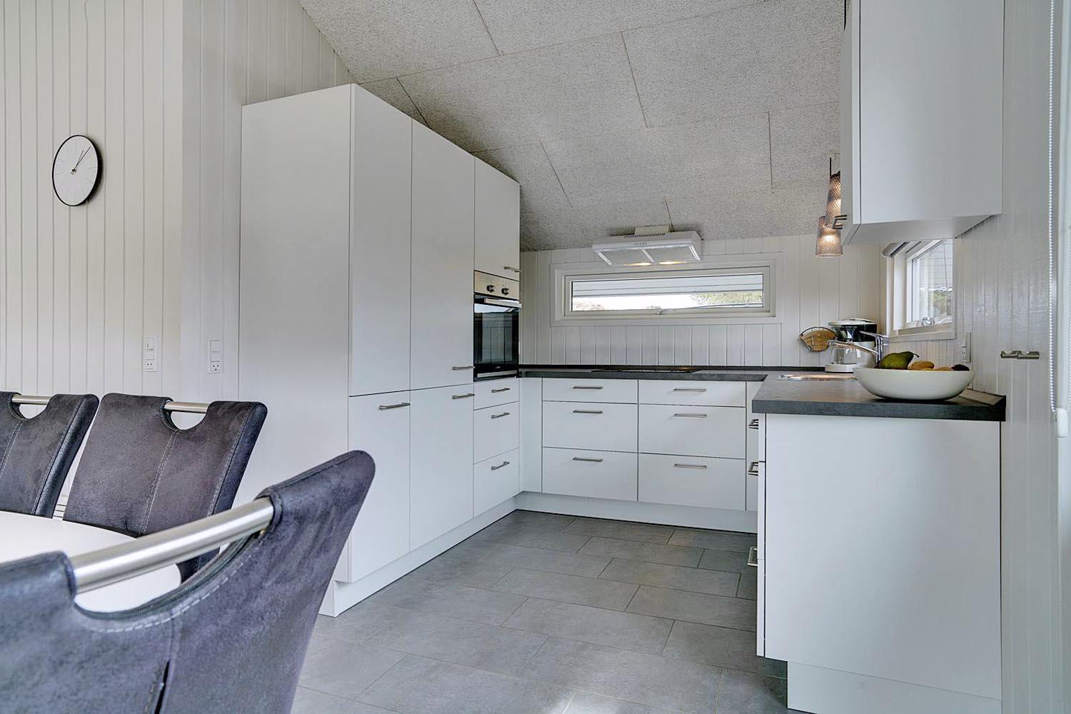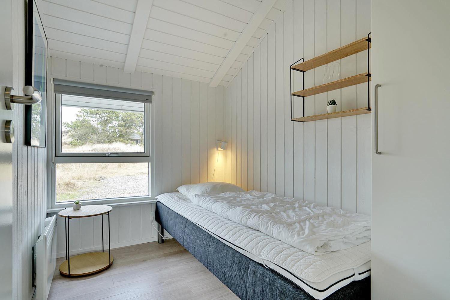 Indenfor er de lækre indslag mange og omfatter blandt andet gulvvarme, Chromecast og lofter til kip, mens Troldtektplader sørger for en behagelig akustik. Huset byder på et stort opholdsrum med et stilsikkert hvidt køkken i den ene ende og en skøn lounge-afdeling med brændeovn og dejligt stort vinduesparti med udsigt til klitterne i den anden ende. De private gemakker består af et lækkert badeværelse med sauna og brus samt tre soveværelser med faste skabe og i alt fem sovepladser. Det ene værelse har ligesom stuen direkte udgang til terrassen.