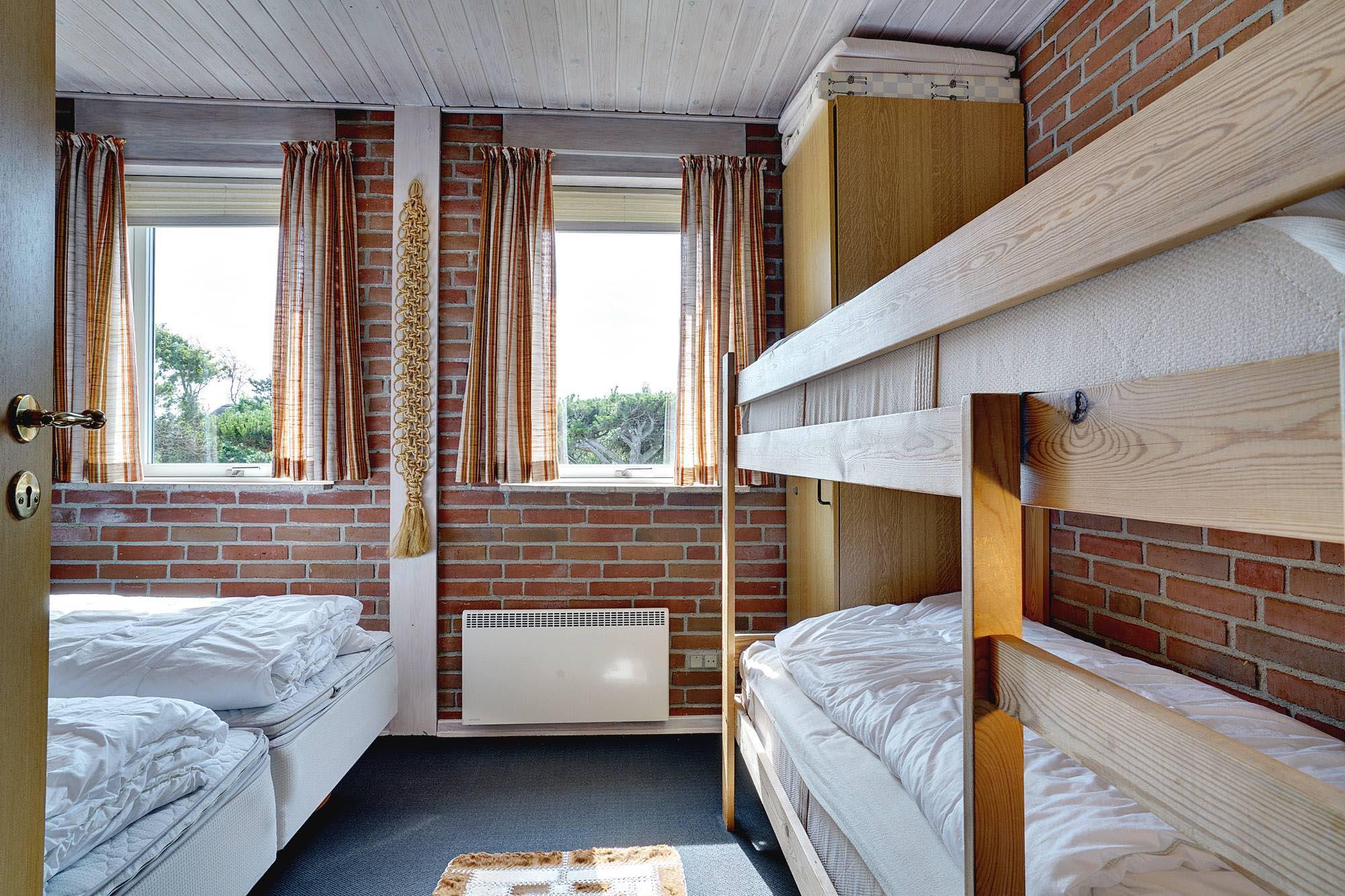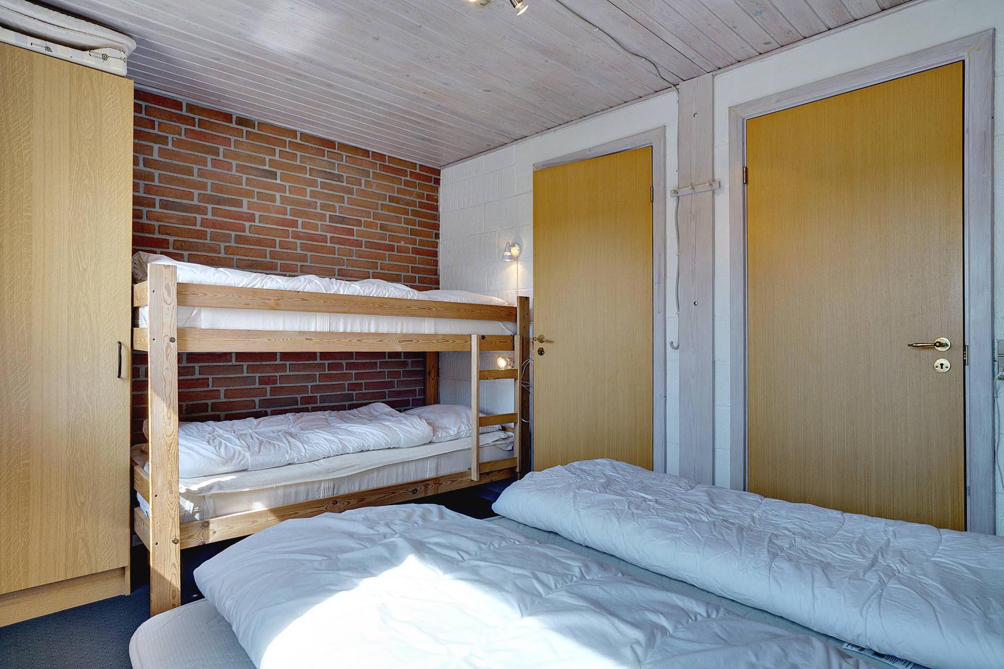 Sengestørrelse: 1 dobbeltseng med 2 madrasser 90 x 200 cm + 1 enkeltseng 90 x 200 cm + 1 enkeltseng 90 x 190 cm + 1 køjeseng 90 x 190 cm