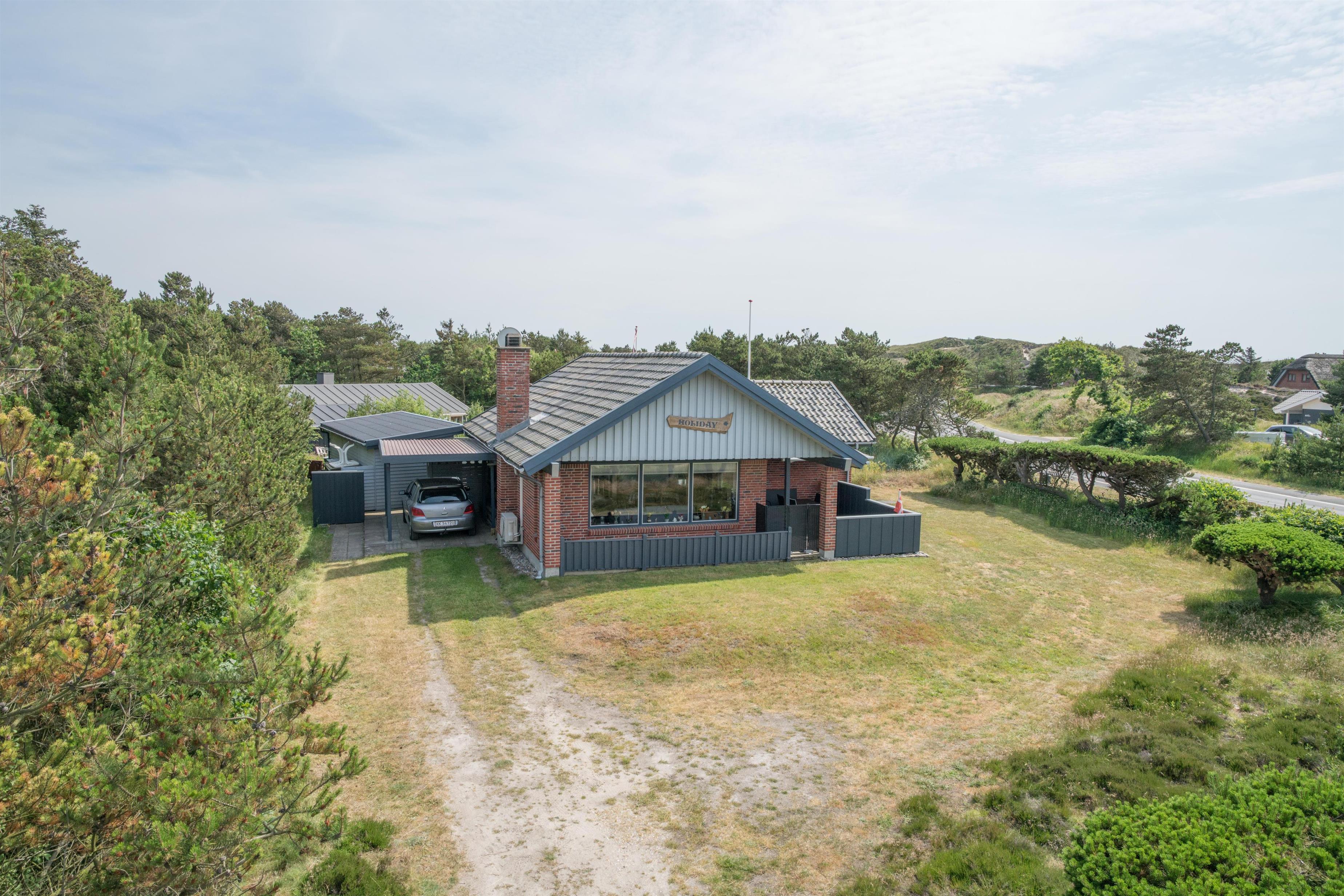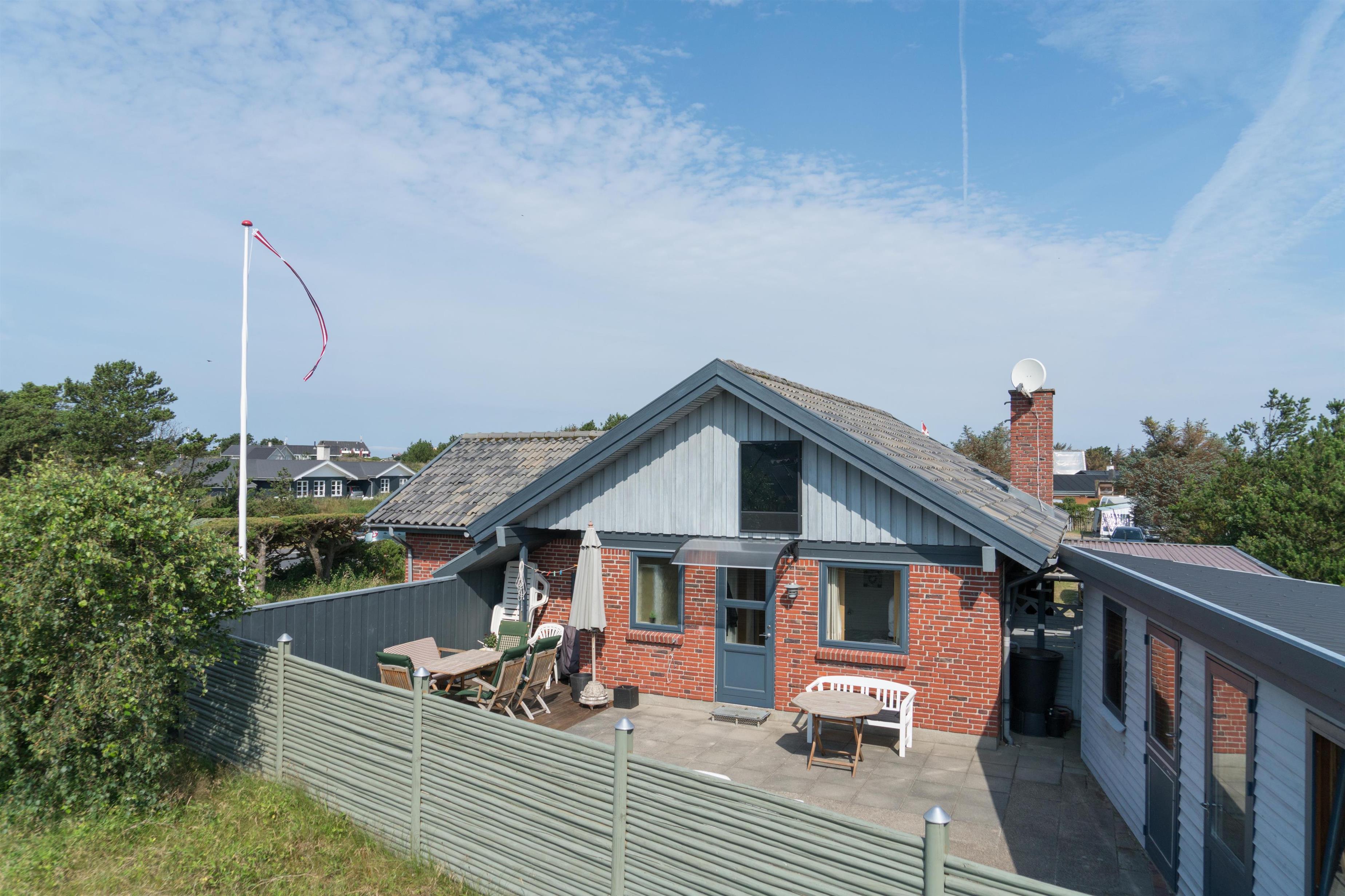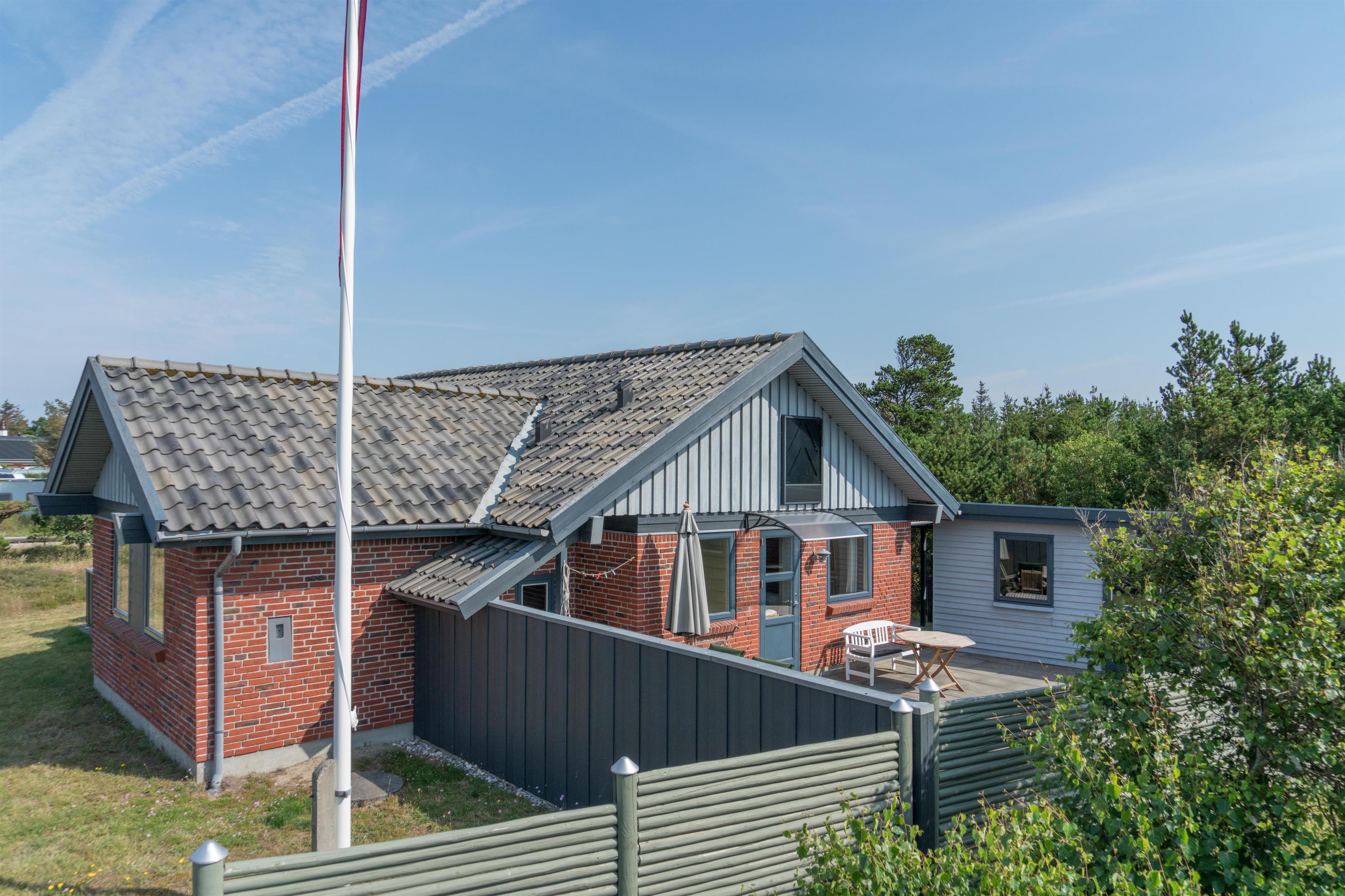 Hyggeligt feriehus med carport og lukket terrasse i Henne Strand, tæt på stranden og indkøb.
