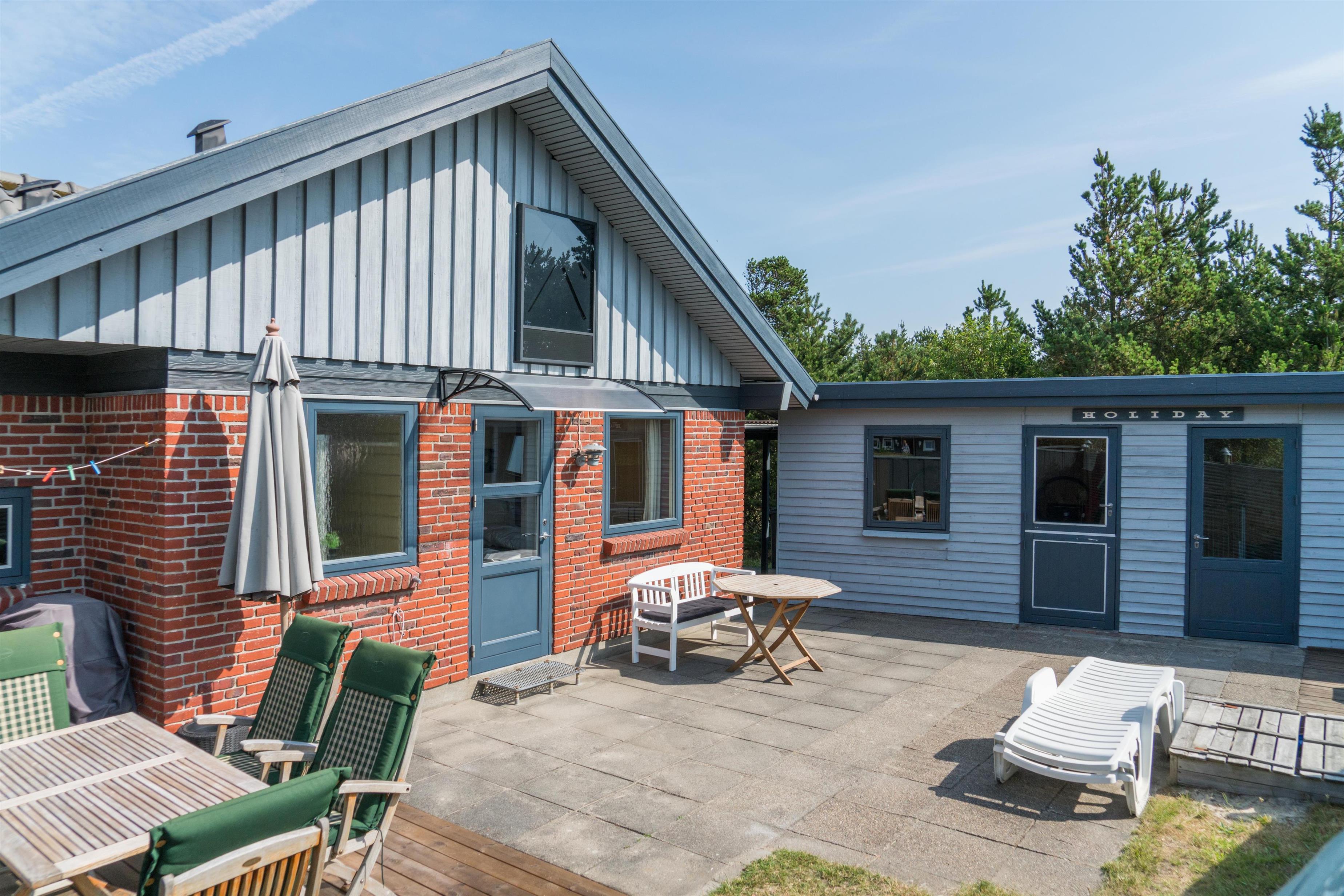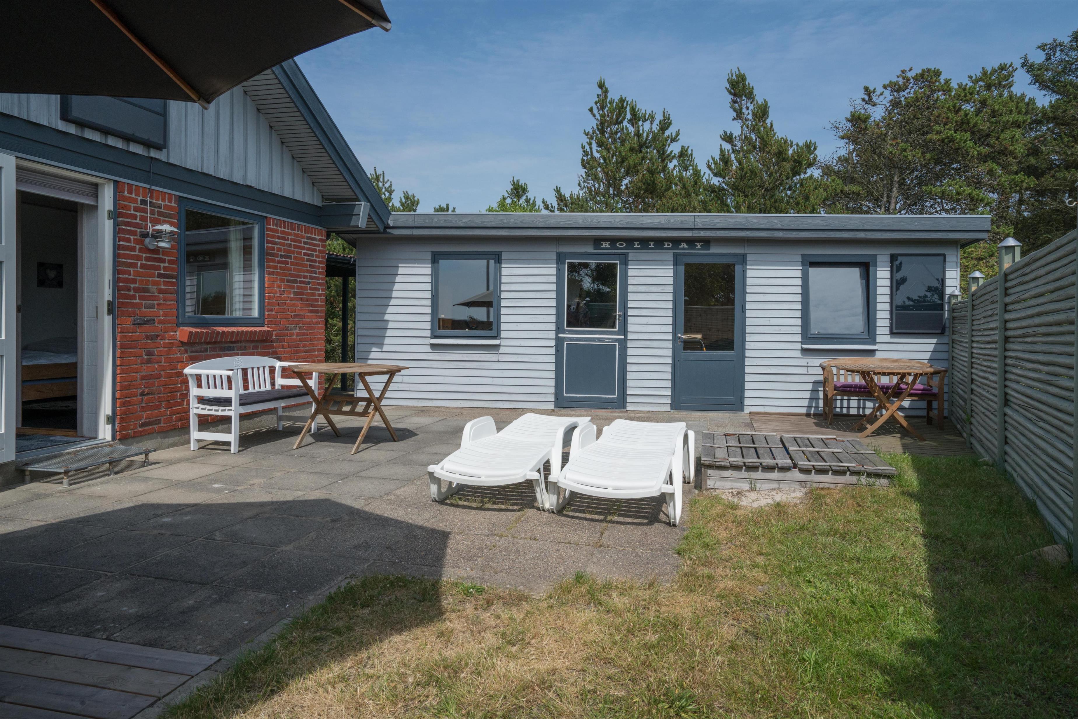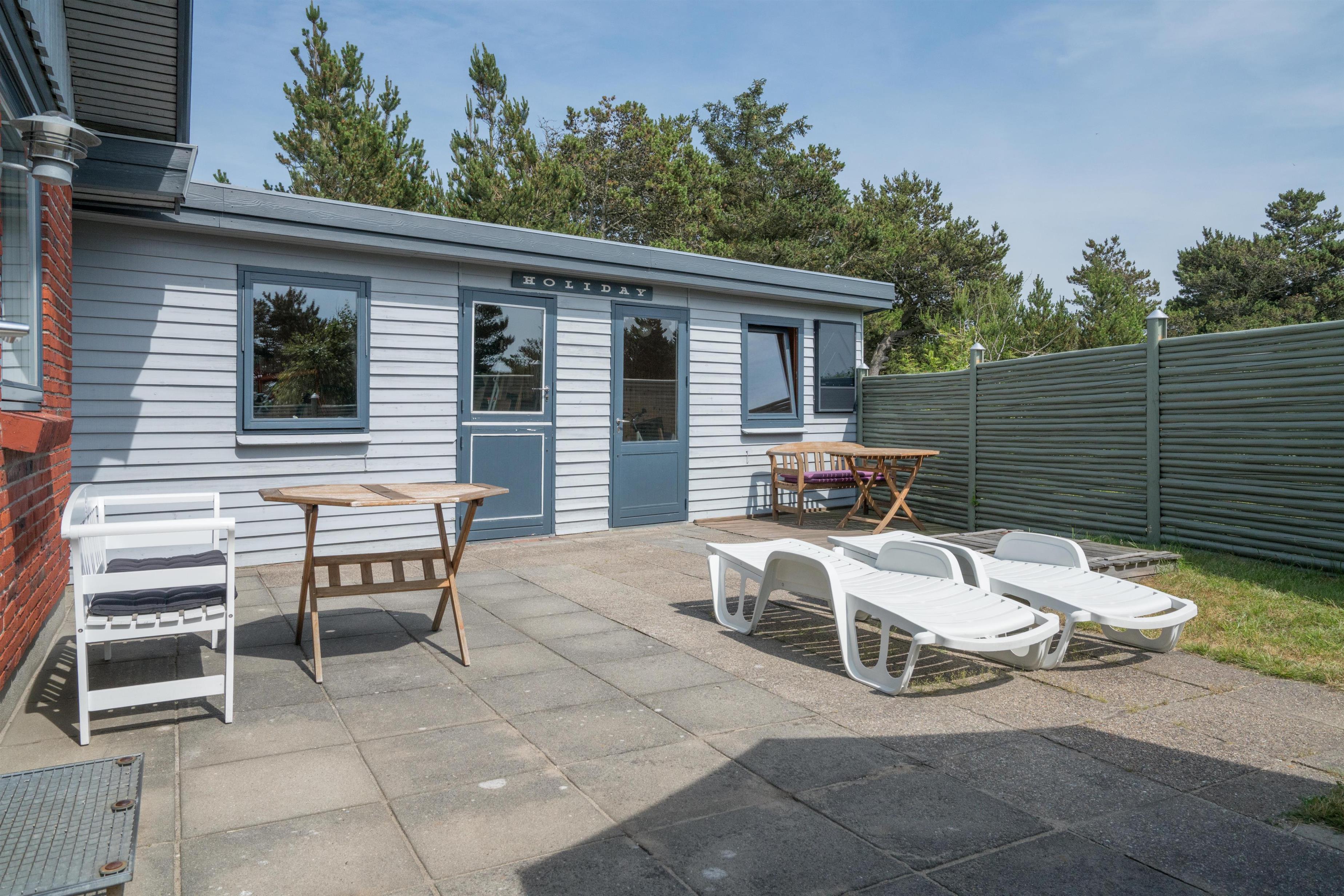 Hyggeligt feriehus med carport og lukket terrasse i Henne Strand, tæt på stranden og indkøb.
