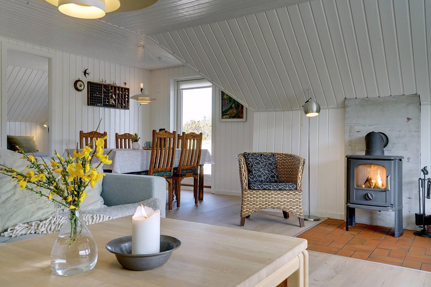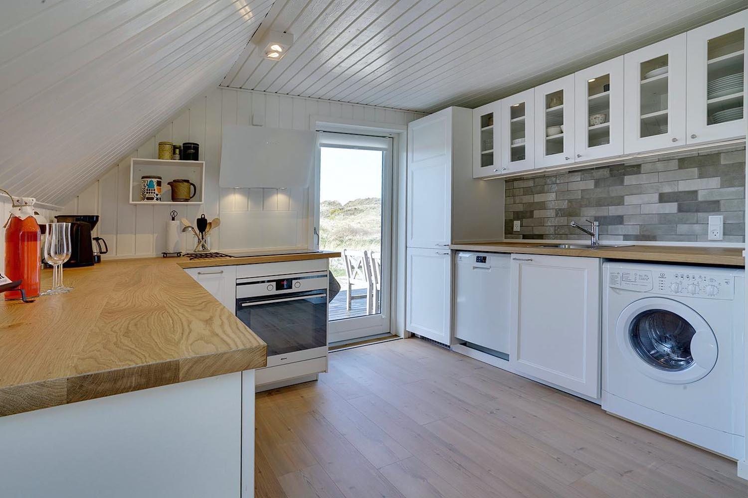 Hyggeligt og lyst feriehus på klitgrund nær Henne Strand med nyrenoveret køkken og badeværelse samt dejlig terrasse.