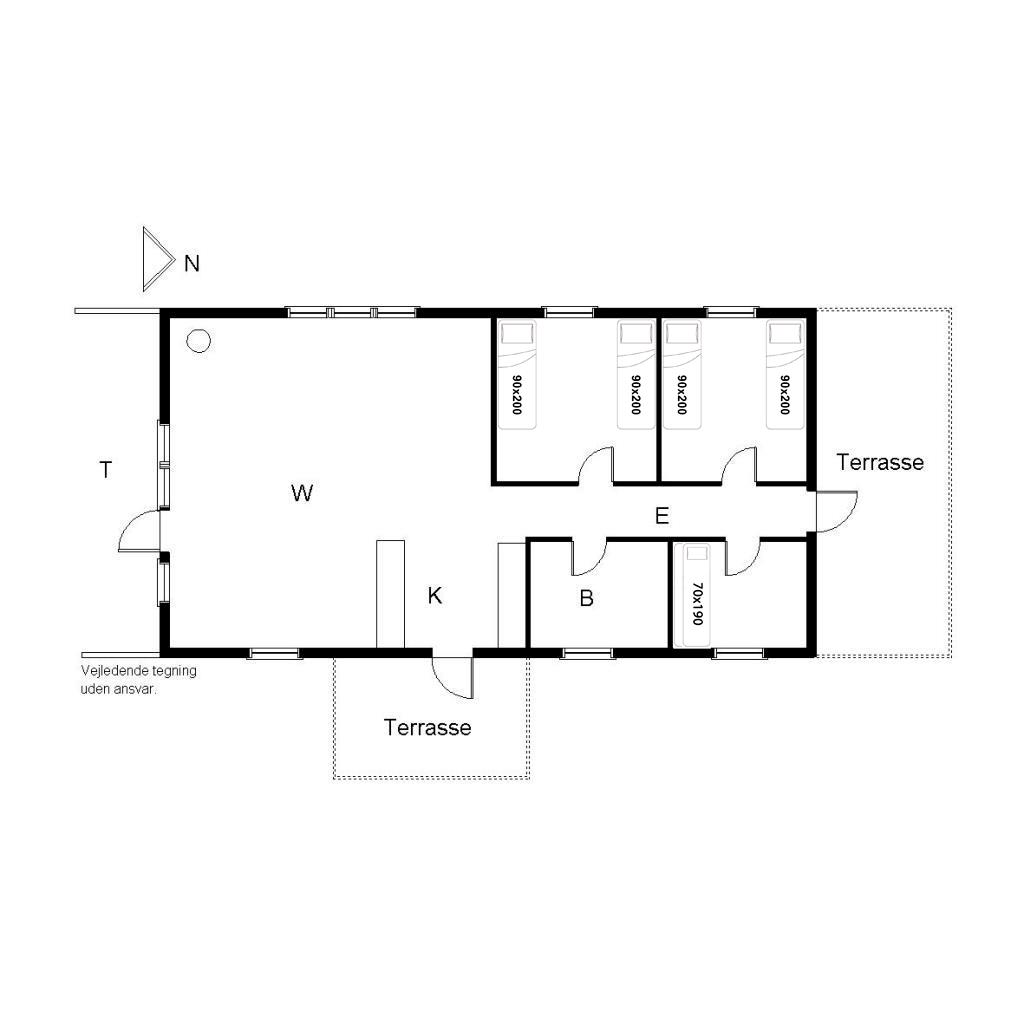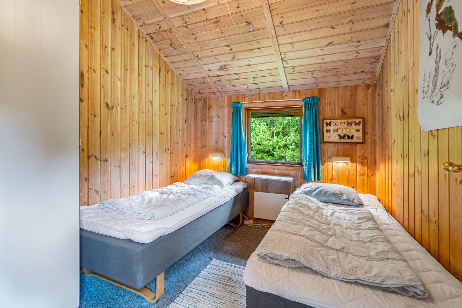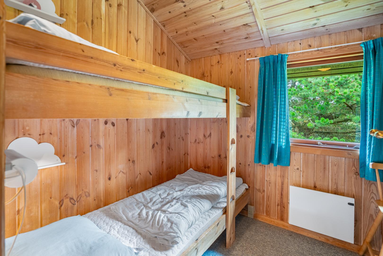 Sengestørrelser: 4 enkeltsenge 90 x 200 cm + 1 køjeseng 70 x 190 cm.