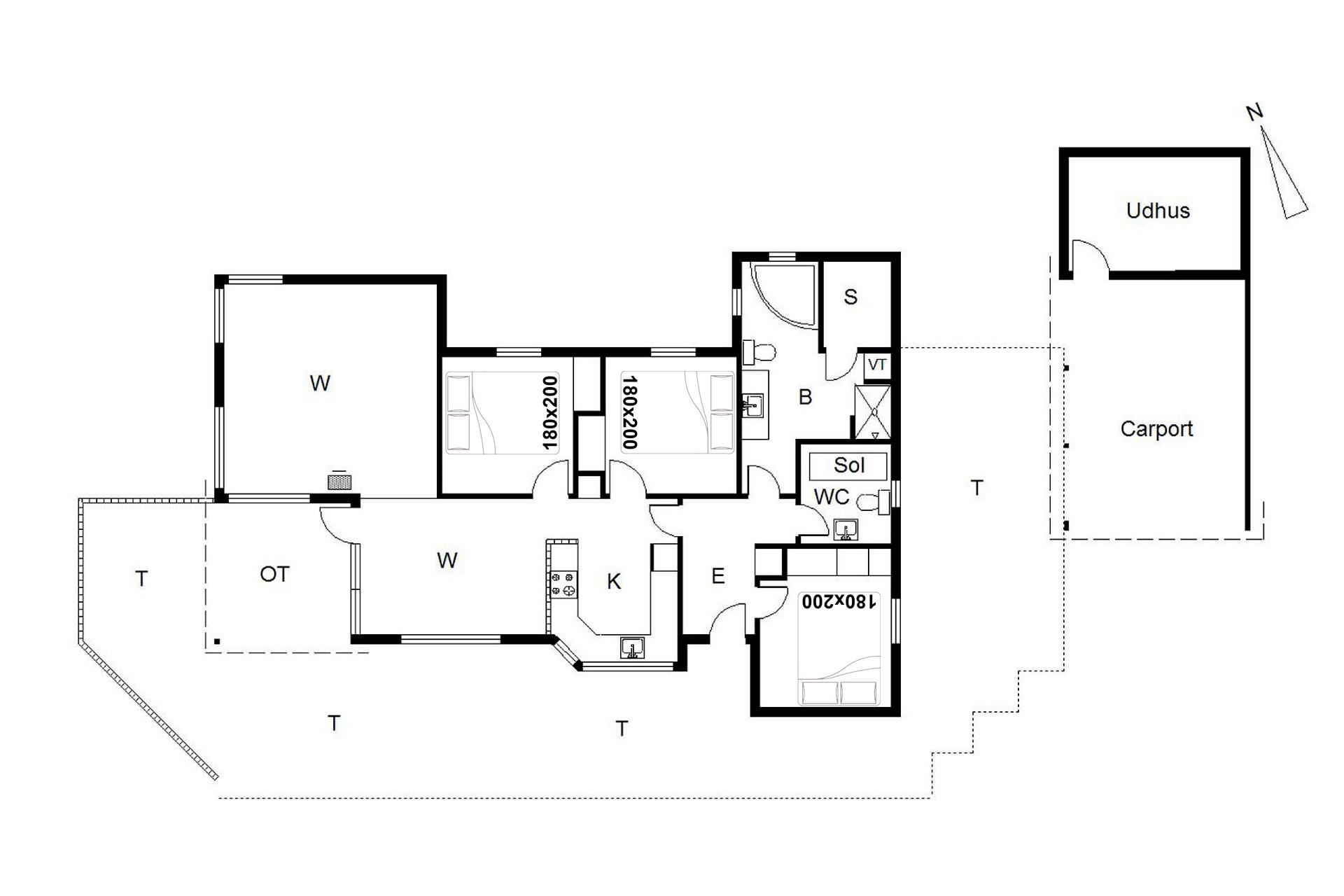 Sengestørrelser: 3 dobbeltsenge 180 x 200 cm.