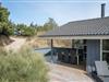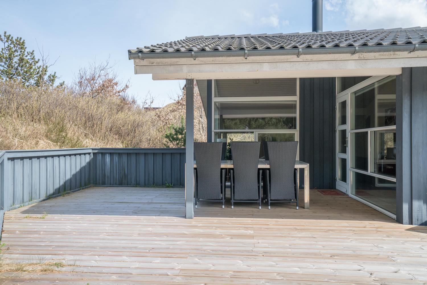 Forkæl jer selv med en weekend eller ferie i dette skønne og meget velbeliggende feriehus i Hennes kuperede klitlandskab. Indenfor er der både spabad, sauna og brændeovn, og udenfor er der gynge, sandkasse og en stor ugeneret terrasse mod sydvest. Huset ligger få hundrede meter fra det brusende Vesterhav og samtidig i gåafstand til butikkerne på Strandvejen.