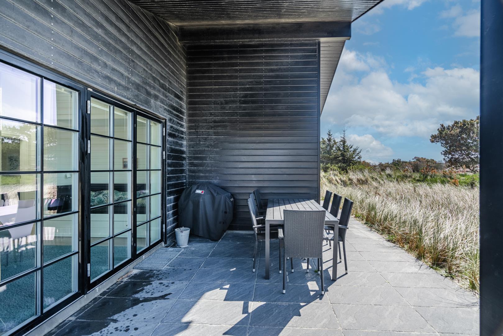 Når vejret er godt, vil I sikkert foretrække at tilbringe de fleste af døgnets timer udenfor. En af de helt store kvaliteter er nemlig husets dejlige terrassemiljø, som der er direkte udgang til fra opholdsrummene og de fleste værelser.