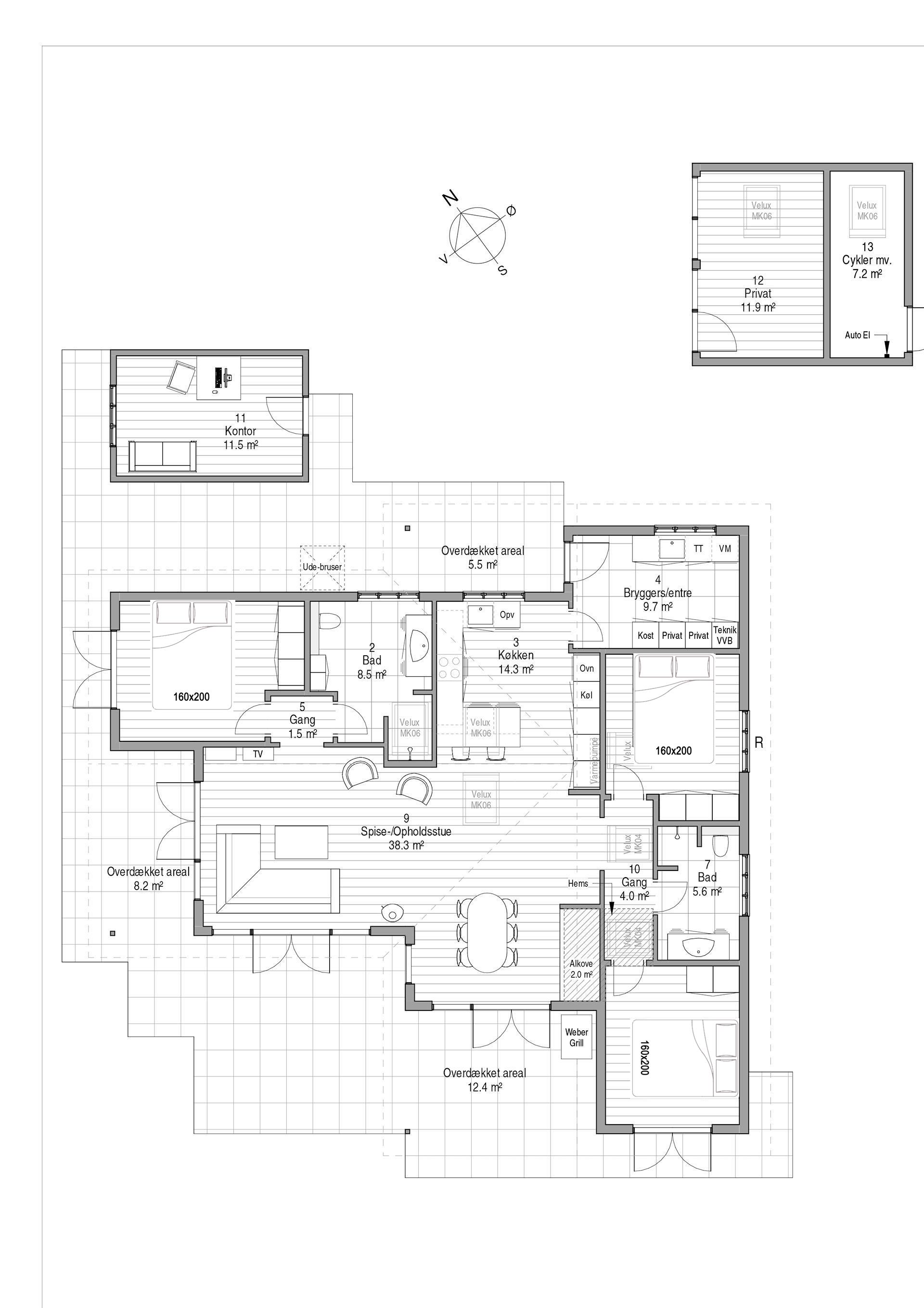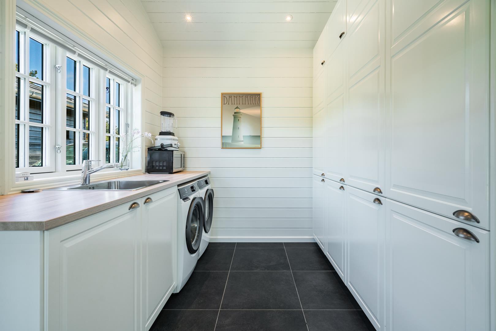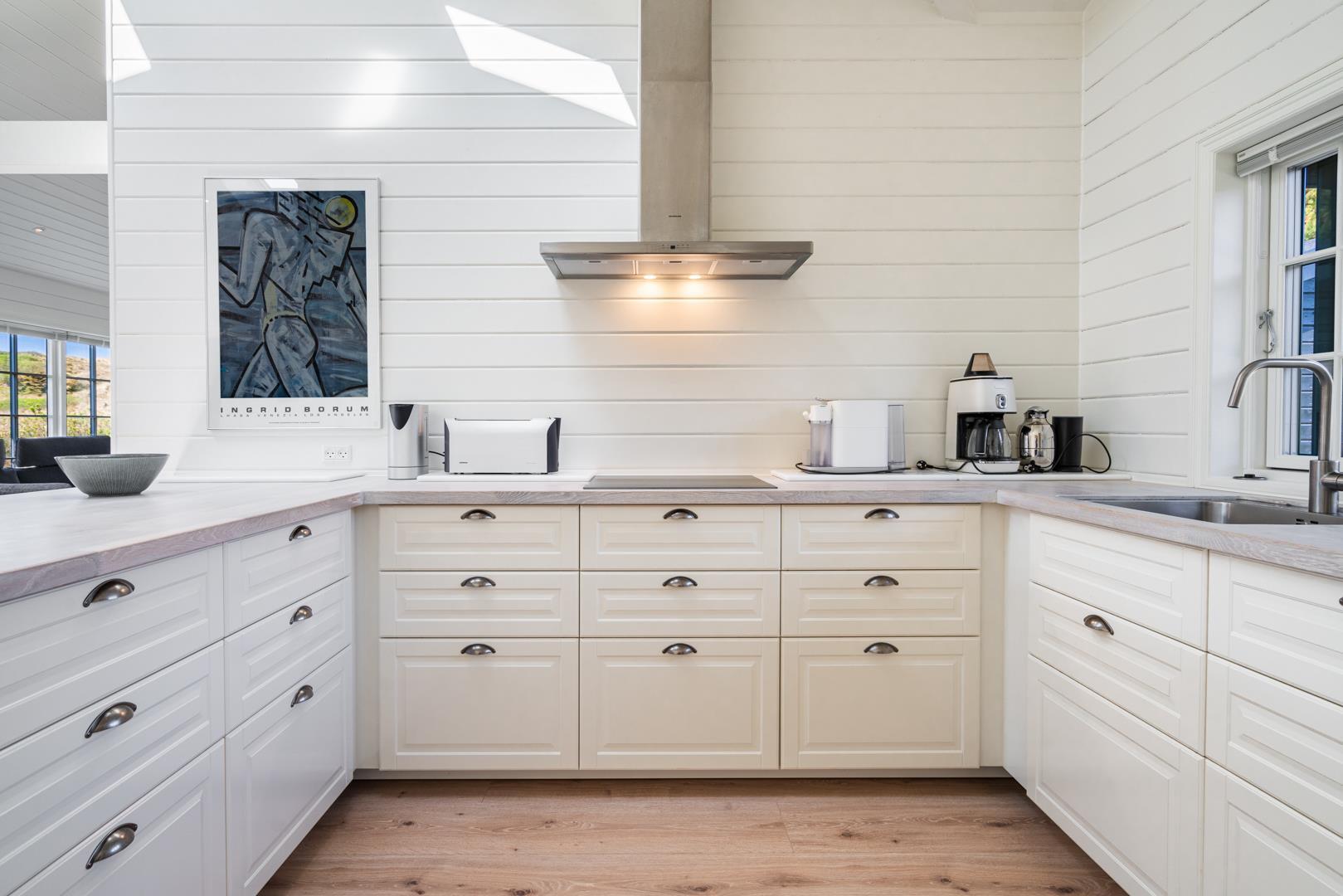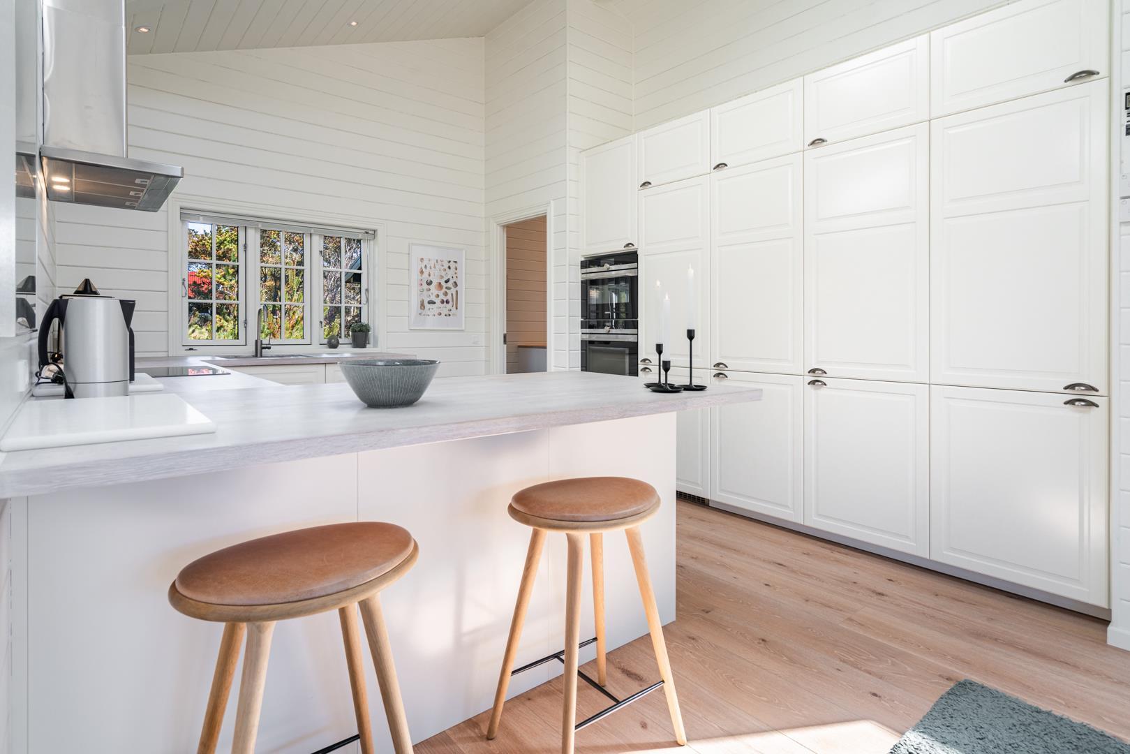 Husets hjerte er det store opholdsrum, som består af stue og køkken i åben forbindelse. Her er flere hyggekroge og god plads til at udfolde sig gastronomisk i fællesskab.
