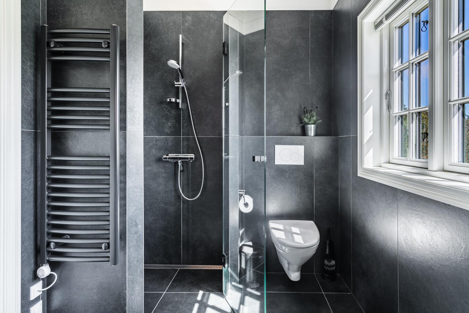 Husets to flotte badeværelser er begge indrettet med bruseniche.