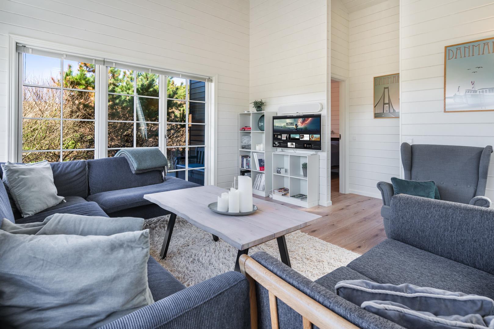 Få hundrede meter fra stranden og Henne Mølle Å inviterer et nyere sommerhus på en fantastisk ferie for dig og din familie. Huset byder på en moderne, åben indretning med lyse rum og højt til loftet, og den naturskønne grund er ugeneret og omgivelserne er rolige. Hvis du ønsker ro og mulighed for at lade tanker og kreativitet folde sig ud, er dette sted velegnet.